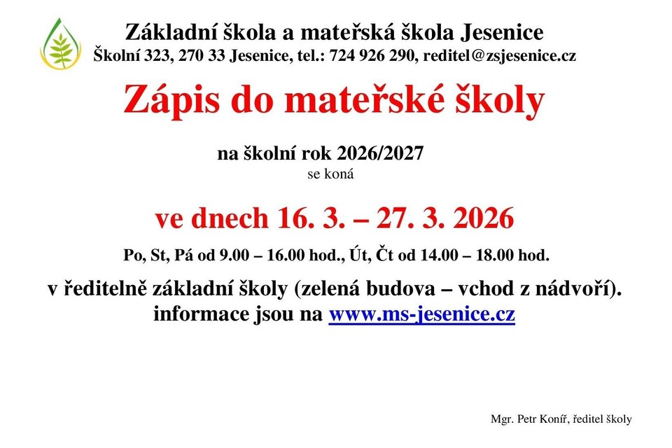 Z důvodu vysoké nemocnosti se Zimní sportiáda přesouvá na úterý 24. února 2026. Prosíme rodiče, aby oblečení v barvách české vlajky dali dětem v tento den. Děkujeme.
