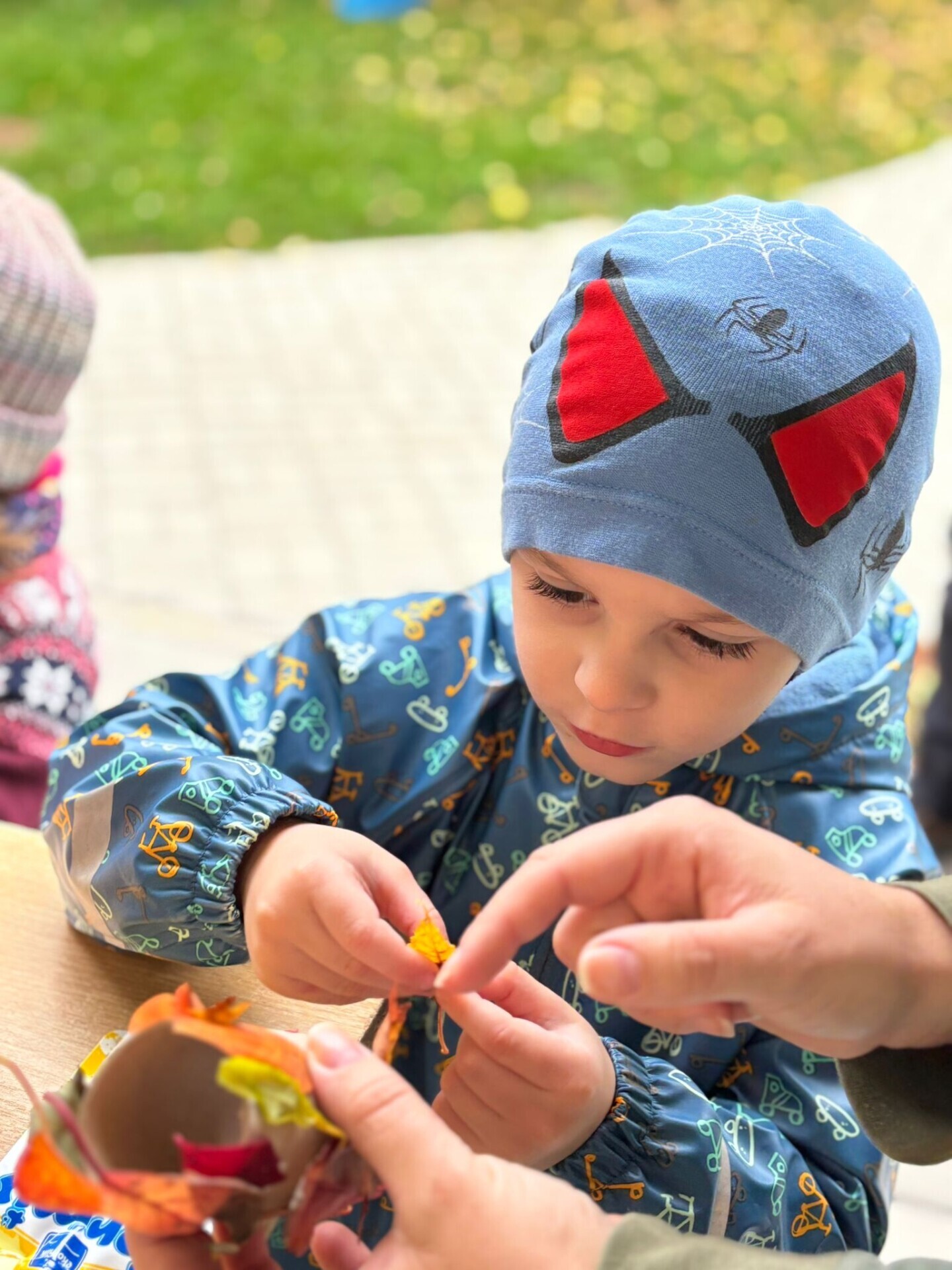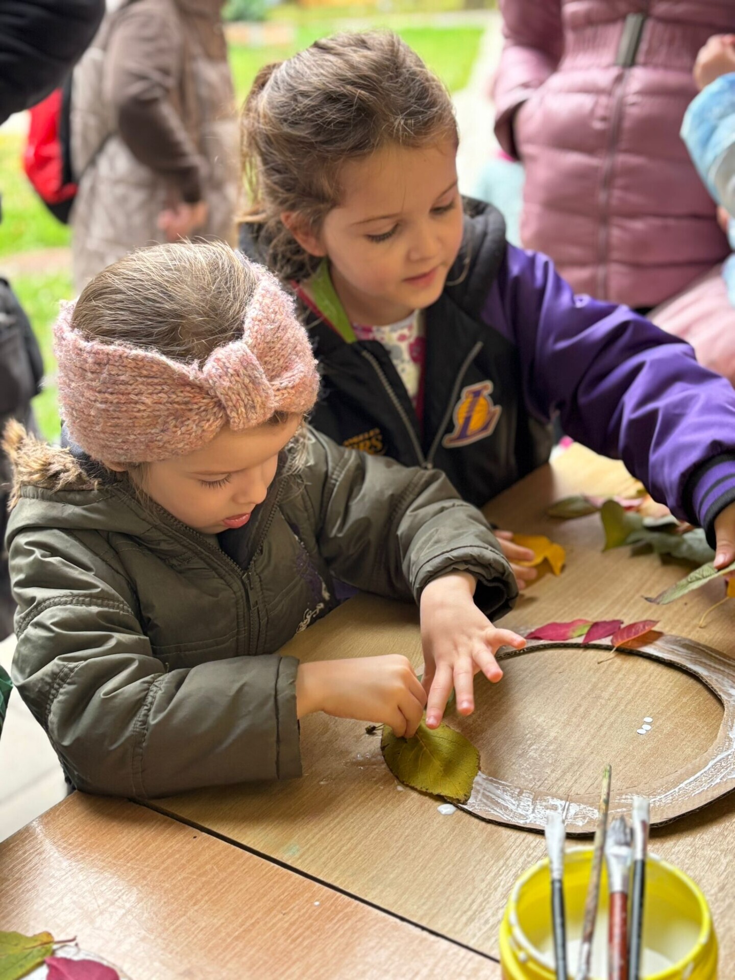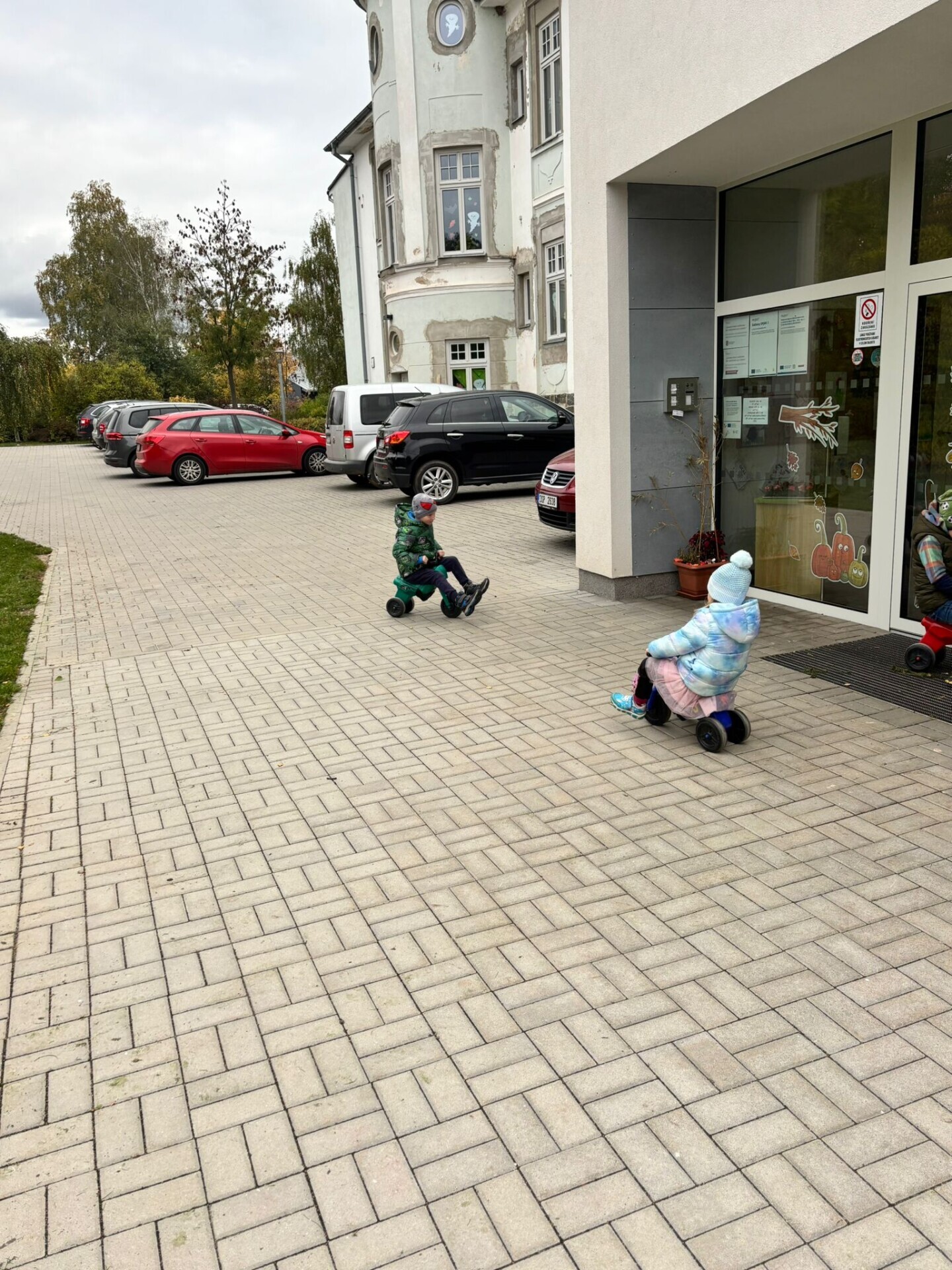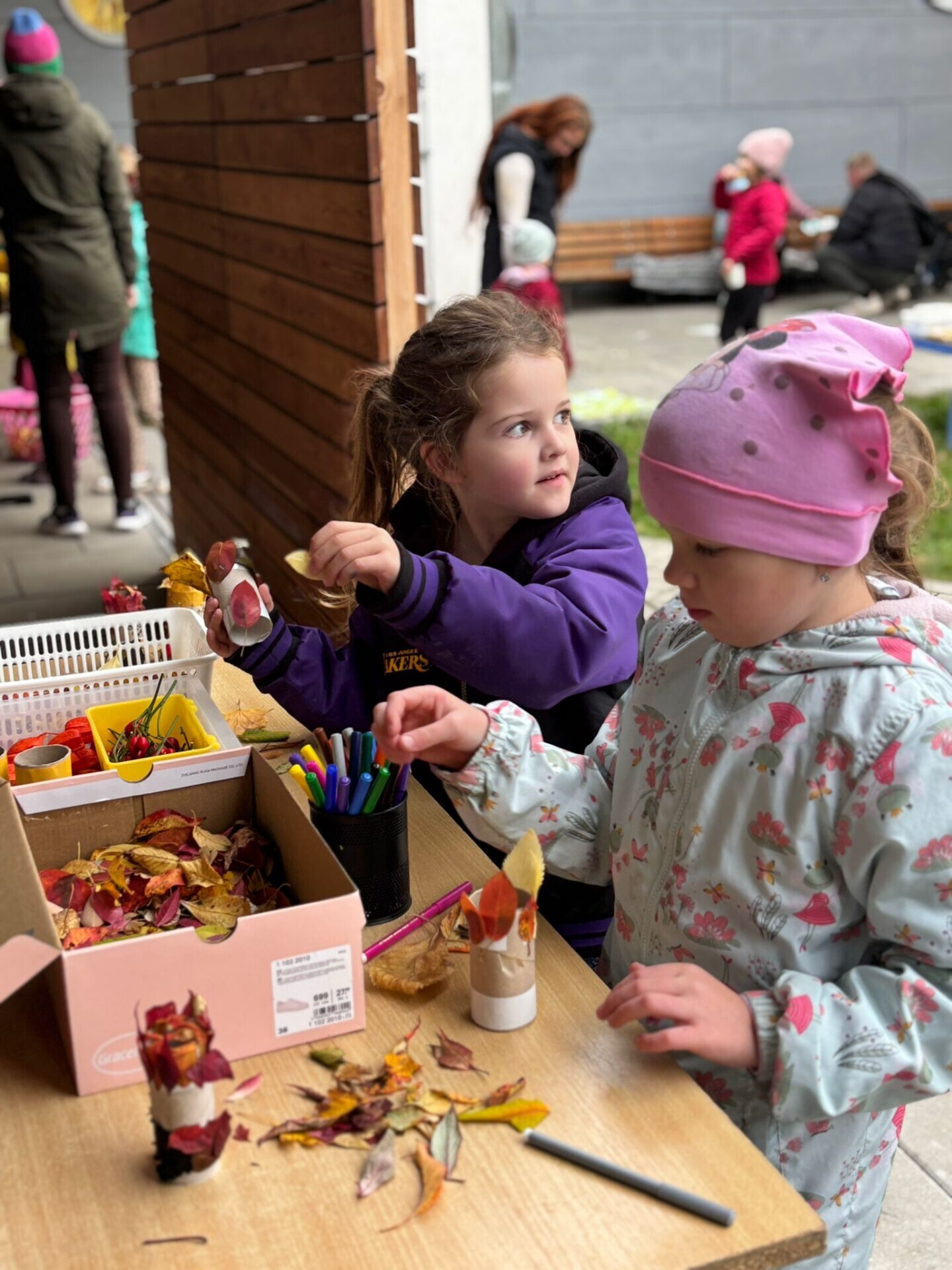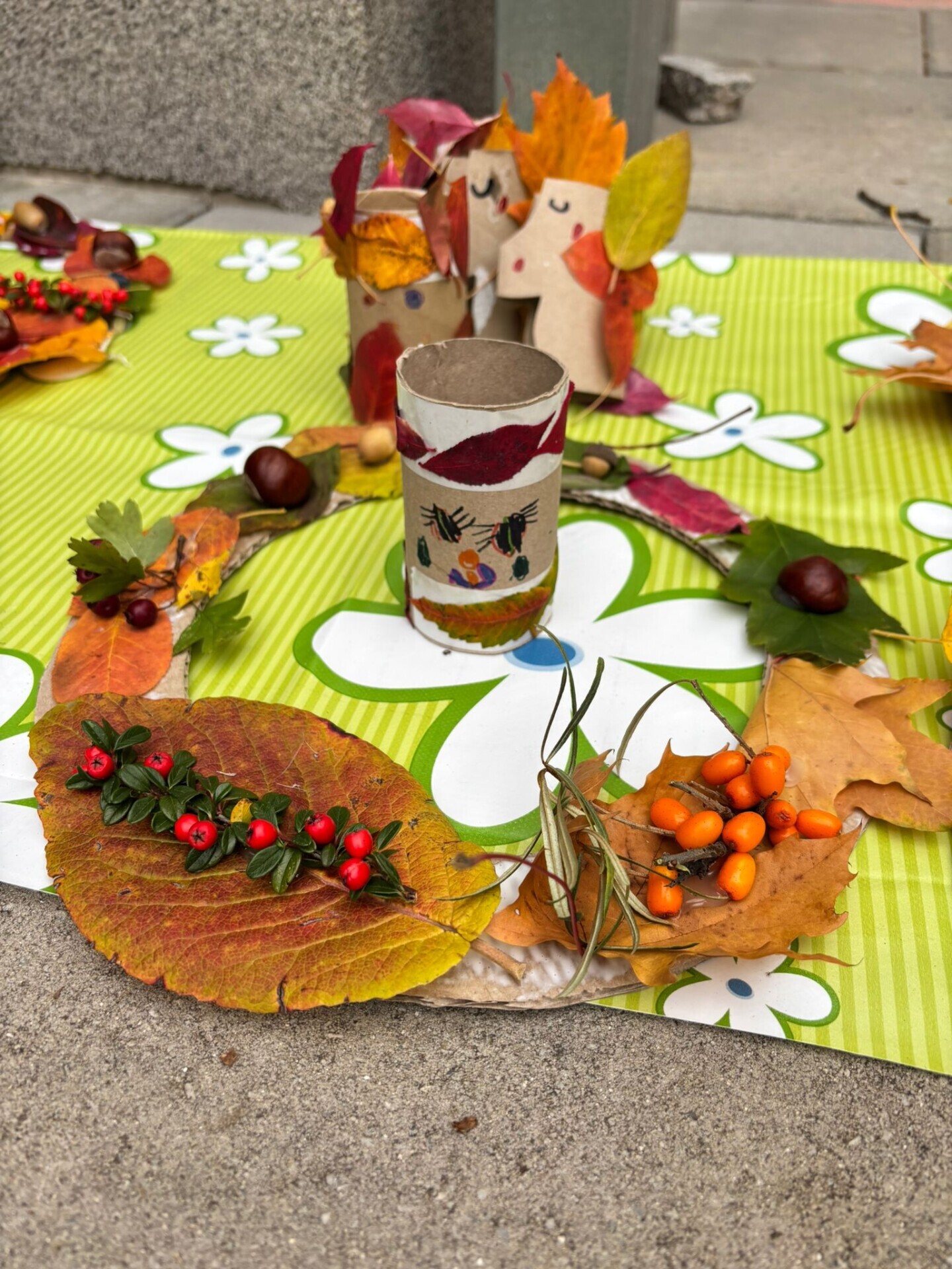Ve čtvrtek 16. 10. 2025 jsme na zahradě naší MŠ uspořádali podzimní dílničky. Dílničky byly celkem tři (za každou třídu jedna), ve kterých jste si s dětmi mohli vytvořit podzimní dekorace z přírodnin. V dílničce připravené třídou Motýlků byla možnost vyrobit si skřítka Podzimníčka z listů a roličky od toaletního papíru. U stanoviště ze třídy Ježečků se vyráběl podzimní věnec z listů a kaštanů a u stolečku Soviček se vyrábělo opět z listí. Děti, ale i rodiče, si u tohoto stolečku mohli vyrobit podzimní svícen ze sklenic a listí. Abychom si čekání na volné stanoviště zkrátili, byla připravena i ukázka moštování jablek, ochutnávka moštu i sladké občerstvení od naší paní školnice Marcely. Na závěr dne byl zapálen ohýnek, na kterém si každý mohl upéct v tomto roce (nejspíše) poslední vuřty či klobásy.