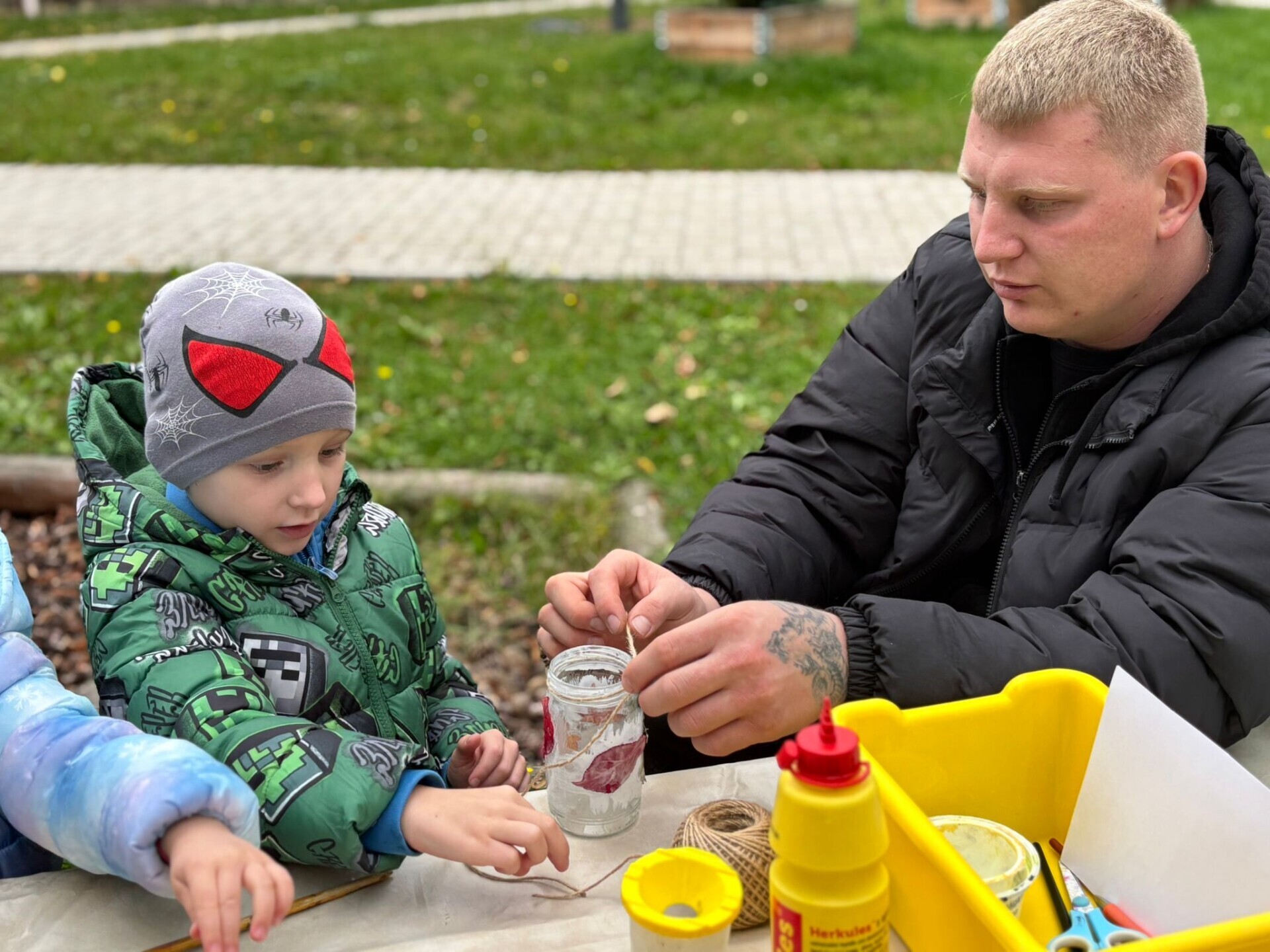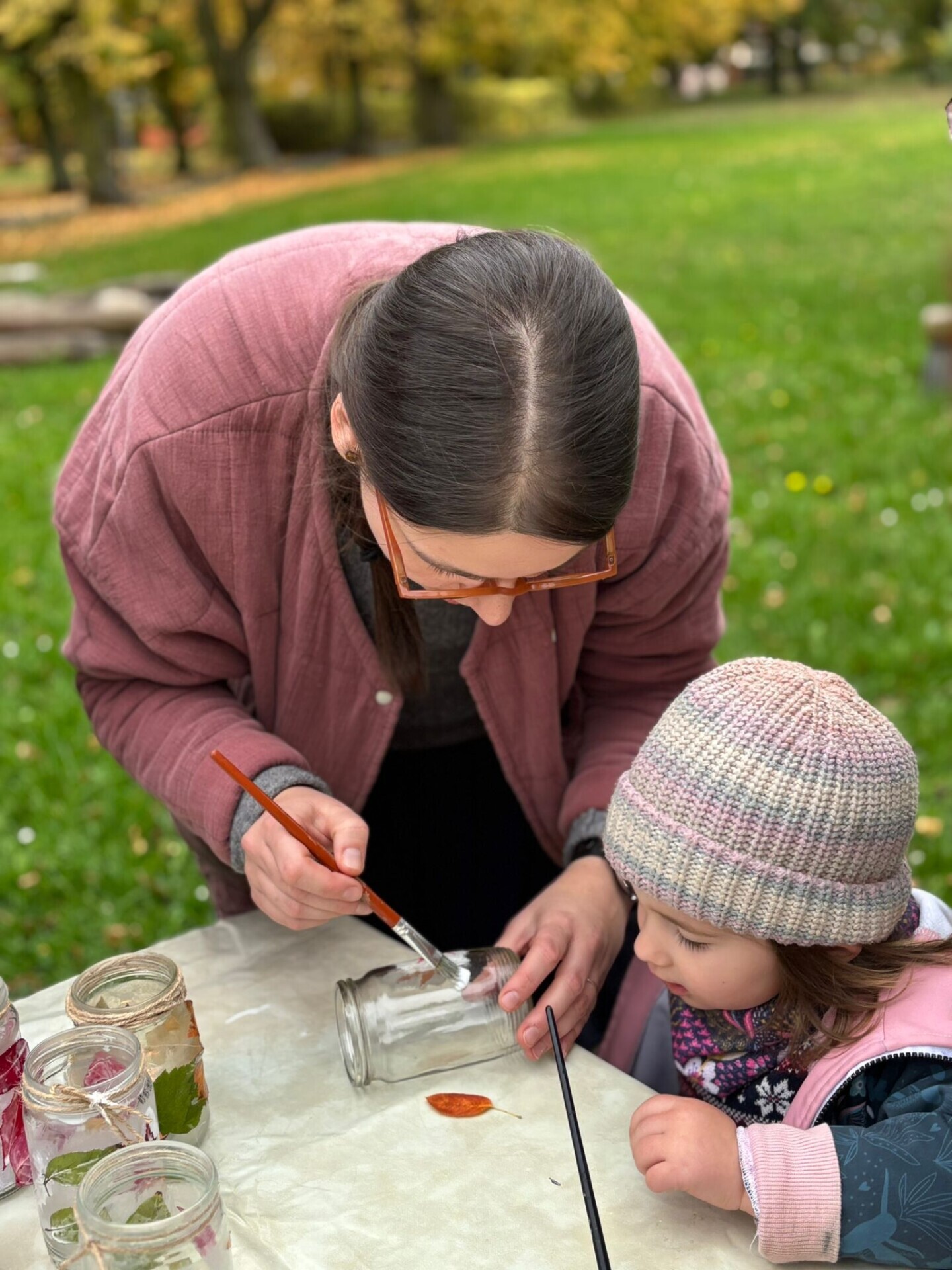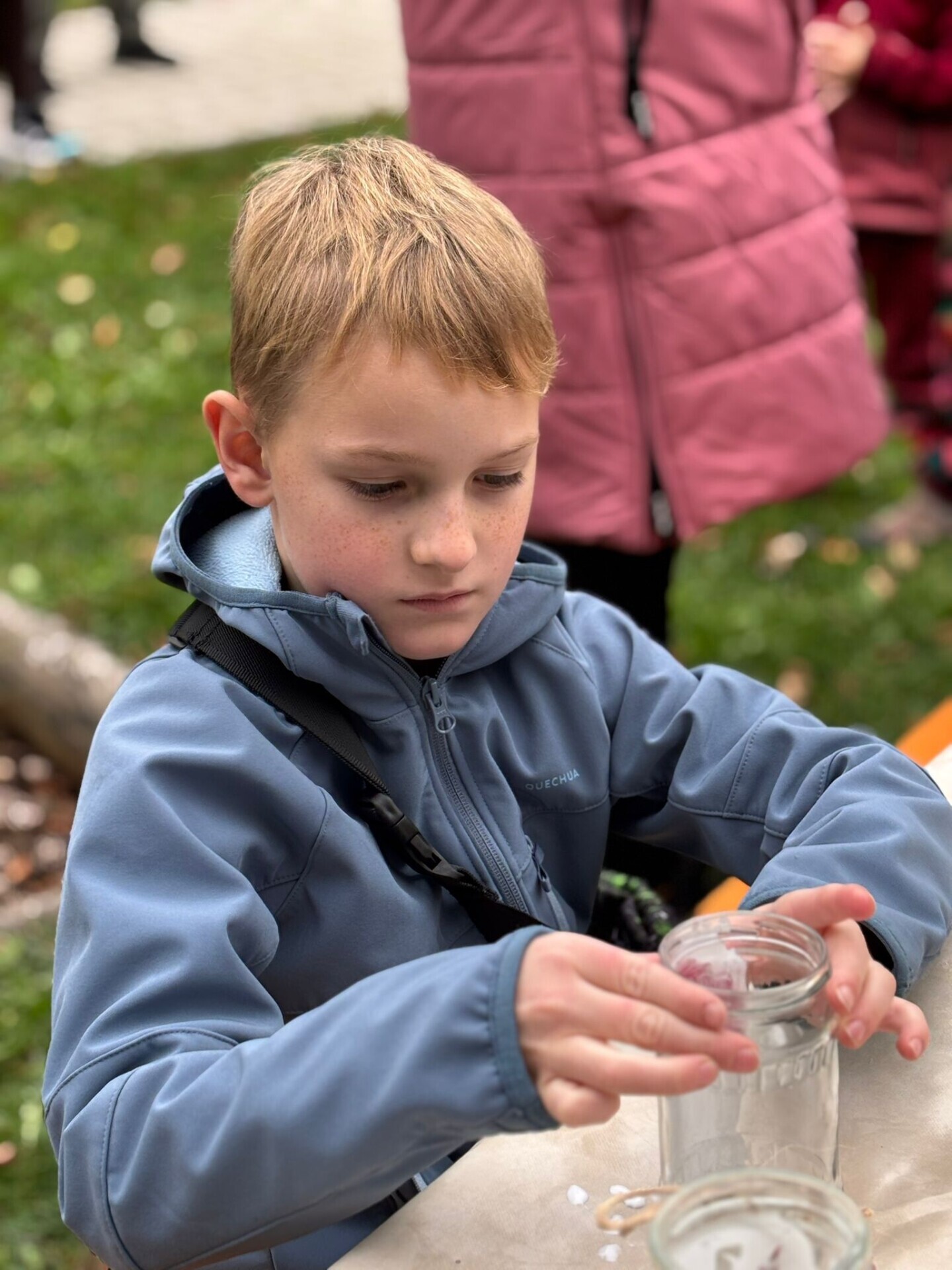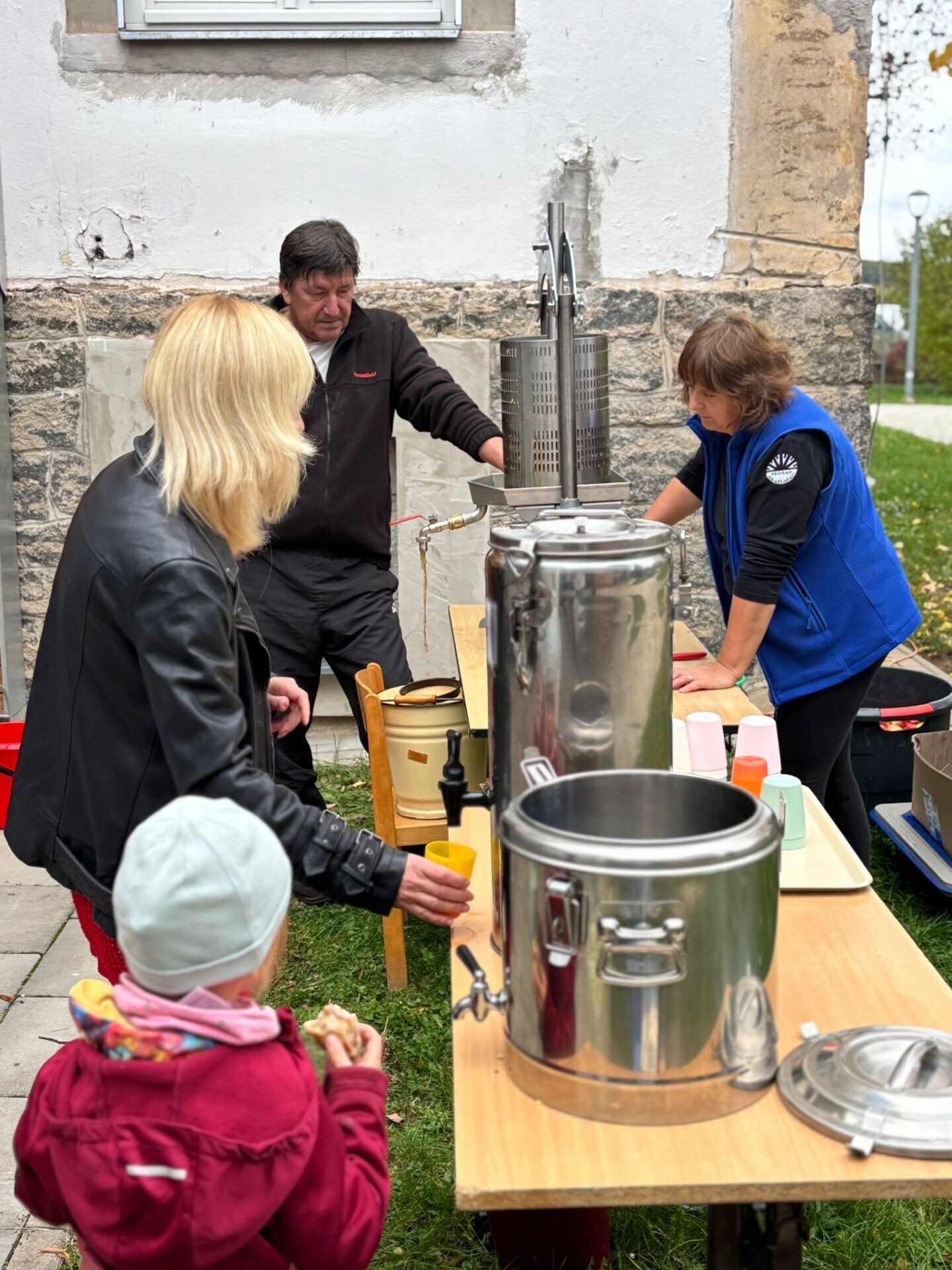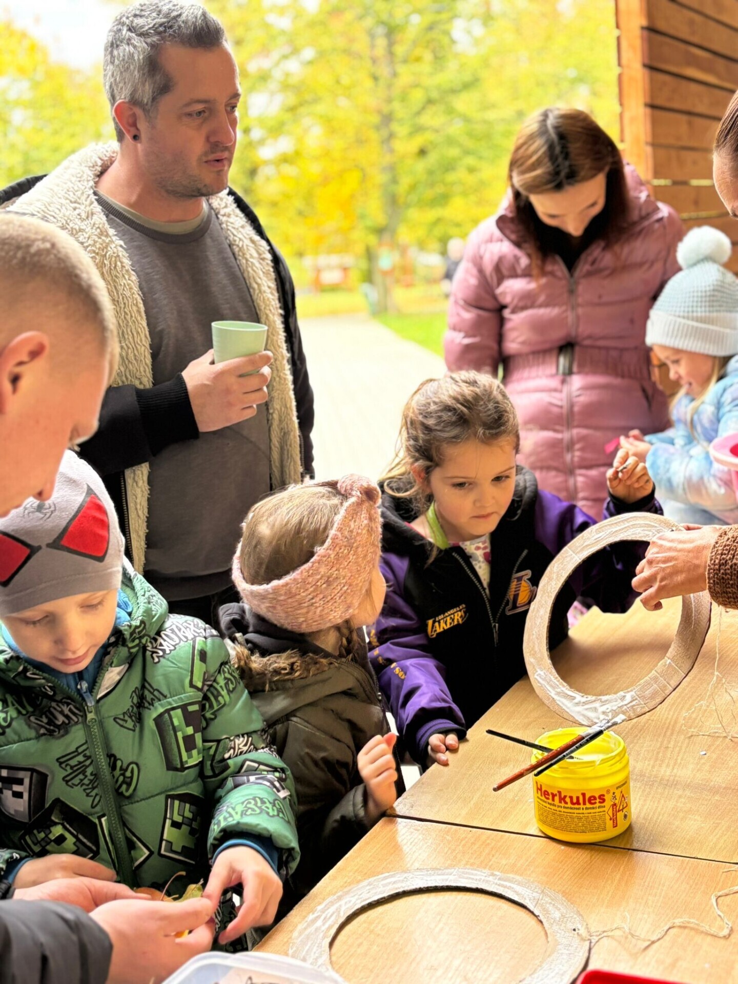 Ve čtvrtek 16. 10. 2025 jsme na zahradě naší MŠ uspořádali podzimní dílničky. Dílničky byly celkem tři (za každou třídu jedna), ve kterých jste si s dětmi mohli vytvořit podzimní dekorace z přírodnin. V dílničce připravené třídou Motýlků byla možnost vyrobit si skřítka Podzimníčka z listů a roličky od toaletního papíru. U stanoviště ze třídy Ježečků se vyráběl podzimní věnec z listů a kaštanů a u stolečku Soviček se vyrábělo opět z listí. Děti, ale i rodiče, si u tohoto stolečku mohli vyrobit podzimní svícen ze sklenic a listí. Abychom si čekání na volné stanoviště zkrátili, byla připravena i ukázka moštování jablek, ochutnávka moštu i sladké občerstvení od naší paní školnice Marcely. Na závěr dne byl zapálen ohýnek, na kterém si každý mohl upéct v tomto roce (nejspíše) poslední vuřty či klobásy.