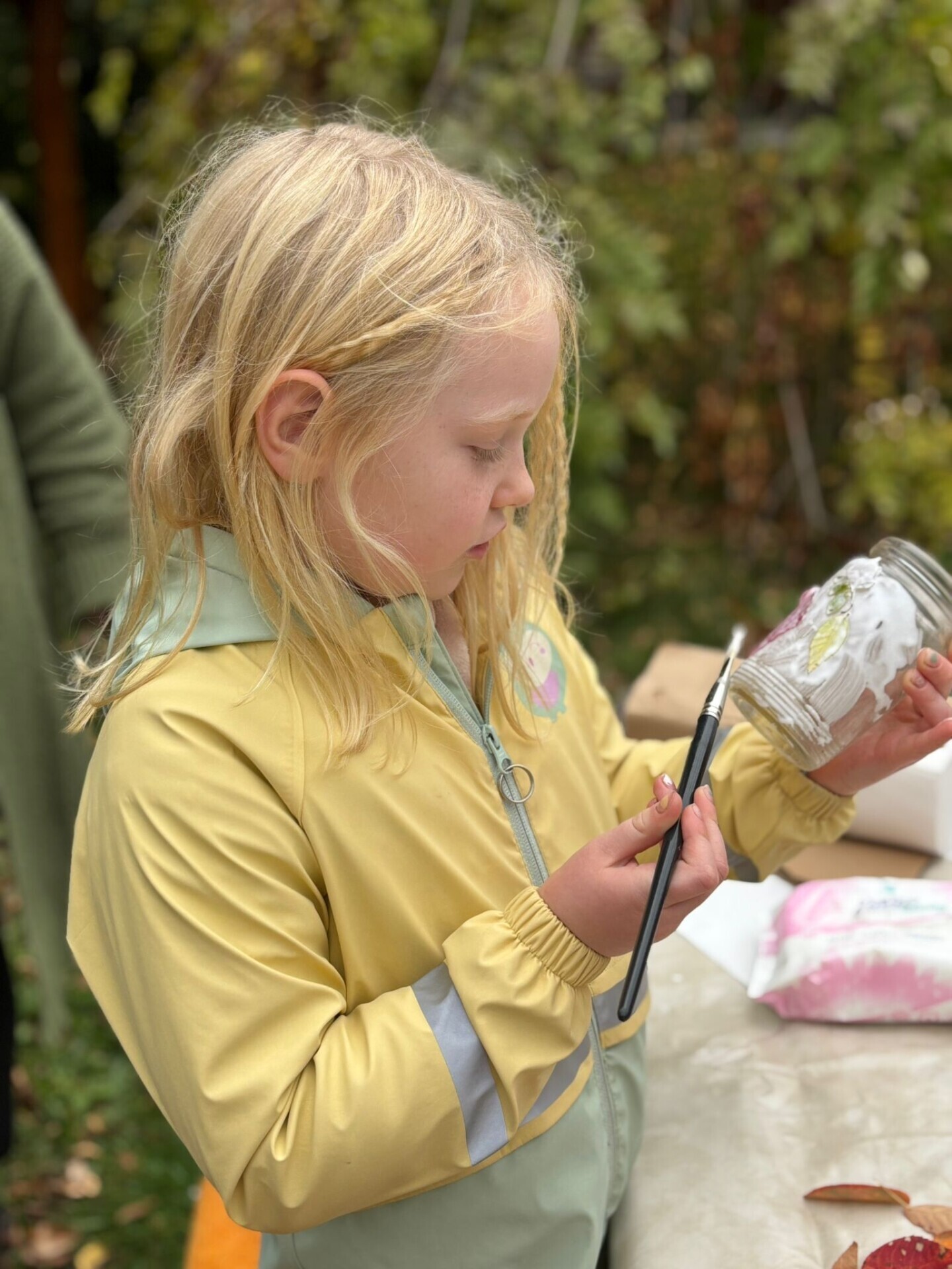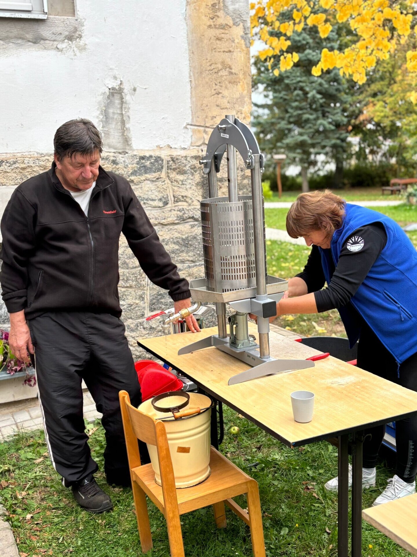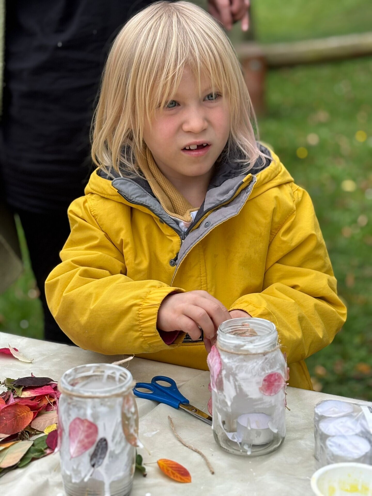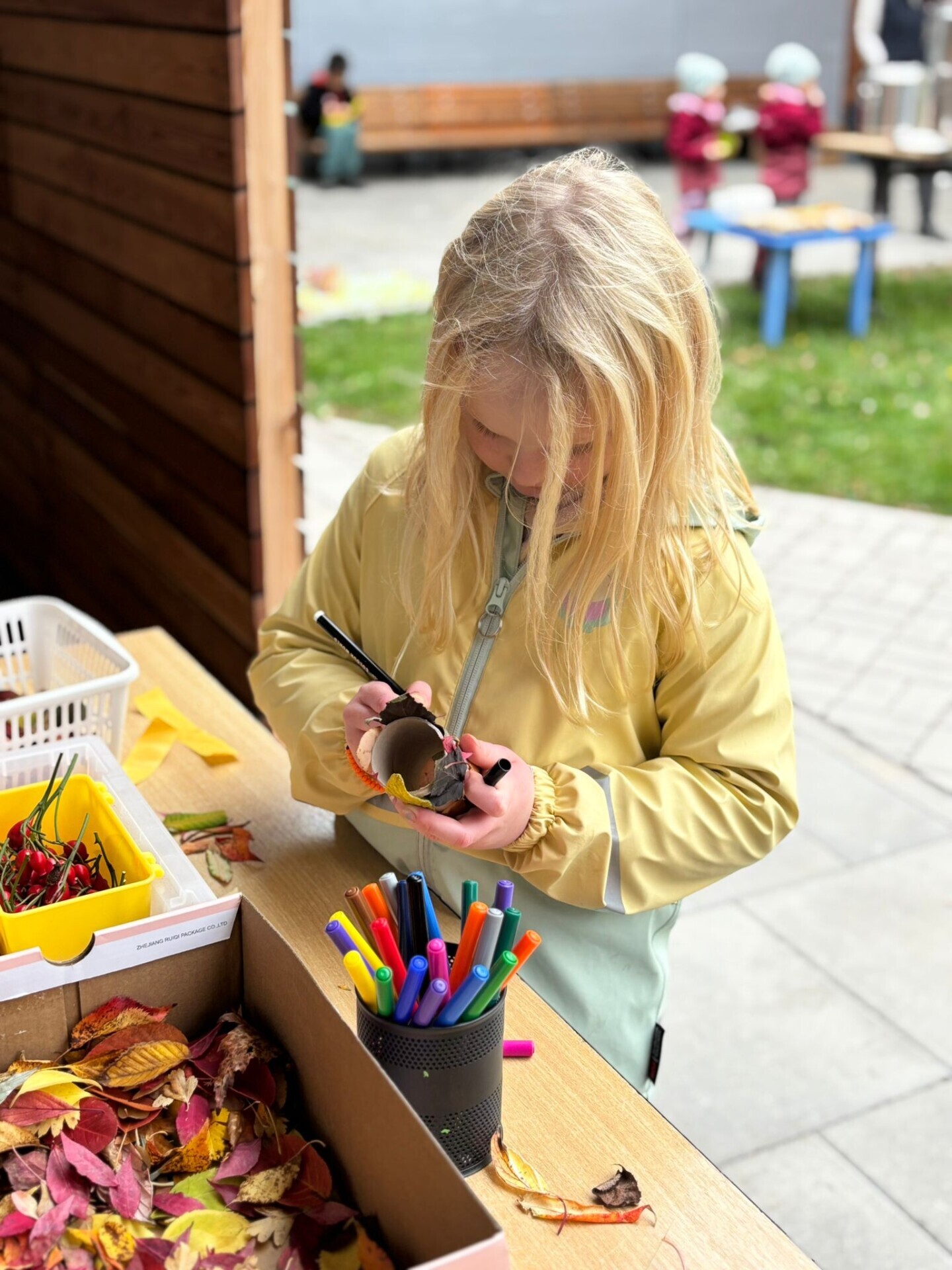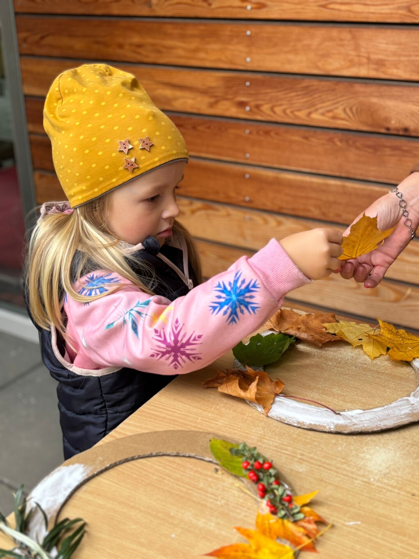Ve čtvrtek 16. 10. 2025 jsme na zahradě naší MŠ uspořádali podzimní dílničky. Dílničky byly celkem tři (za každou třídu jedna), ve kterých jste si s dětmi mohli vytvořit podzimní dekorace z přírodnin. V dílničce připravené třídou Motýlků byla možnost vyrobit si skřítka Podzimníčka z listů a roličky od toaletního papíru. U stanoviště ze třídy Ježečků se vyráběl podzimní věnec z listů a kaštanů a u stolečku Soviček se vyrábělo opět z listí. Děti, ale i rodiče, si u tohoto stolečku mohli vyrobit podzimní svícen ze sklenic a listí. Abychom si čekání na volné stanoviště zkrátili, byla připravena i ukázka moštování jablek, ochutnávka moštu i sladké občerstvení od naší paní školnice Marcely. Na závěr dne byl zapálen ohýnek, na kterém si každý mohl upéct v tomto roce (nejspíše) poslední vuřty či klobásy.