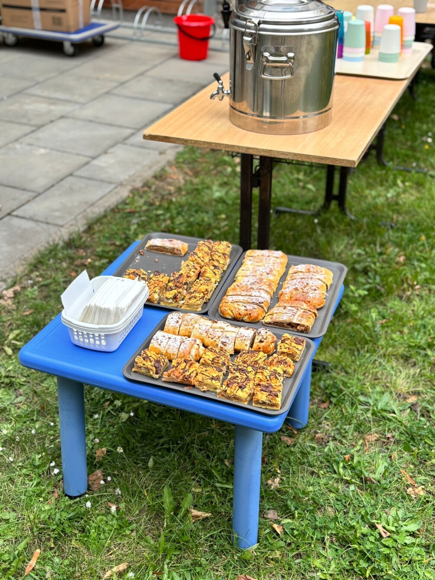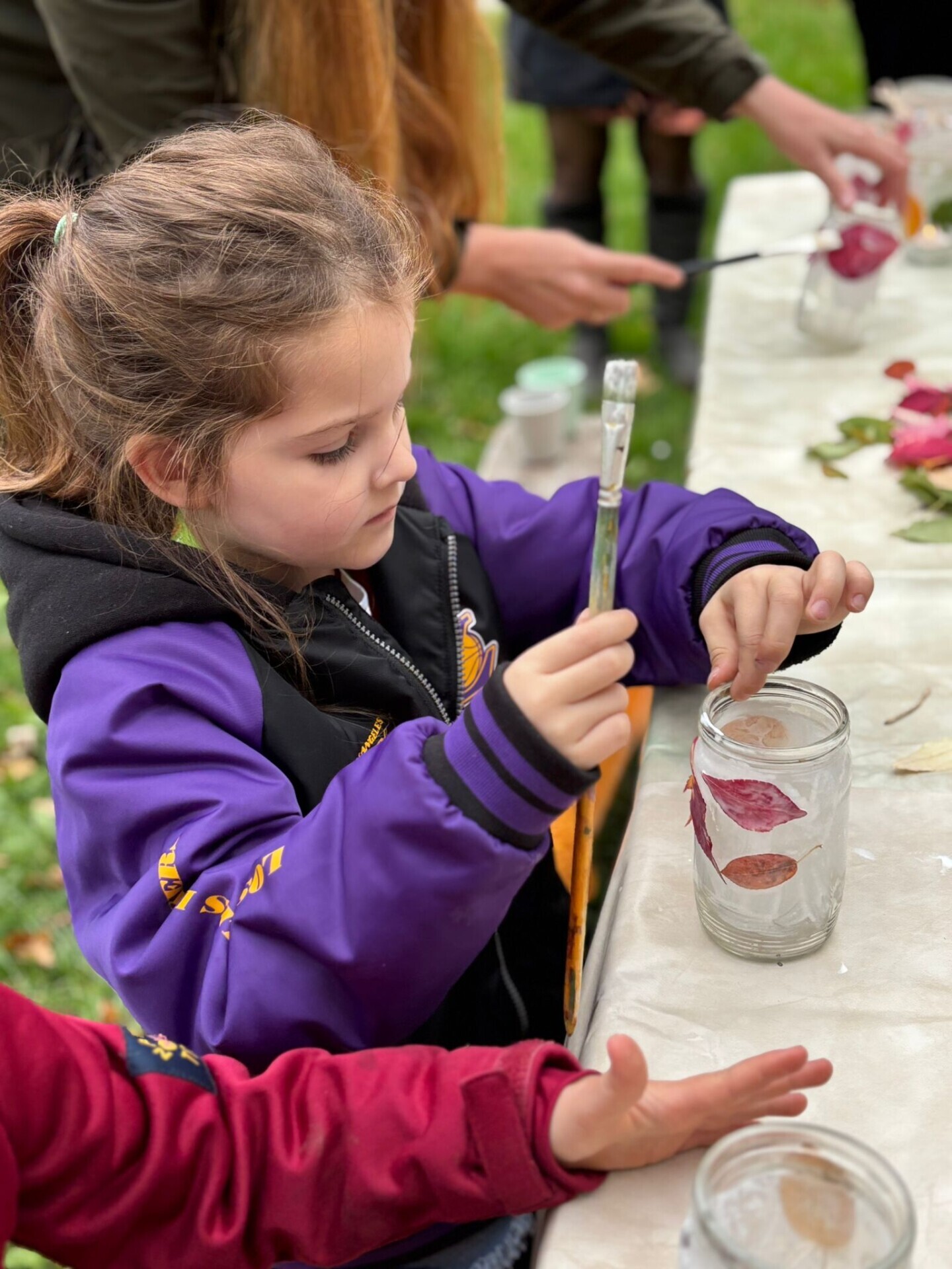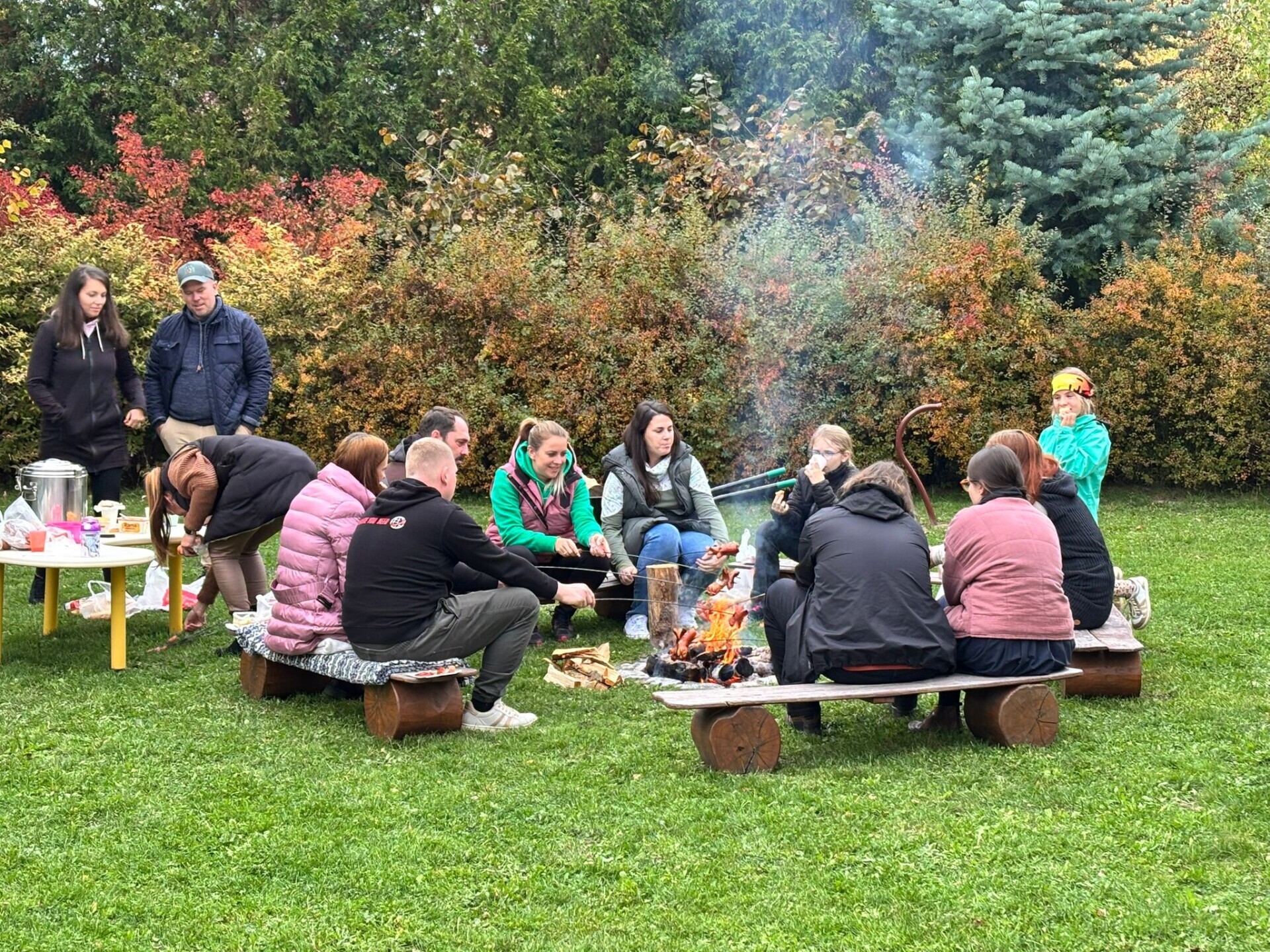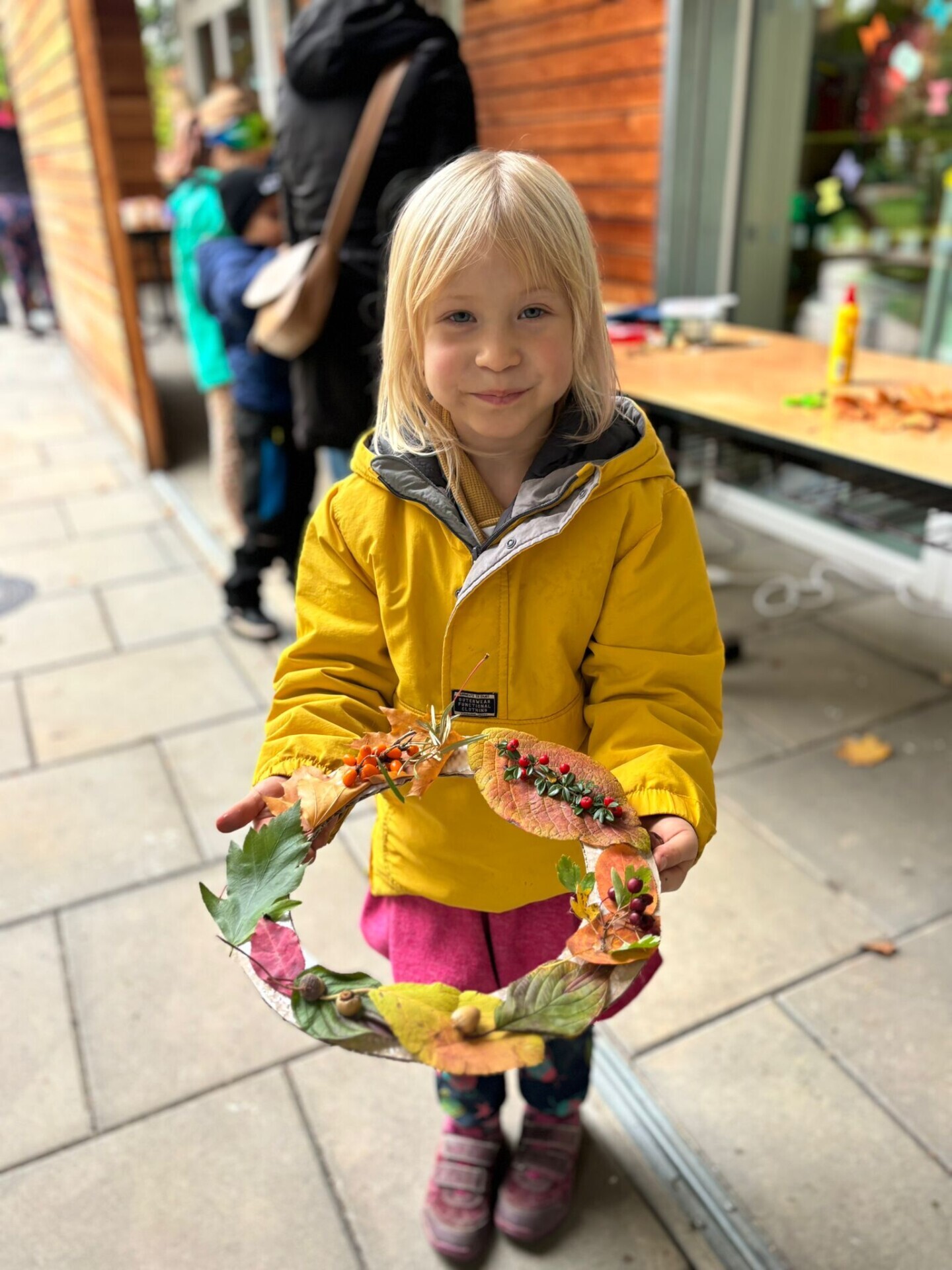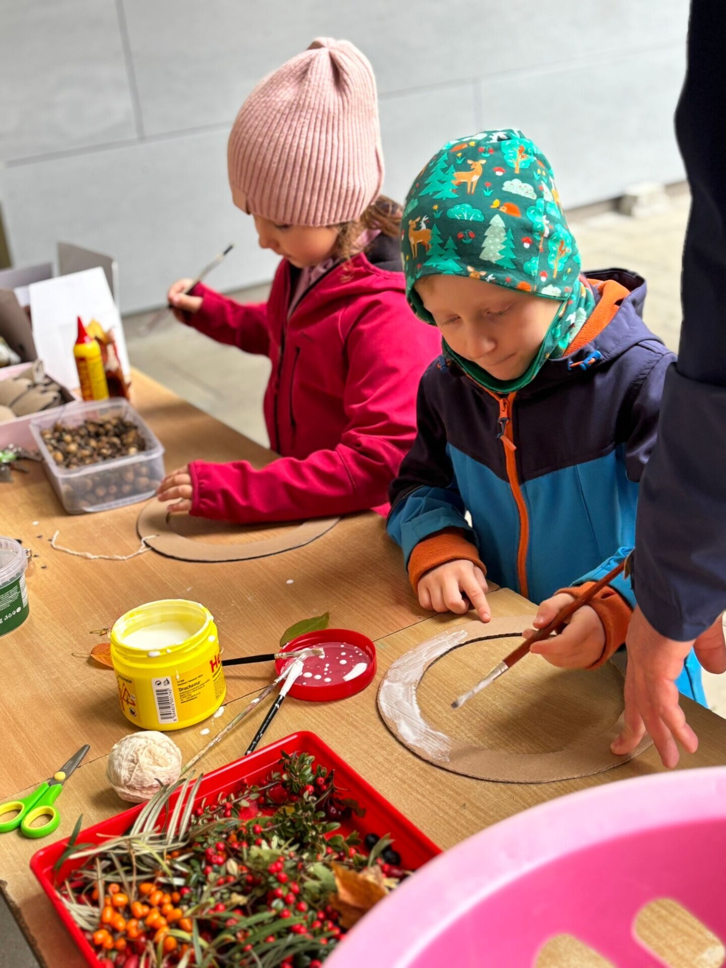 Ve čtvrtek 16. 10. 2025 jsme na zahradě naší MŠ uspořádali podzimní dílničky. Dílničky byly celkem tři (za každou třídu jedna), ve kterých jste si s dětmi mohli vytvořit podzimní dekorace z přírodnin. V dílničce připravené třídou Motýlků byla možnost vyrobit si skřítka Podzimníčka z listů a roličky od toaletního papíru. U stanoviště ze třídy Ježečků se vyráběl podzimní věnec z listů a kaštanů a u stolečku Soviček se vyrábělo opět z listí. Děti, ale i rodiče, si u tohoto stolečku mohli vyrobit podzimní svícen ze sklenic a listí. Abychom si čekání na volné stanoviště zkrátili, byla připravena i ukázka moštování jablek, ochutnávka moštu i sladké občerstvení od naší paní školnice Marcely. Na závěr dne byl zapálen ohýnek, na kterém si každý mohl upéct v tomto roce (nejspíše) poslední vuřty či klobásy.