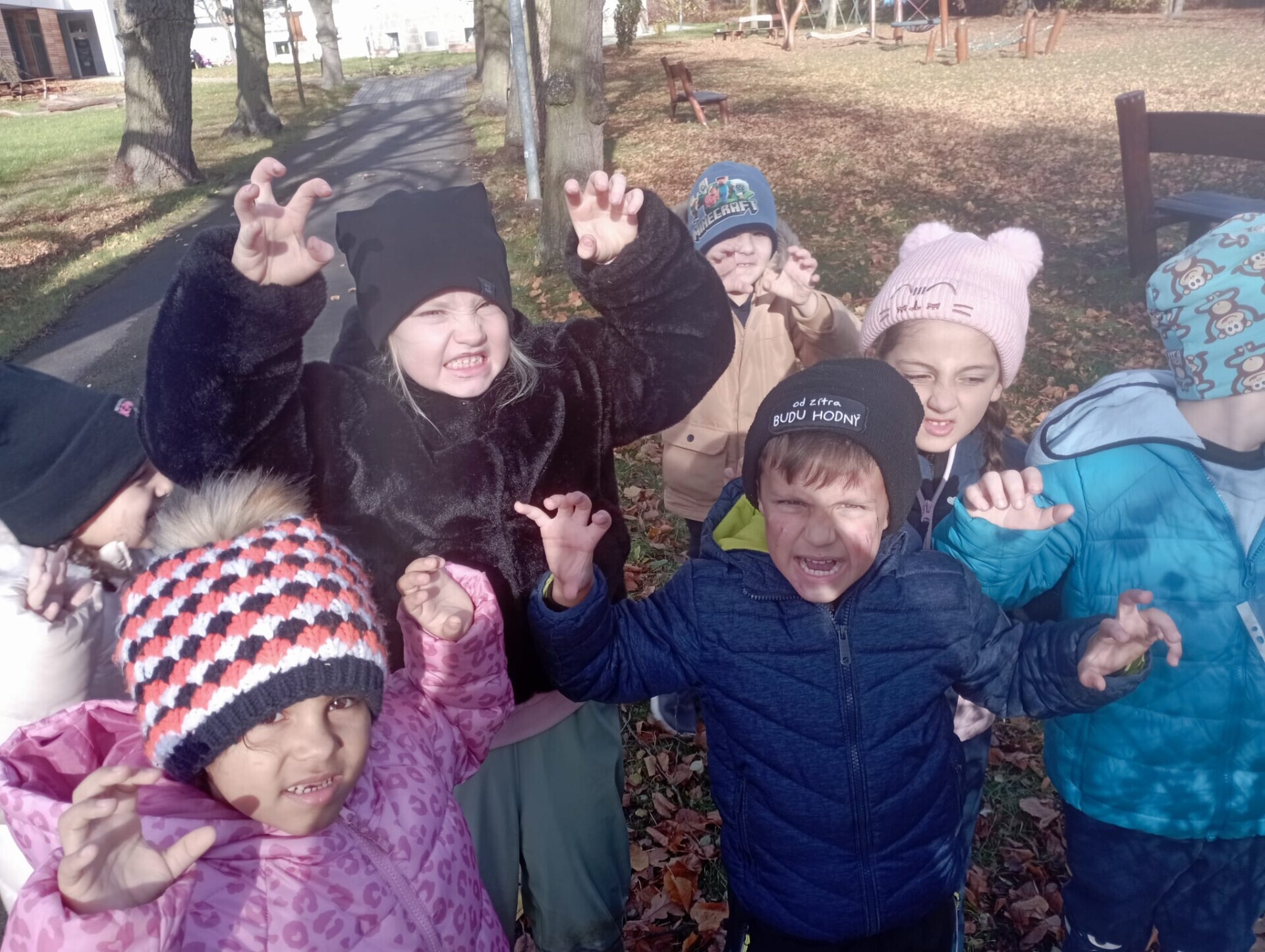 V úterý 4. 11. 2025 přišly děti do Halloweenské školky. Celý den jsme se totiž věnovali halloweenu a jeho oslavě. Spousta dětí přišlo v maskách (ve strašidelných nebo superhrdinských), a tak jsme se nejdříve ostatním dětem představili, aby všichni věděli, co jsme za masky. Poté jsme se vydali na halloweenskou svačinku a z té pak rovnou na diskotéku do třídy Ježečků. U Ježečků jsme se při tanci pořádně vyřádili, tančili jsme jak na dětské písničky, tak i na písničky strašidelné, halloweenské.