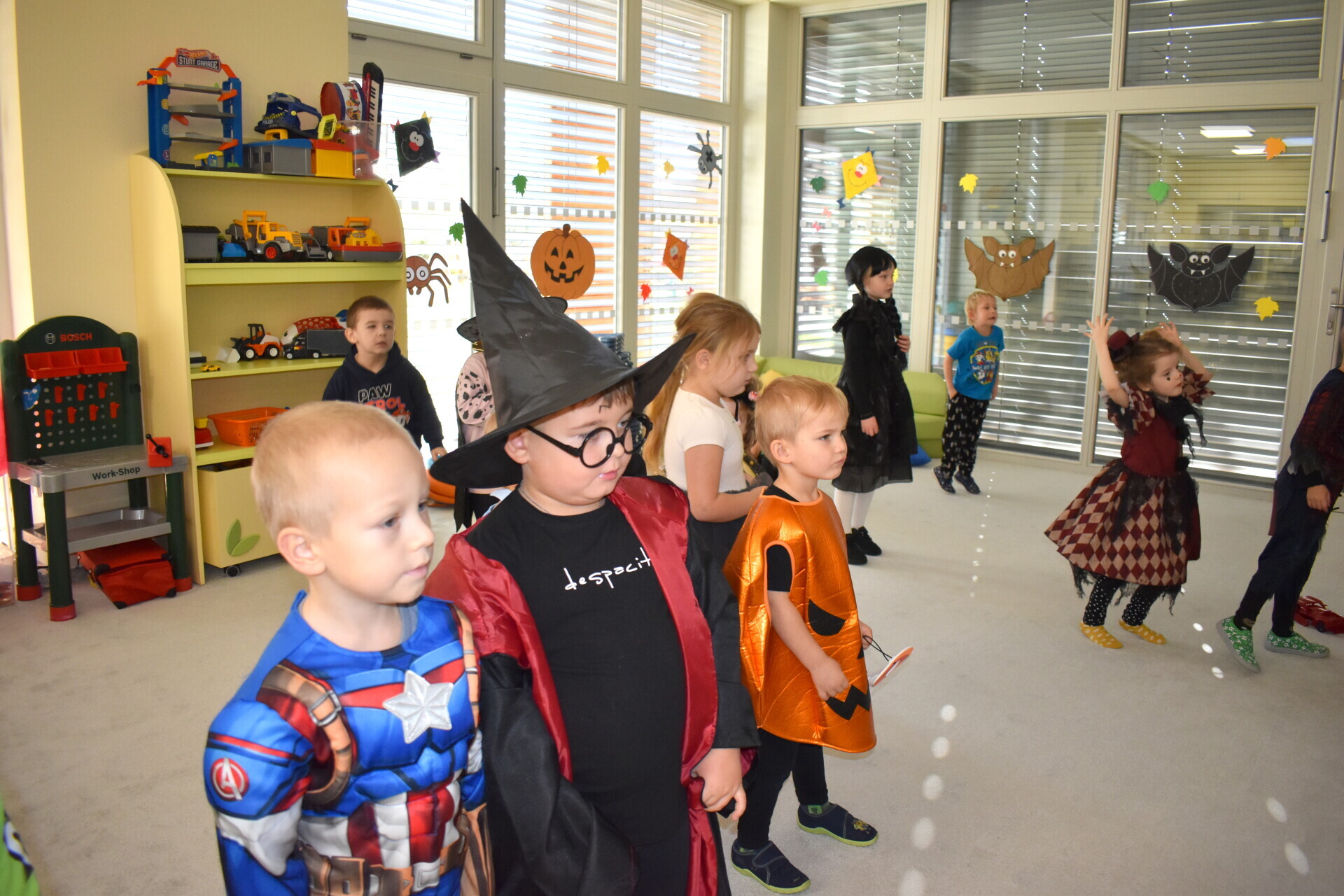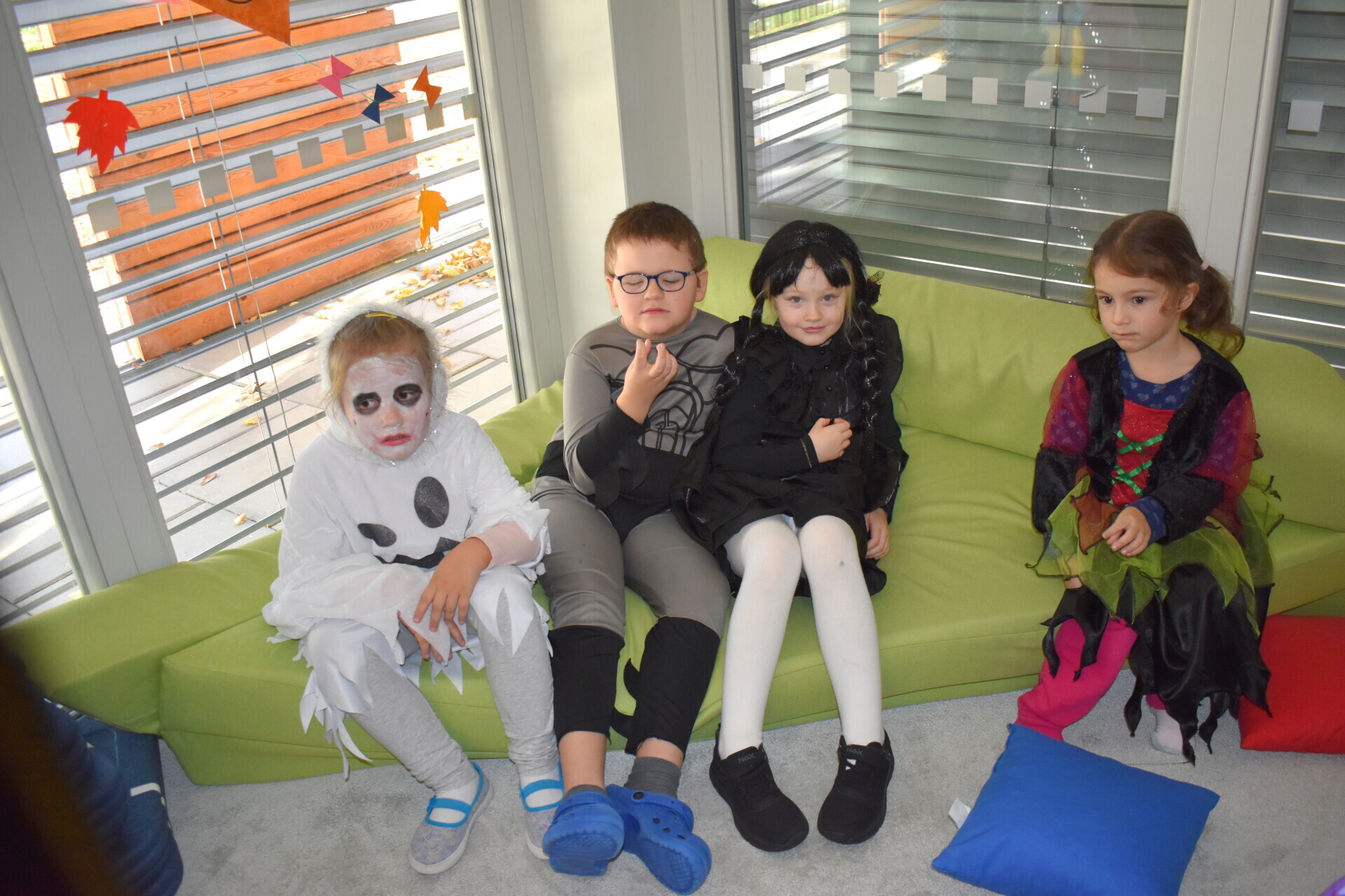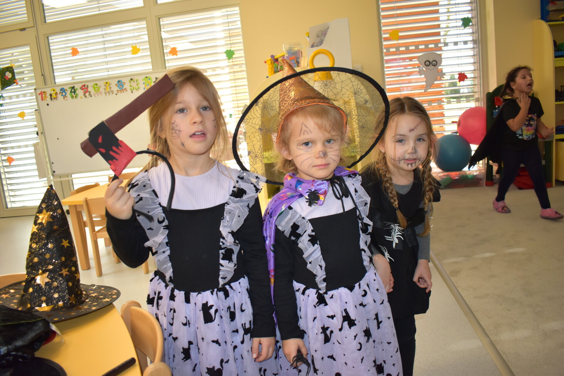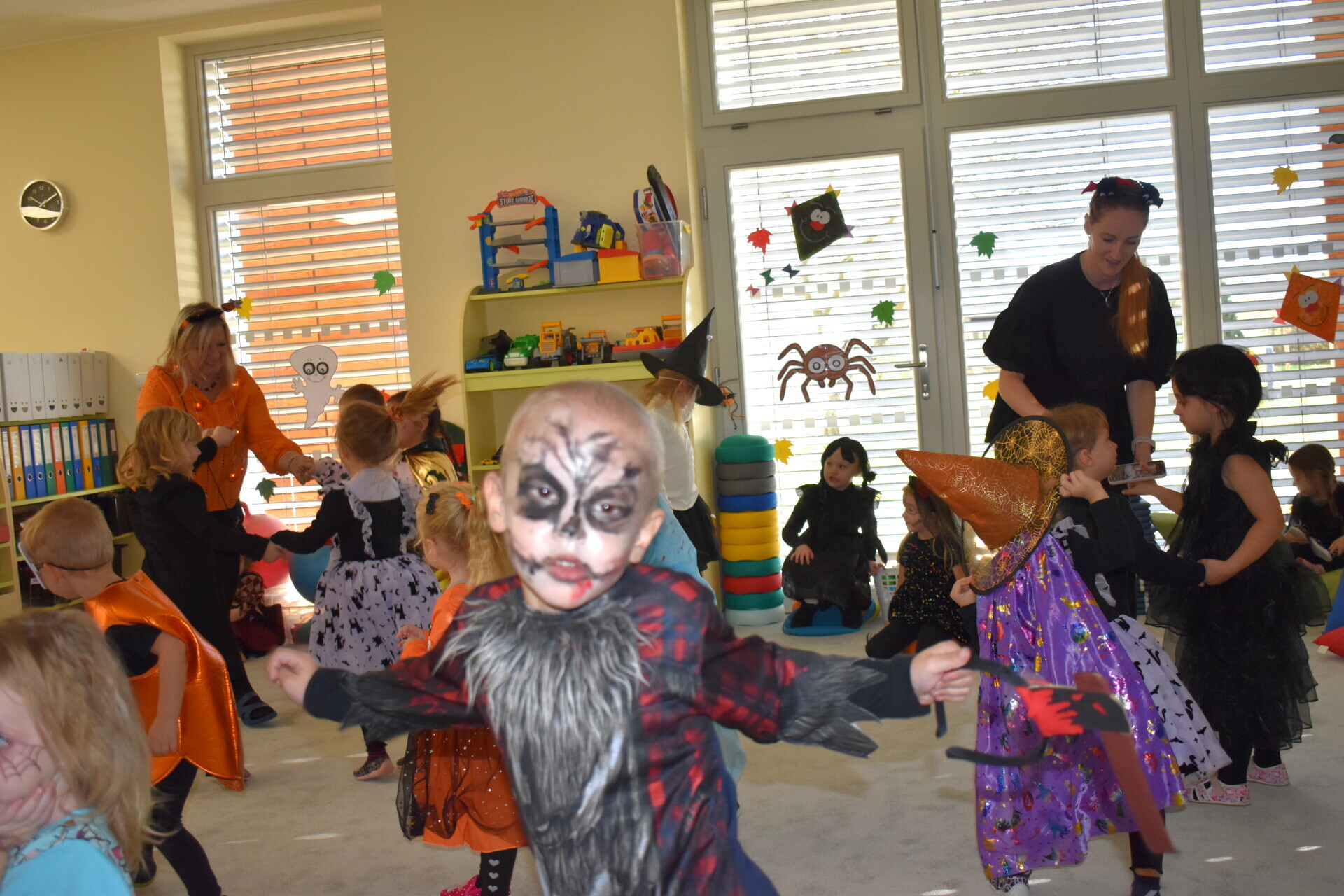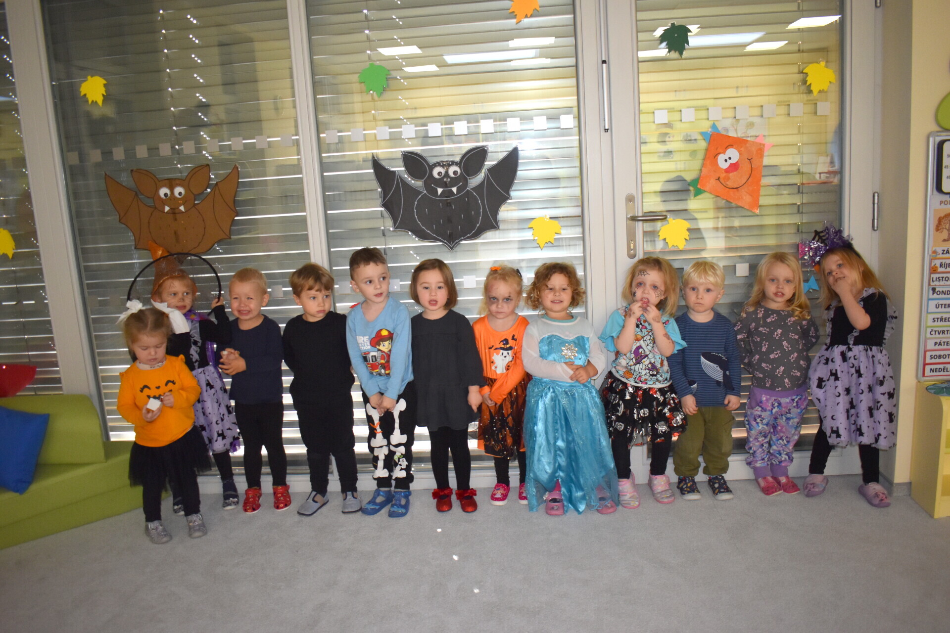 V úterý 4. 11. 2025 přišly děti do Halloweenské školky. Celý den jsme se totiž věnovali halloweenu a jeho oslavě. Spousta dětí přišlo v maskách (ve strašidelných nebo superhrdinských), a tak jsme se nejdříve ostatním dětem představili, aby všichni věděli, co jsme za masky. Poté jsme se vydali na halloweenskou svačinku a z té pak rovnou na diskotéku do třídy Ježečků. U Ježečků jsme se při tanci pořádně vyřádili, tančili jsme jak na dětské písničky, tak i na písničky strašidelné, halloweenské.
