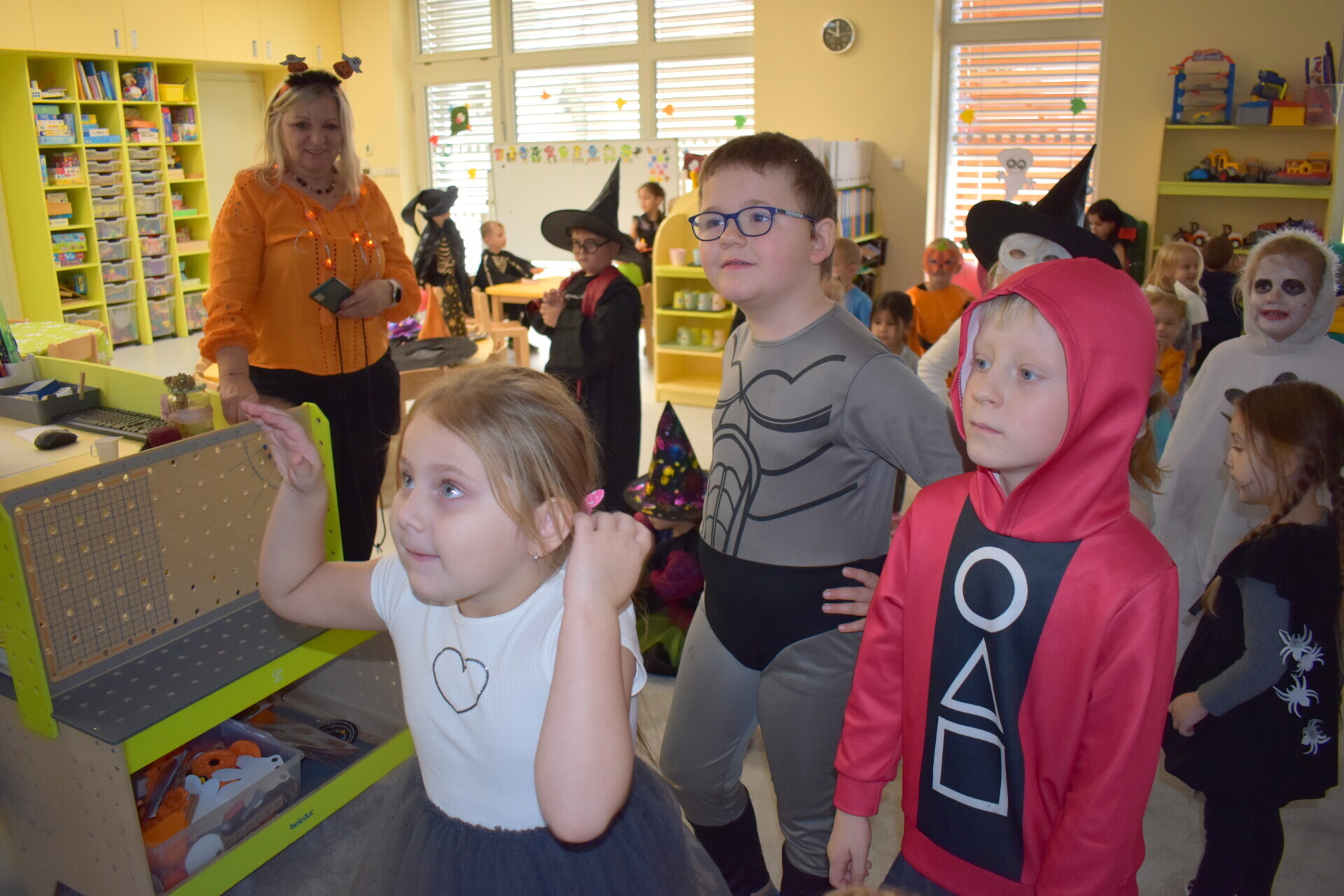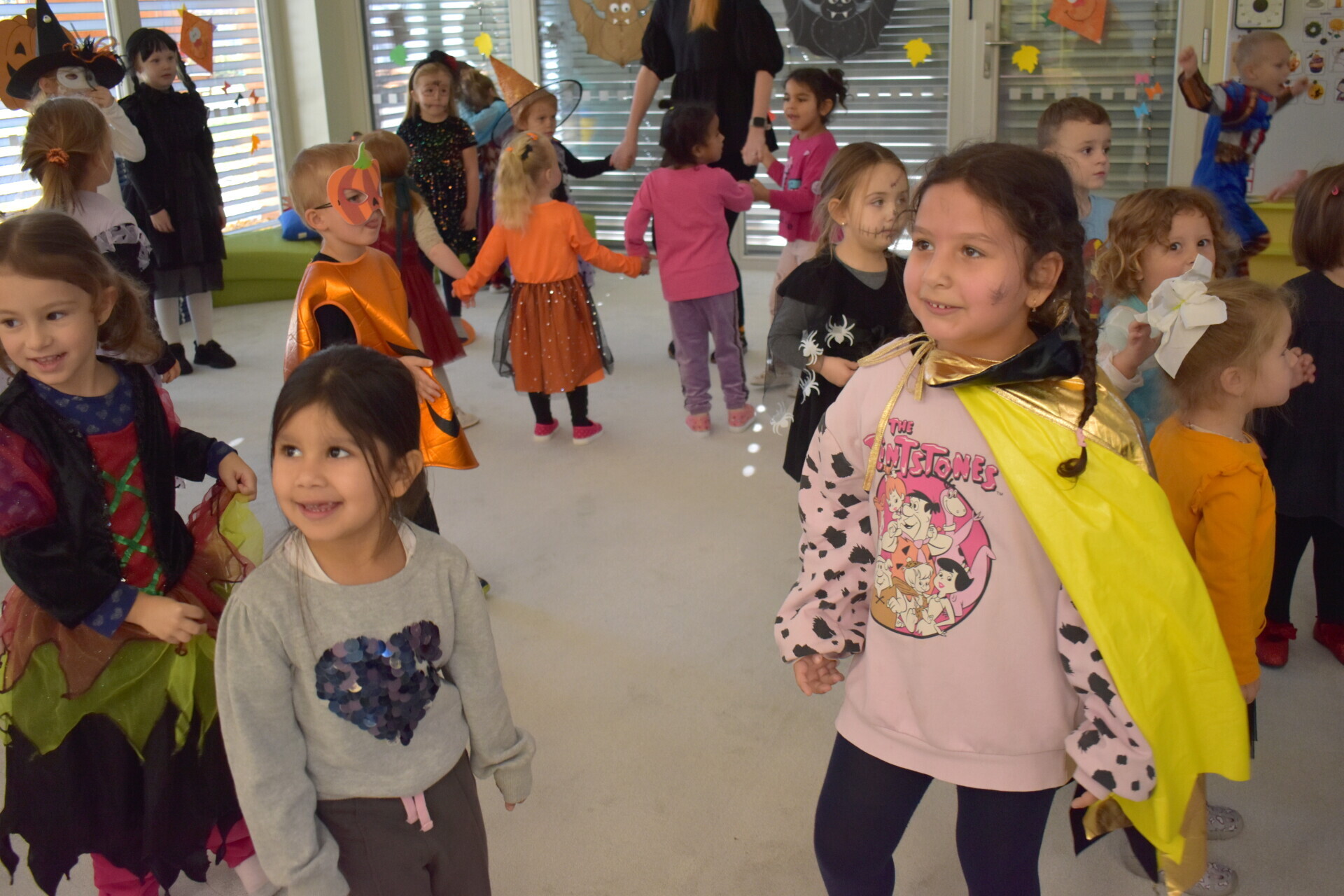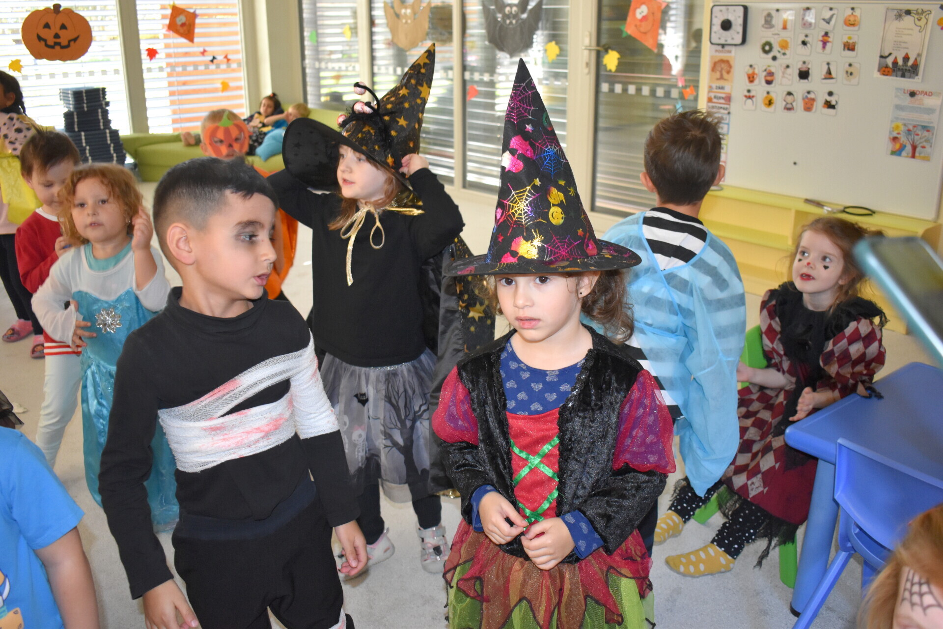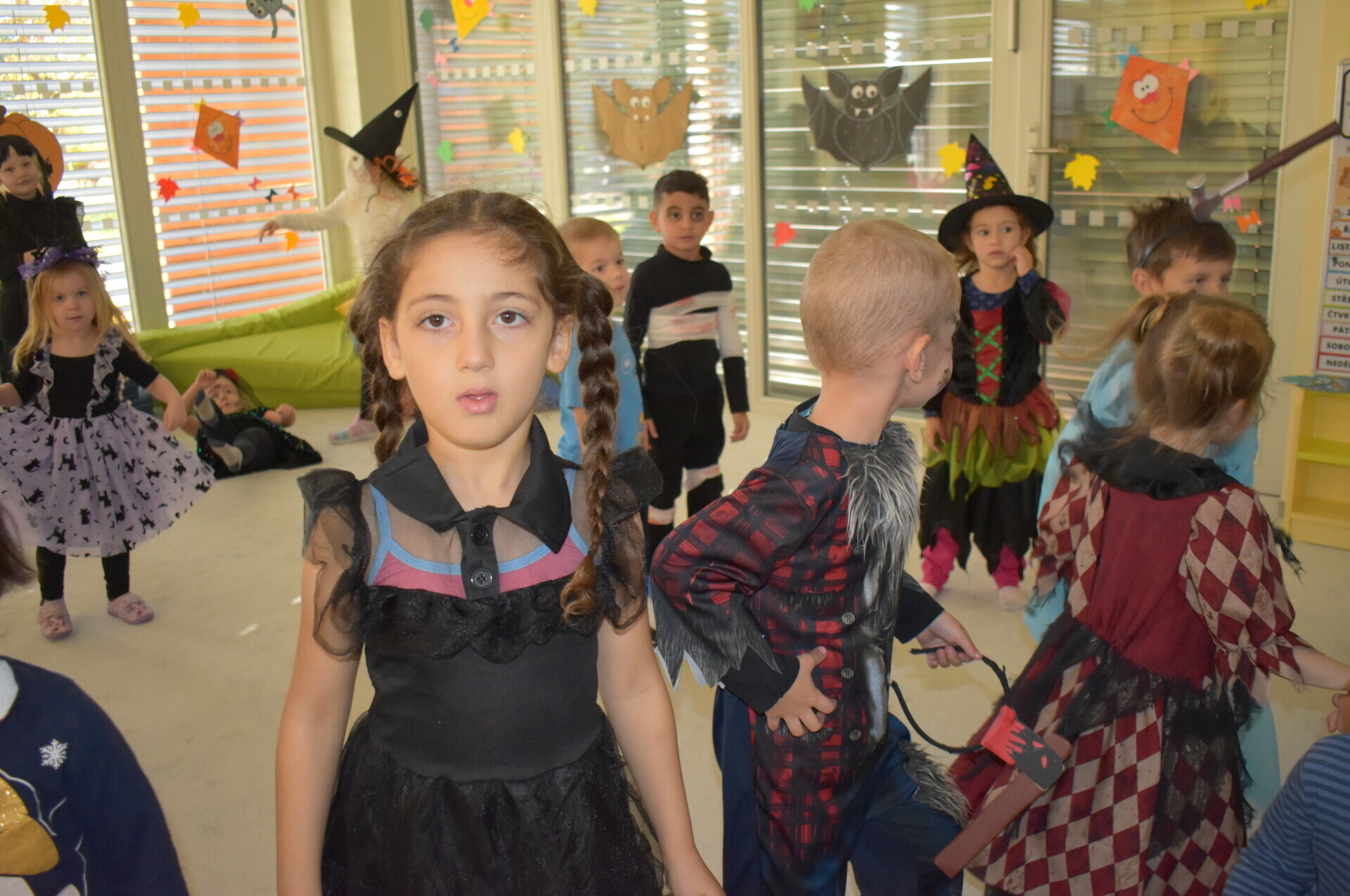 V úterý 4. 11. 2025 přišly děti do Halloweenské školky. Celý den jsme se totiž věnovali halloweenu a jeho oslavě. Spousta dětí přišlo v maskách (ve strašidelných nebo superhrdinských), a tak jsme se nejdříve ostatním dětem představili, aby všichni věděli, co jsme za masky. Poté jsme se vydali na halloweenskou svačinku a z té pak rovnou na diskotéku do třídy Ježečků. U Ježečků jsme se při tanci pořádně vyřádili, tančili jsme jak na dětské písničky, tak i na písničky strašidelné, halloweenské.