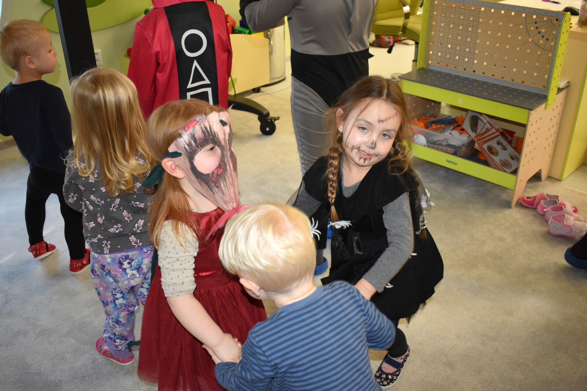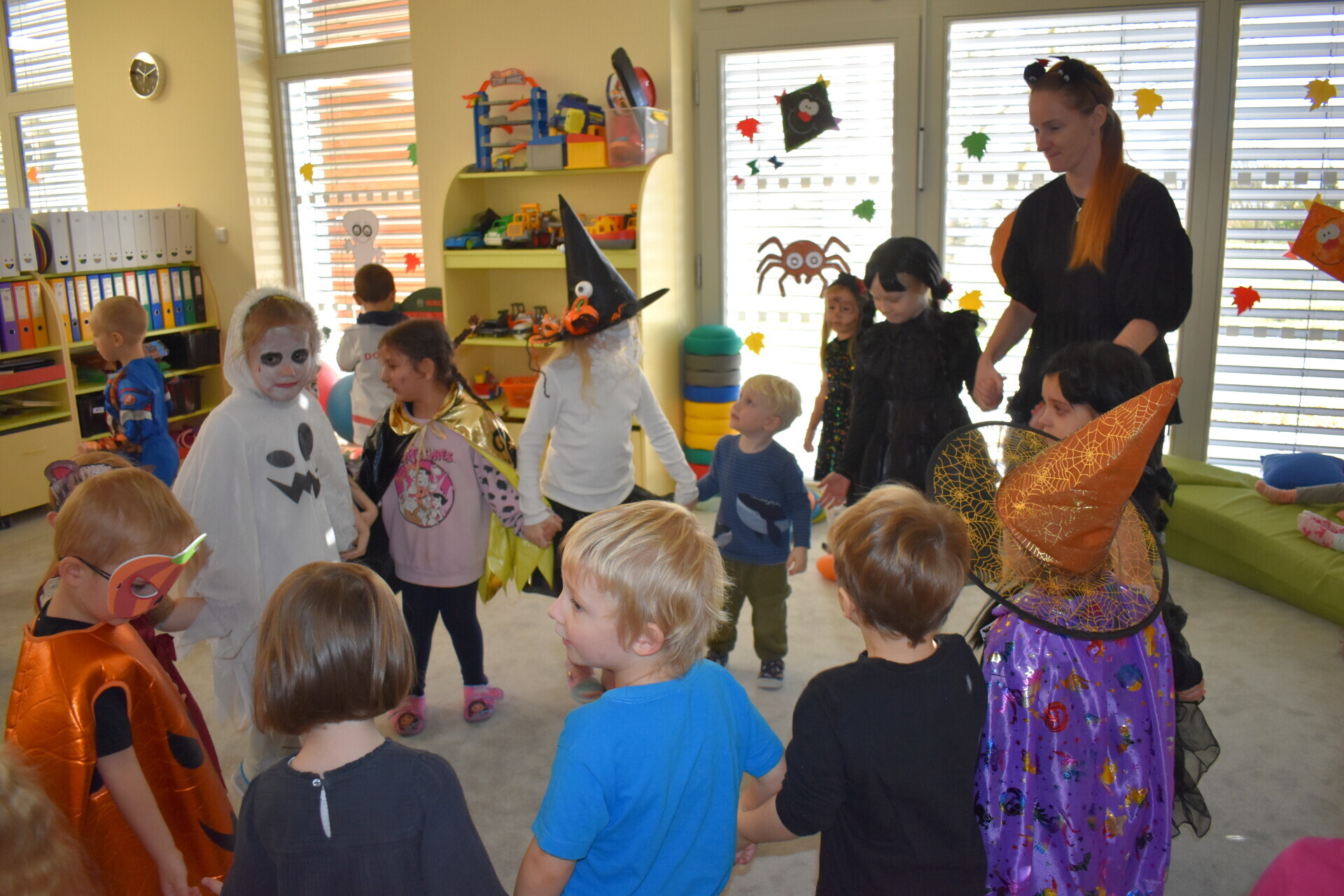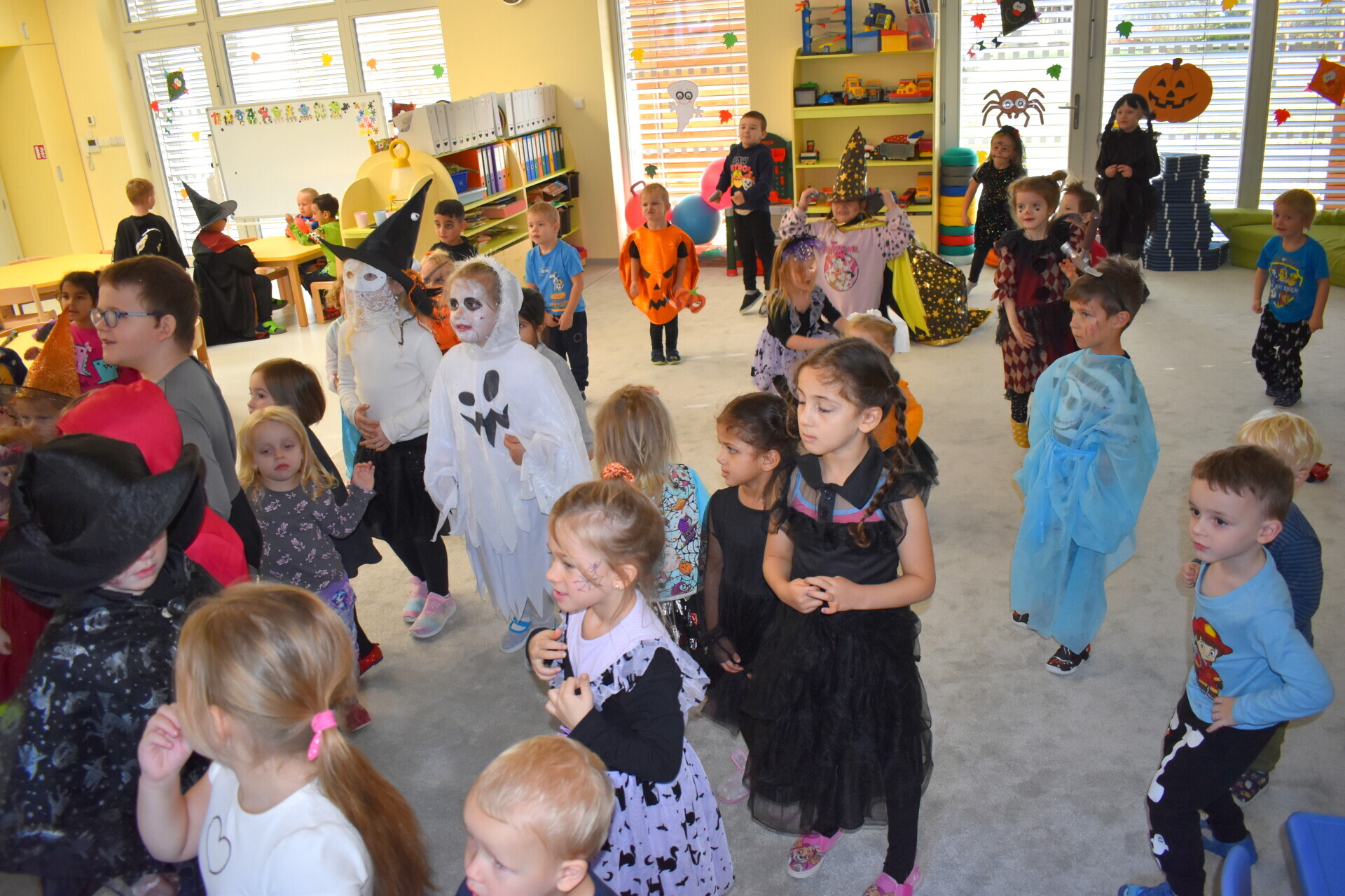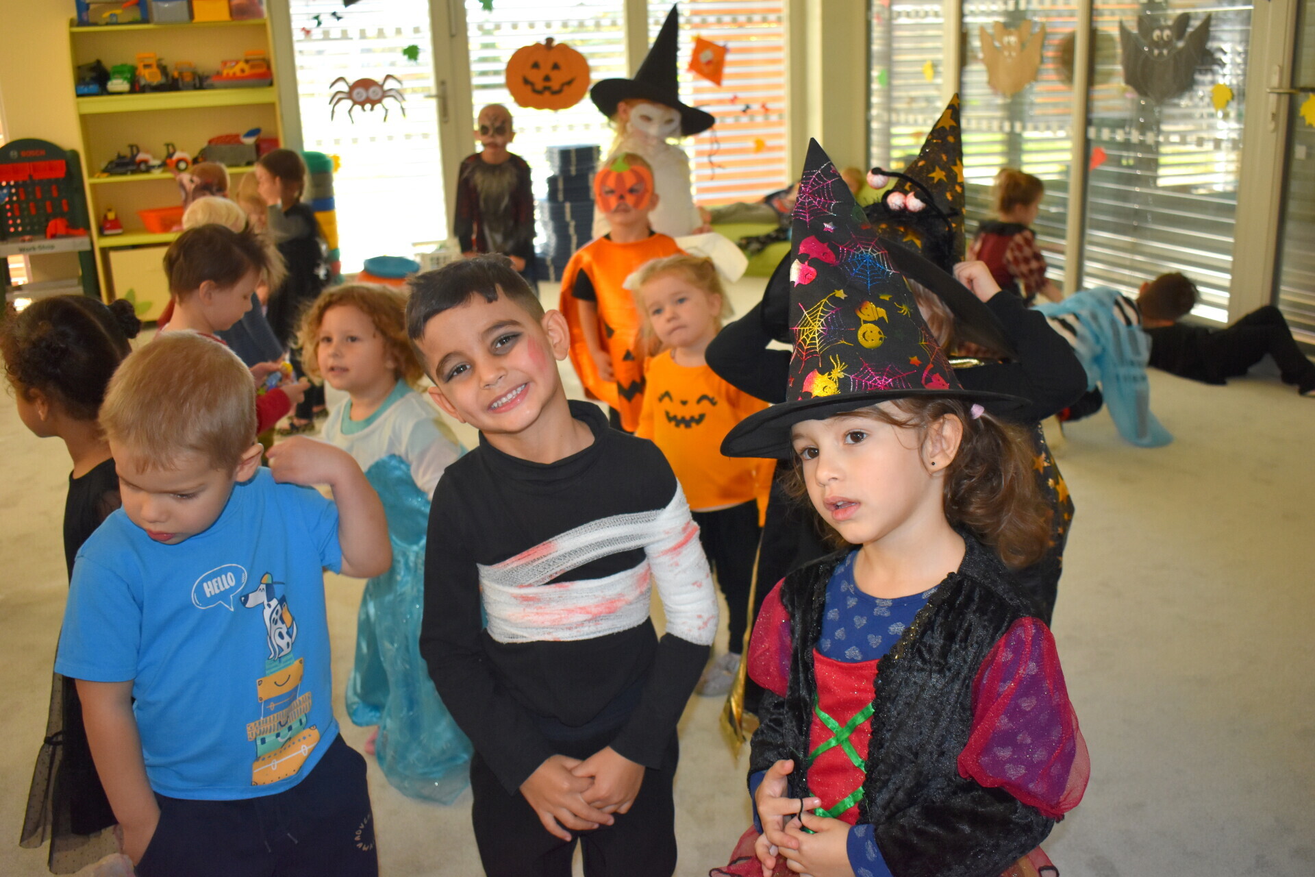 V úterý 4. 11. 2025 přišly děti do Halloweenské školky. Celý den jsme se totiž věnovali halloweenu a jeho oslavě. Spousta dětí přišlo v maskách (ve strašidelných nebo superhrdinských), a tak jsme se nejdříve ostatním dětem představili, aby všichni věděli, co jsme za masky. Poté jsme se vydali na halloweenskou svačinku a z té pak rovnou na diskotéku do třídy Ježečků. U Ježečků jsme se při tanci pořádně vyřádili, tančili jsme jak na dětské písničky, tak i na písničky strašidelné, halloweenské.