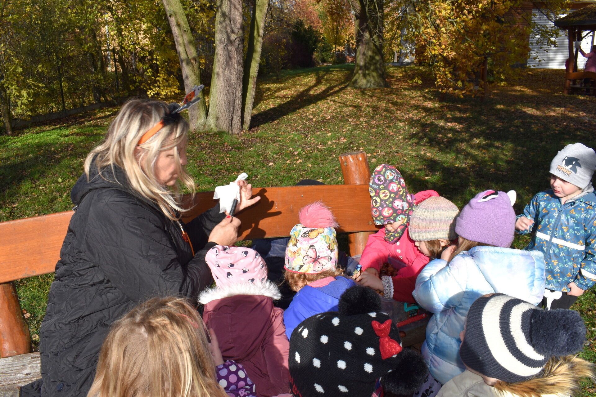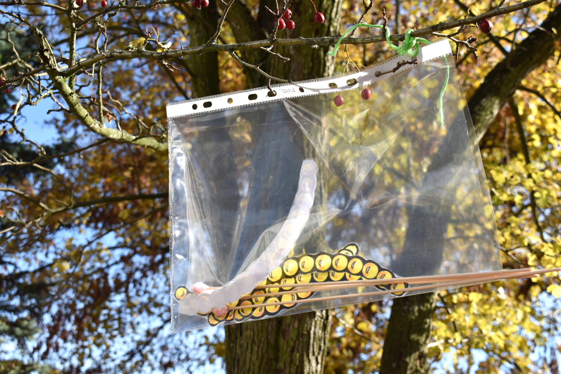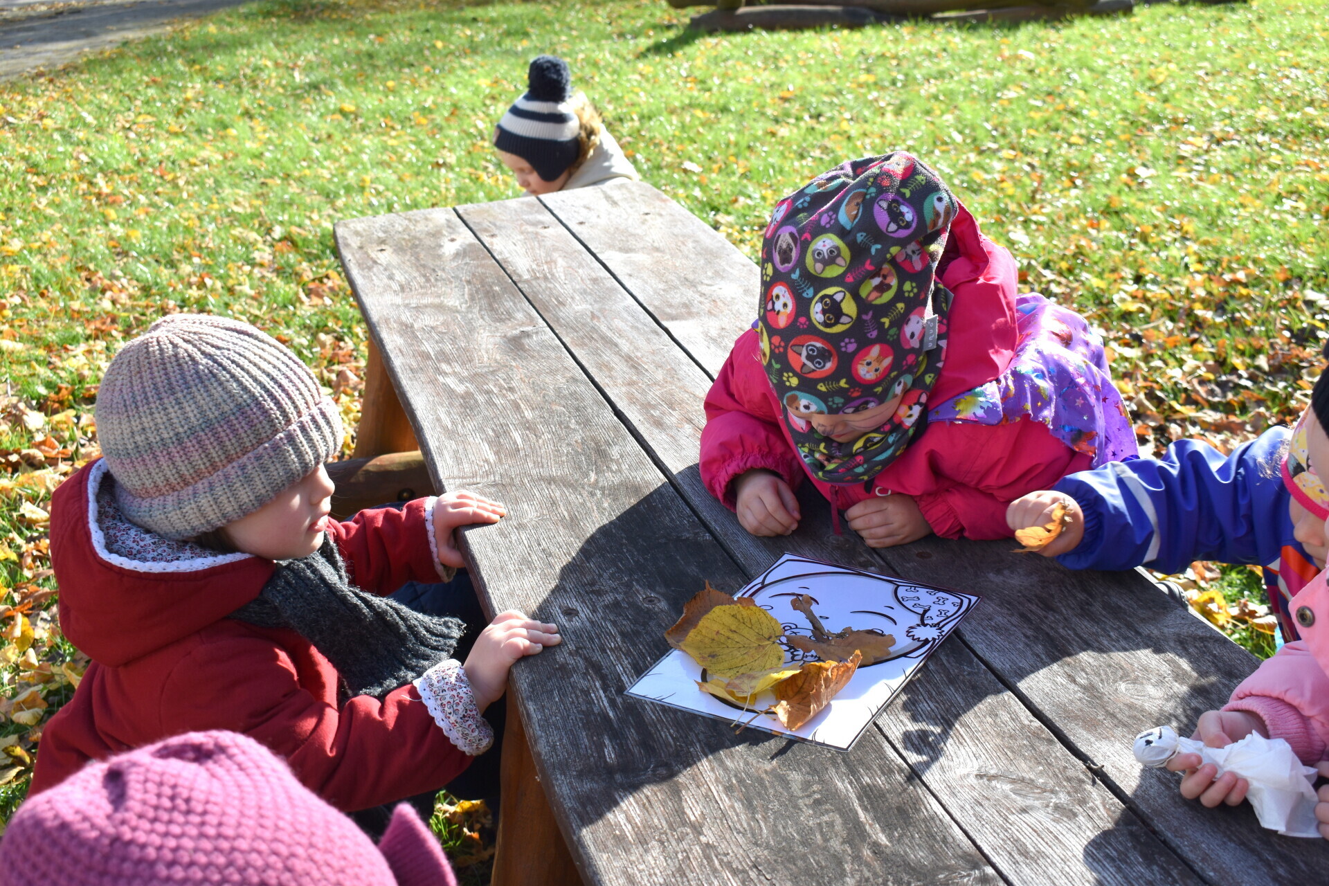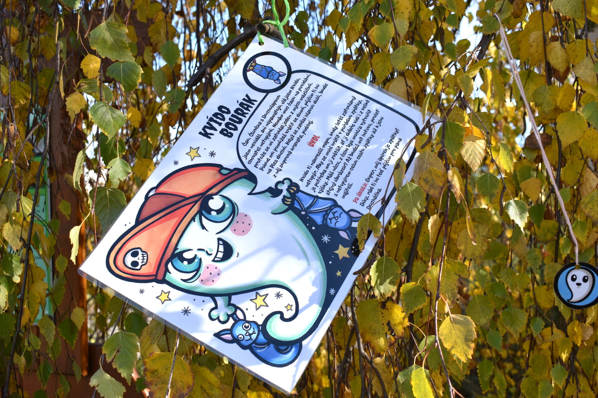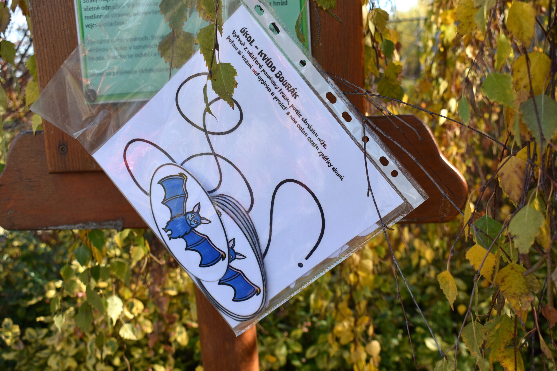 Pak ale přišel čas na pobyt venku na čerstvém vzduchu. I tam si pro nás paní učitelky připravily zábavu. Po celé zahradě jsme měli rozmístěnou "duchařskou" stezku. Duchové naštěstí nebyli zlí a strašidelní, ale hodní a smutní. Paní a pan Ducháčkovi se totiž chystali na ples, ale neměli žádné plesové doplňky a naším úkolem bylo najít po zahradě ostatní duchy, jejich kamarády, splnit jejich úkoly a půjčit si od nich plesové doplňky pro Ducháčkovi. Plnili jsme různé úkoly, např: strašidelné obličeje, navlékání korálků, vyvedení pavoučků z dýně, netopýří let, výroba vlastního lektvaru, uspávání ducha... Za splnění úkolu jsme od každého kamaráda ducha dostali nějké plesové doplňky (netopýří kravatu, pejska Bafhafíka, korále, dýňovou kabelku, ještěrčí klobouk apod.), které jsme pak společně předali paní Ducháčkové a panu Ducháčkovi.