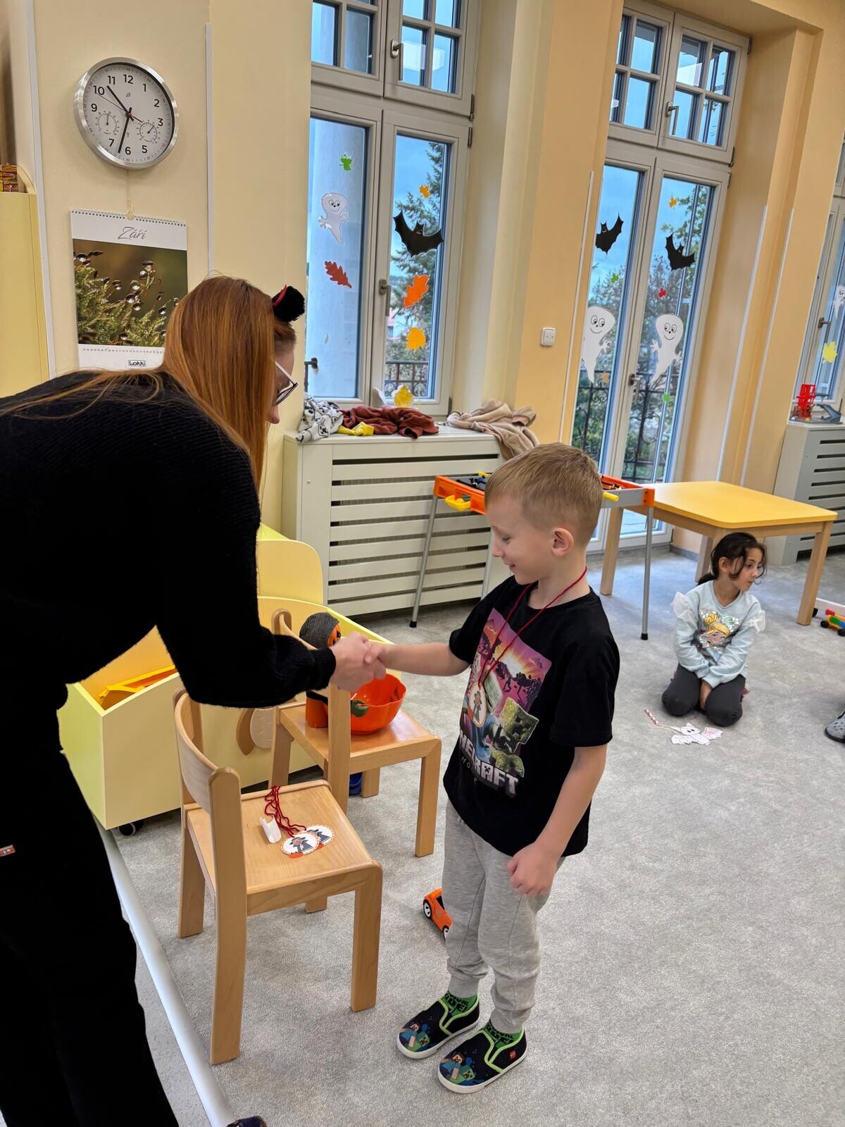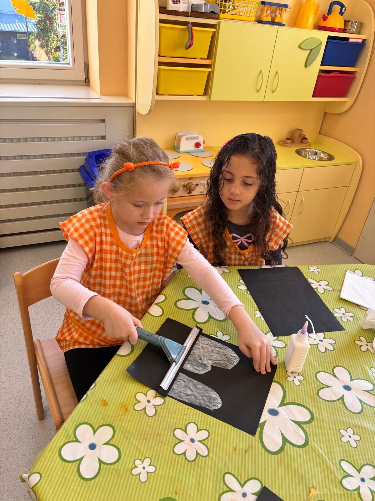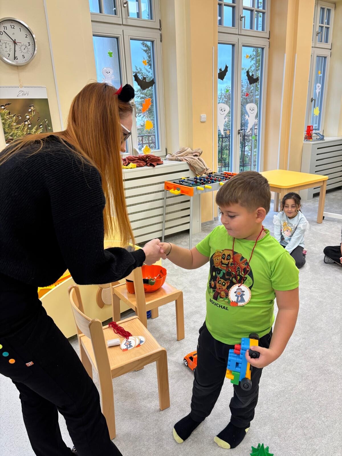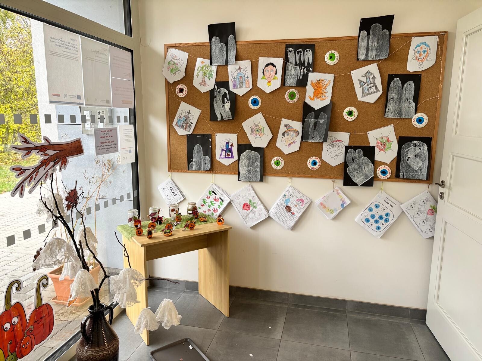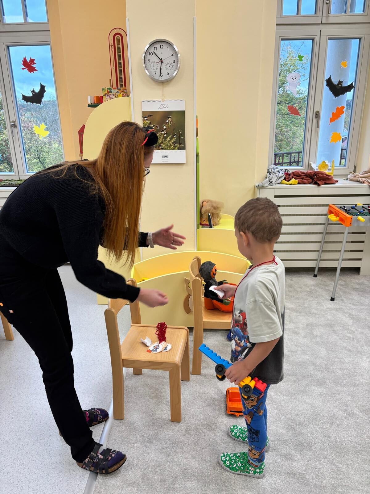 V tomto týdnu jsme se věnovaly tématu Strašidel se nebojíme. Povídali jsme si o Dušičkách i o Halloweenu. Děti si vytvořily dýně z dřevěných odřezků, létajícího papírového netopýra, ducha ze staré záclony, oční bulvu. Pomocí staré okenní stěrky namalovaly děti rodinku duchů, nezapomněli jsme ani na dlabání dýně a celý týden hrály děti hru Dýňový detektiv. Každý den hledaly děti 30 ztracených dýní, každý nálezce dýně si mohl vzít odměnu ze strašidelné misky a na konci týdne dostali všichni medaile Dýňový detektiv. Naučili jsme se také písničku Strašidla nebo básničku Dýně.