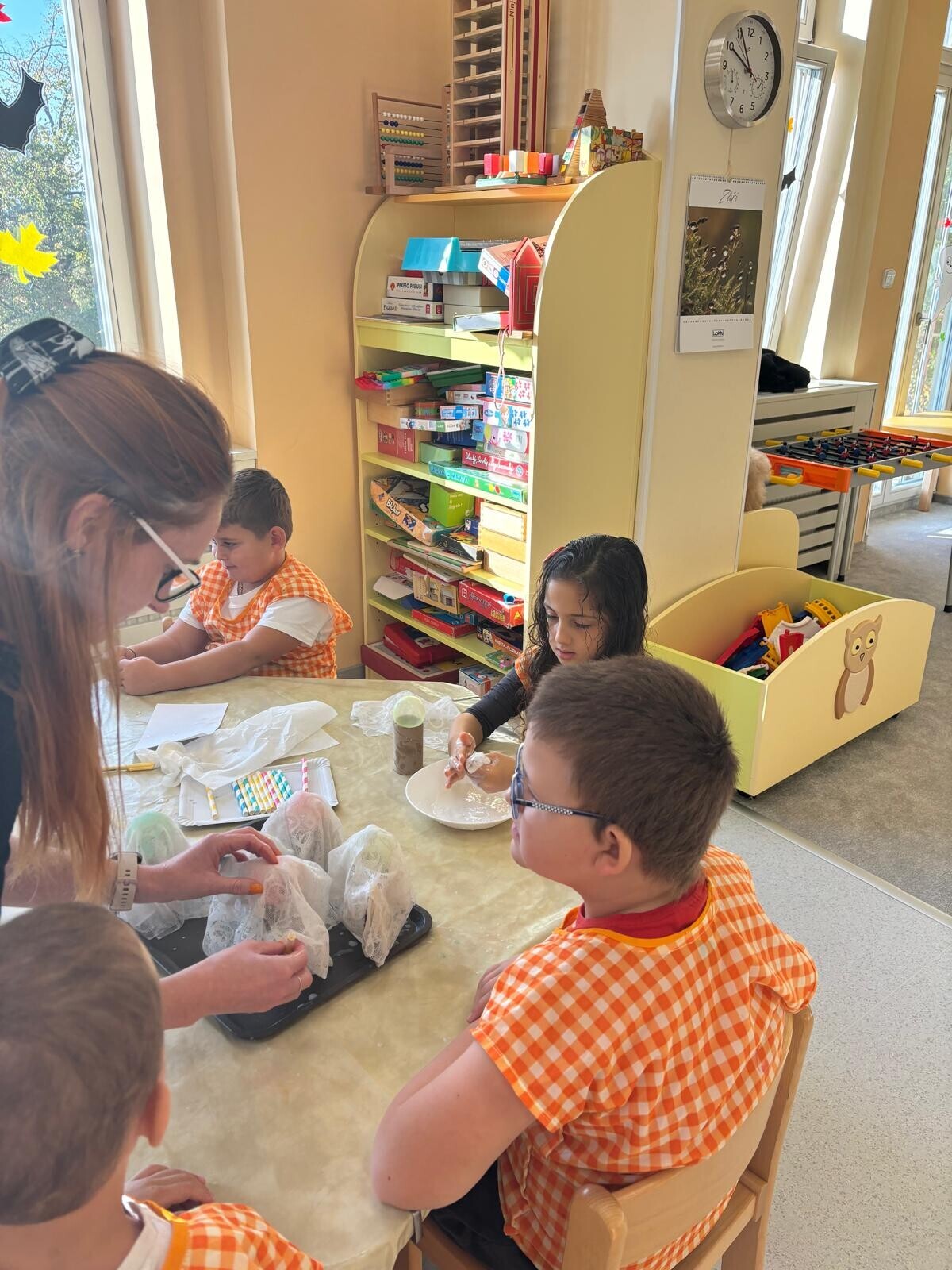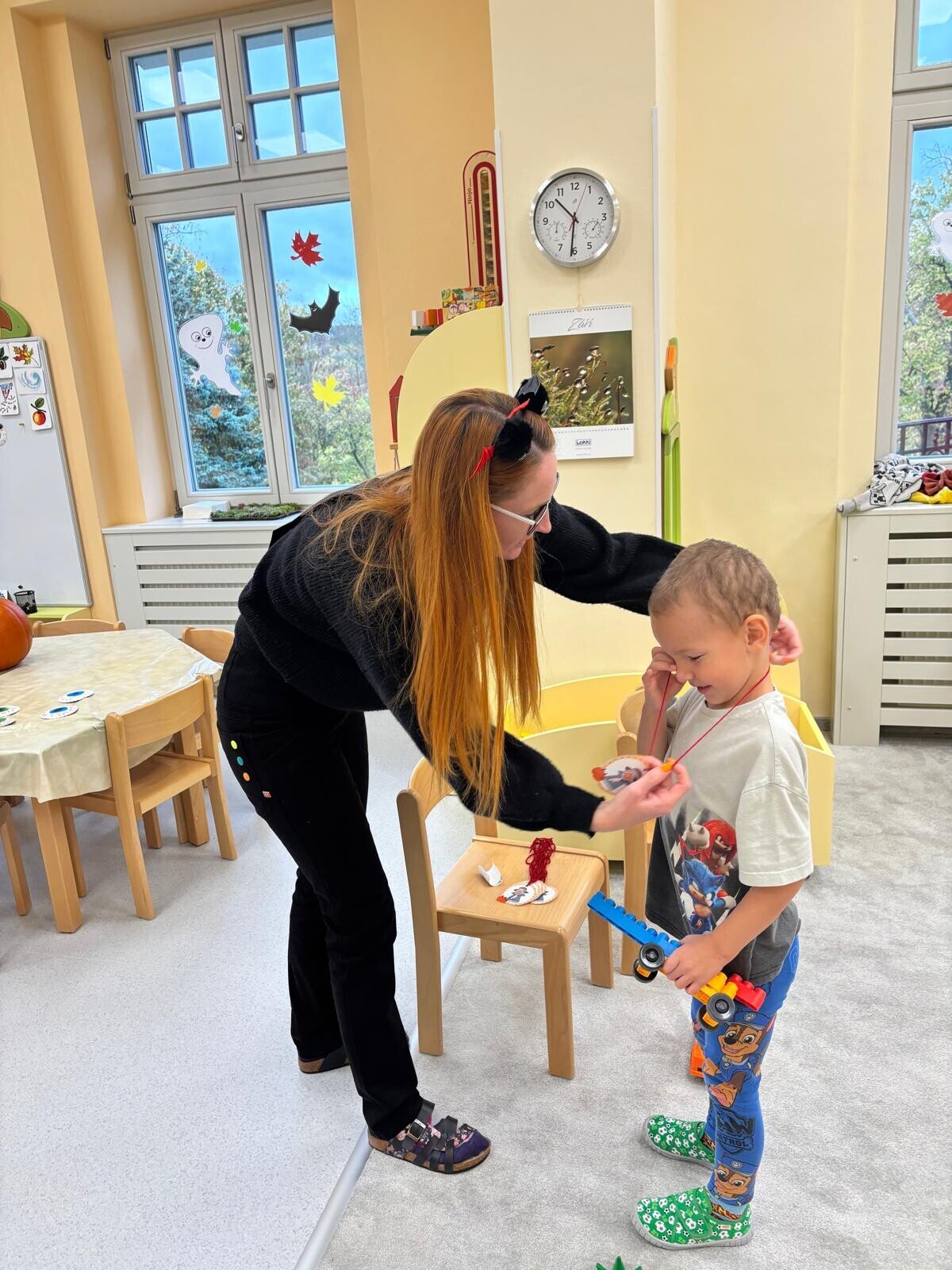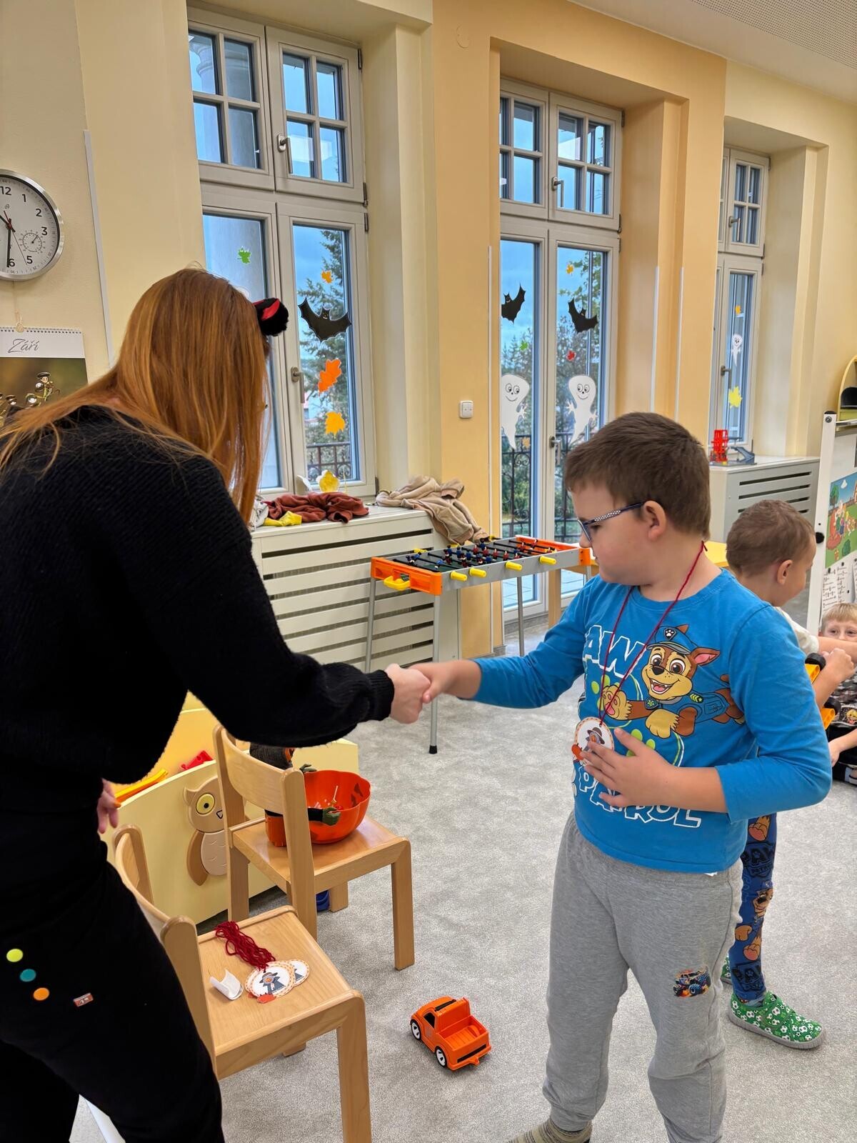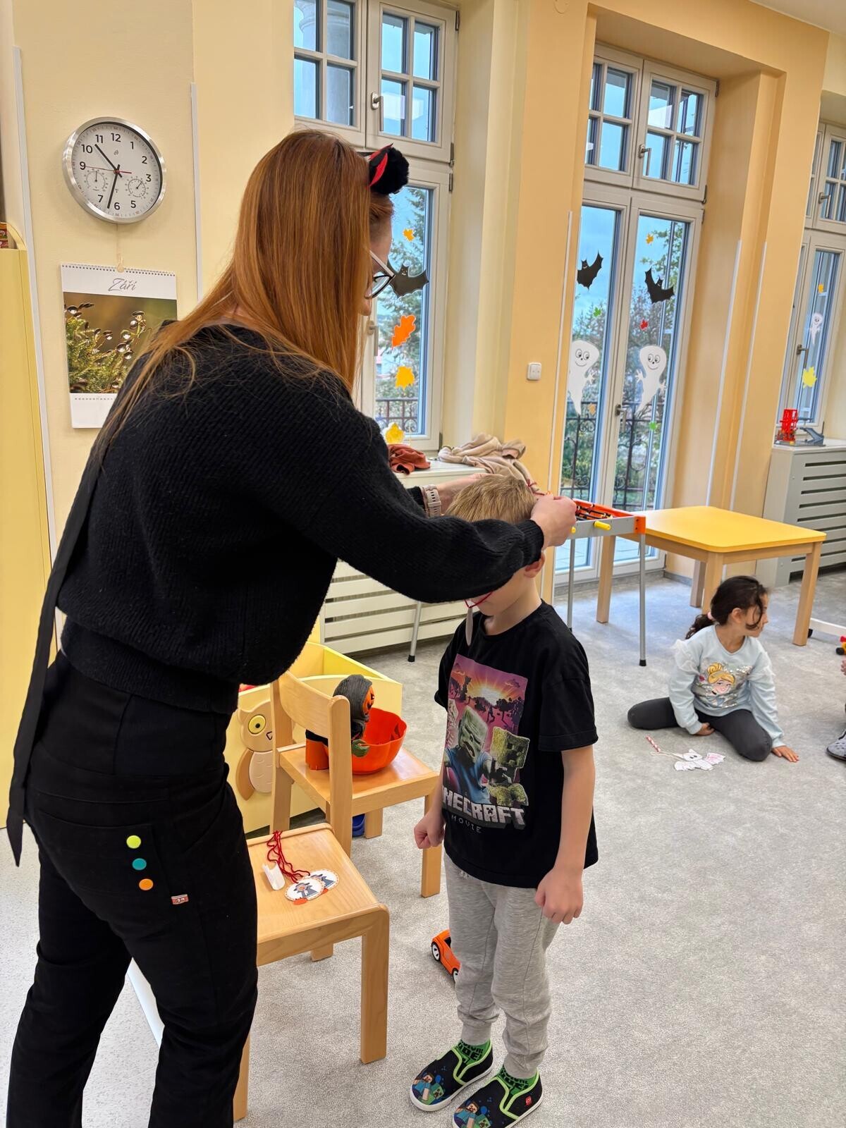 V tomto týdnu jsme se věnovaly tématu Strašidel se nebojíme. Povídali jsme si o Dušičkách i o Halloweenu. Děti si vytvořily dýně z dřevěných odřezků, létajícího papírového netopýra, ducha ze staré záclony, oční bulvu. Pomocí staré okenní stěrky namalovaly děti rodinku duchů, nezapomněli jsme ani na dlabání dýně a celý týden hrály děti hru Dýňový detektiv. Každý den hledaly děti 30 ztracených dýní, každý nálezce dýně si mohl vzít odměnu ze strašidelné misky a na konci týdne dostali všichni medaile Dýňový detektiv. Naučili jsme se také písničku Strašidla nebo básničku Dýně.