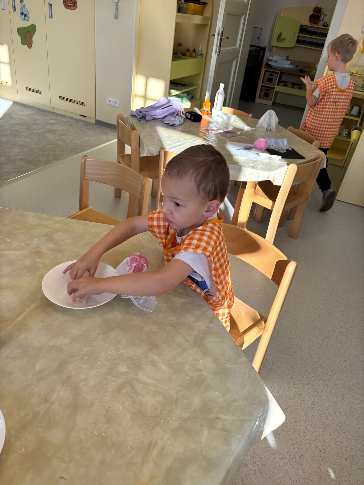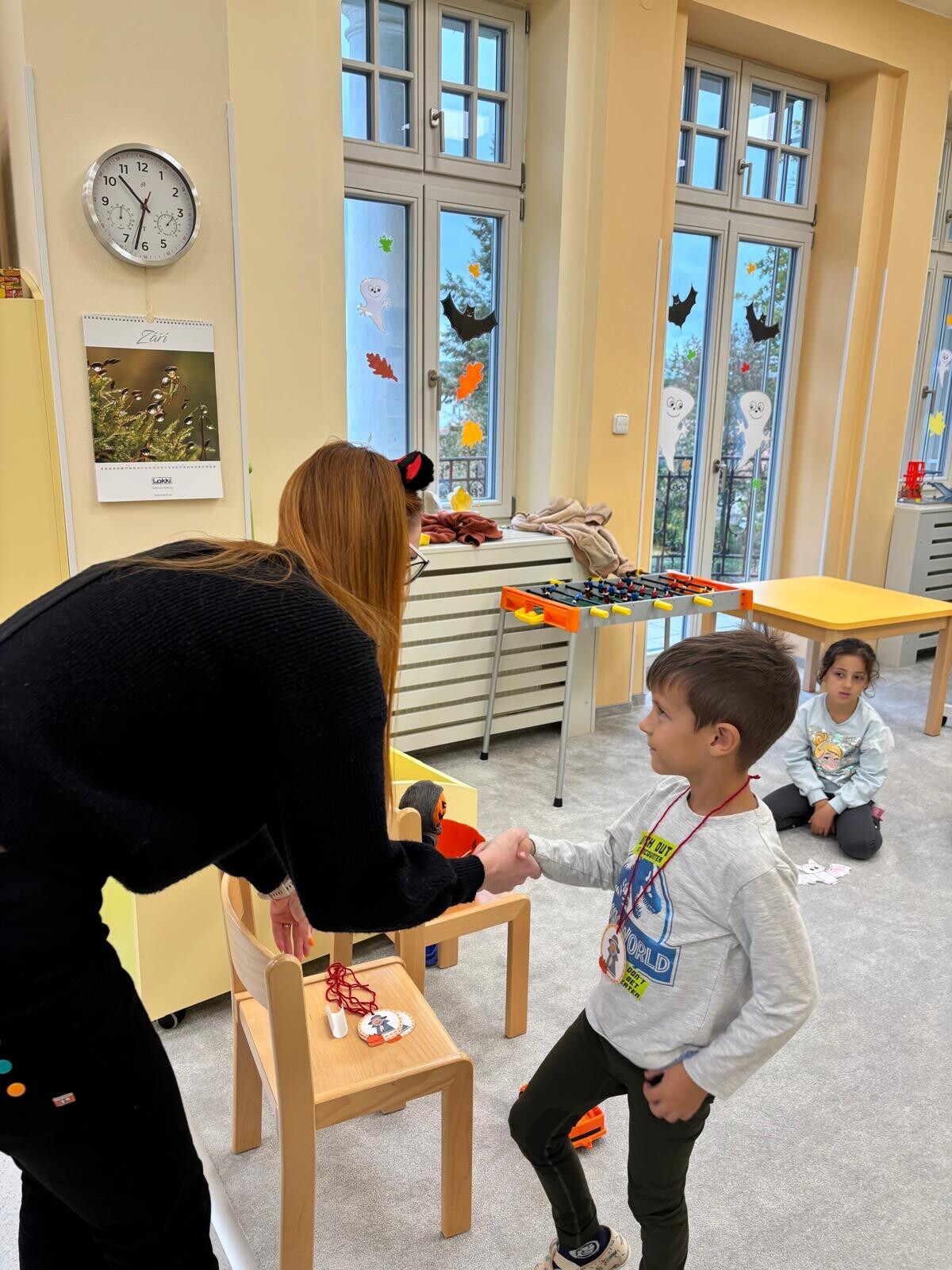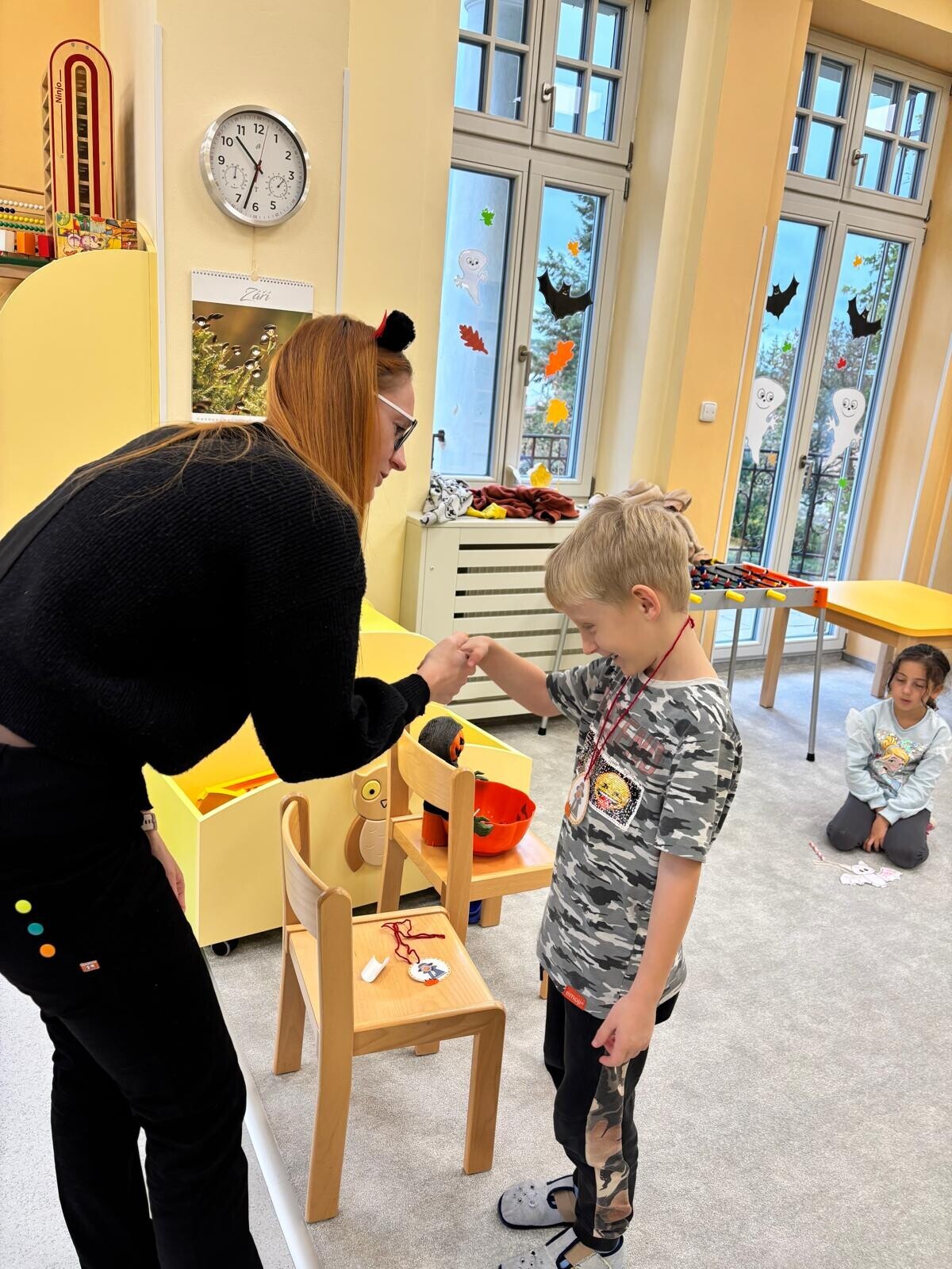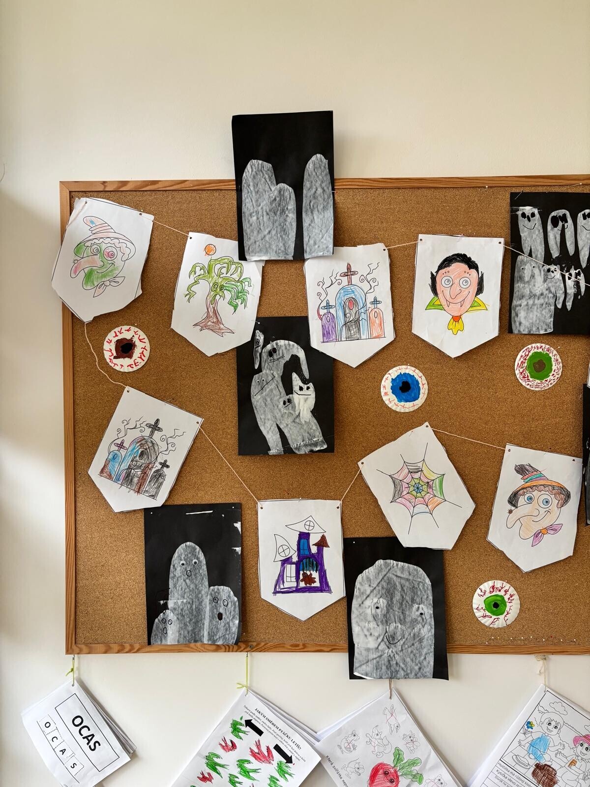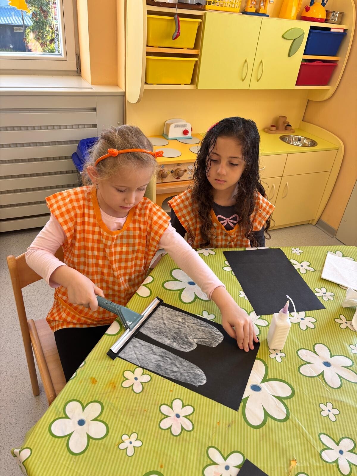 V tomto týdnu jsme se věnovaly tématu Strašidel se nebojíme. Povídali jsme si o Dušičkách i o Halloweenu. Děti si vytvořily dýně z dřevěných odřezků, létajícího papírového netopýra, ducha ze staré záclony, oční bulvu. Pomocí staré okenní stěrky namalovaly děti rodinku duchů, nezapomněli jsme ani na dlabání dýně a celý týden hrály děti hru Dýňový detektiv. Každý den hledaly děti 30 ztracených dýní, každý nálezce dýně si mohl vzít odměnu ze strašidelné misky a na konci týdne dostali všichni medaile Dýňový detektiv. Naučili jsme se také písničku Strašidla nebo básničku Dýně.