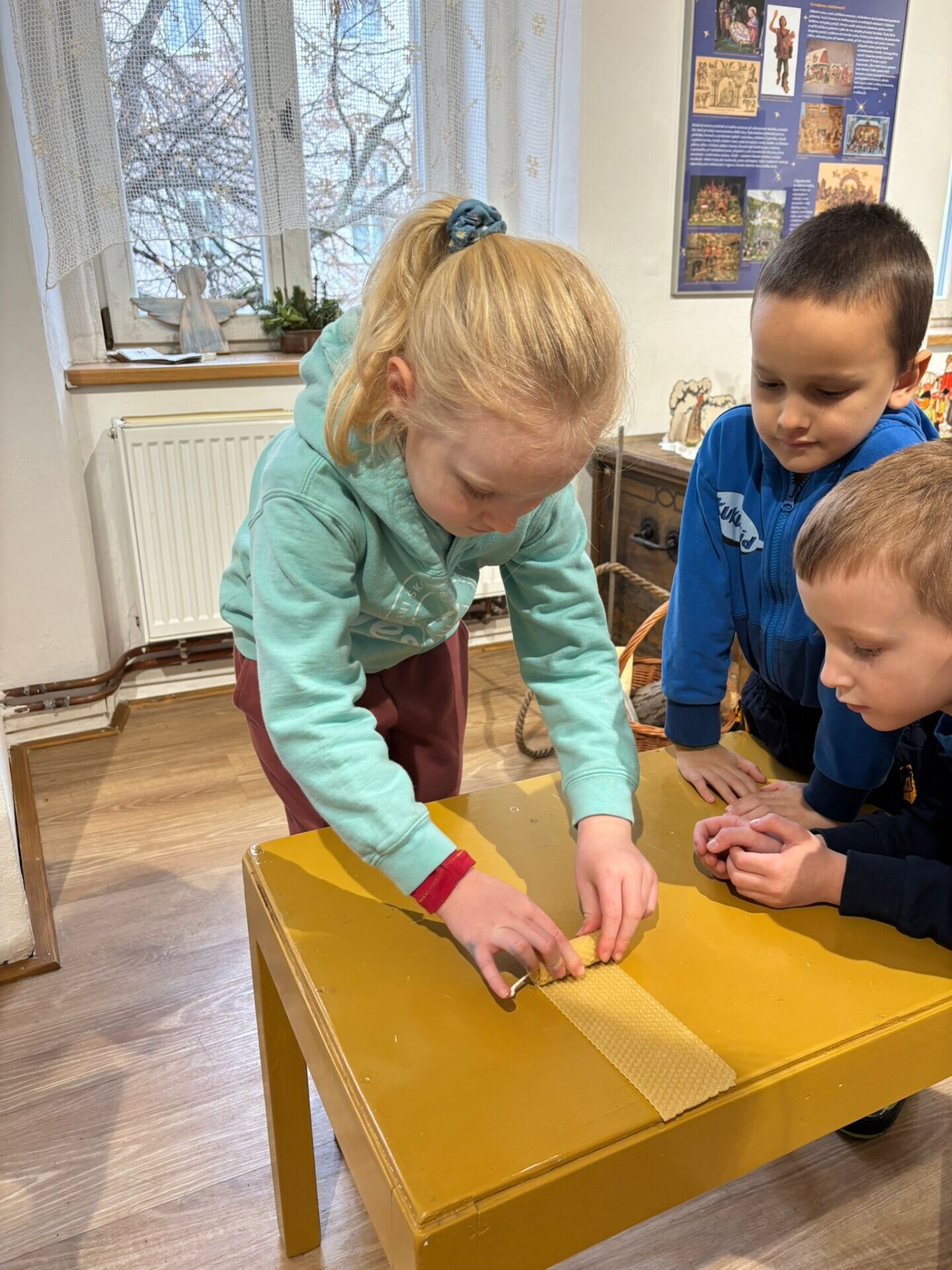 9. prosince 2025 jsme se vydali do muzea Jesenice, kde jsme se dozvěděli něco o staročeských vánočních tradicích. Prošli jsme si muzeum a vyrobili svíčku ze včelího vosku.