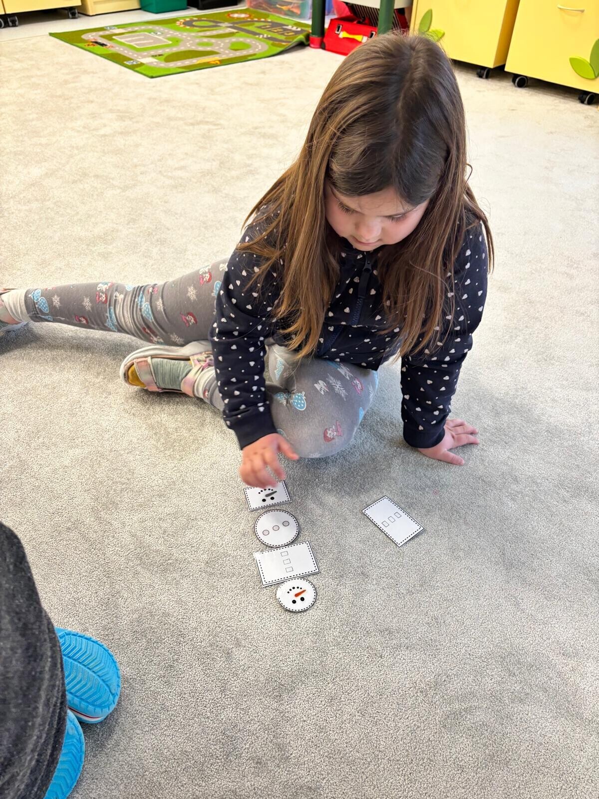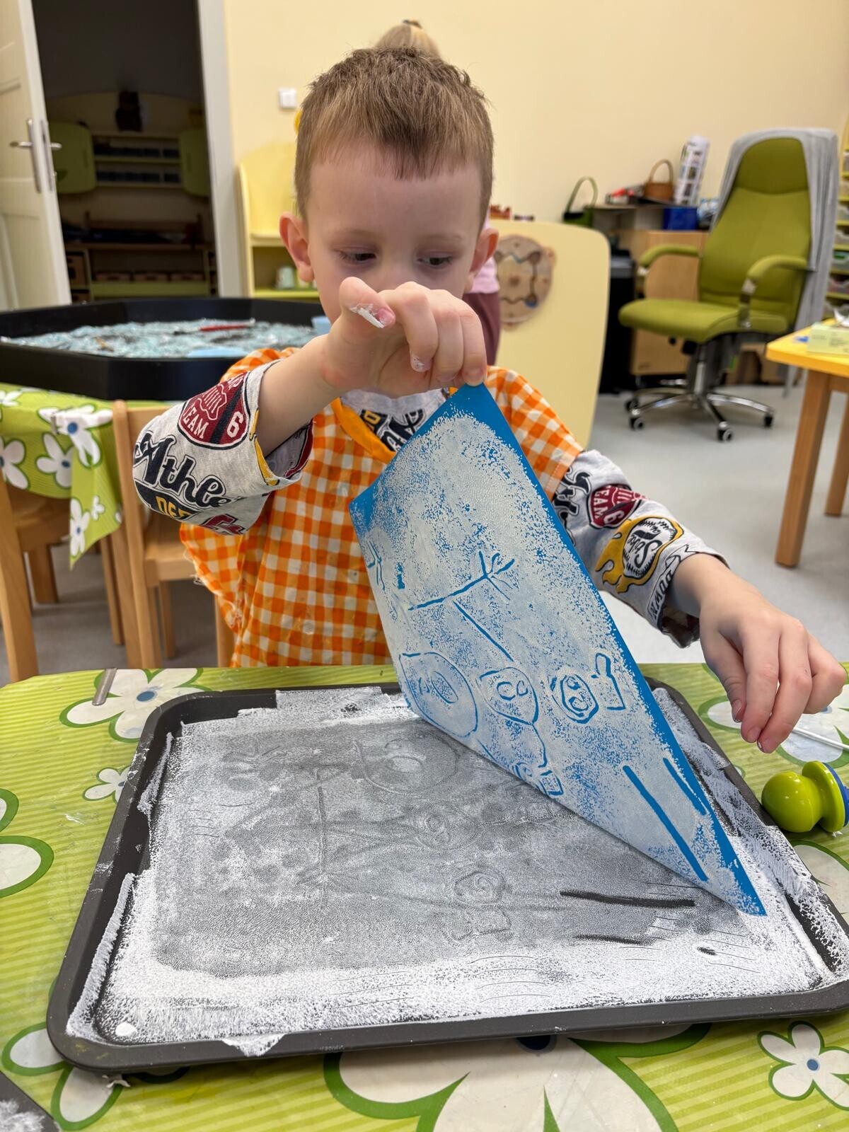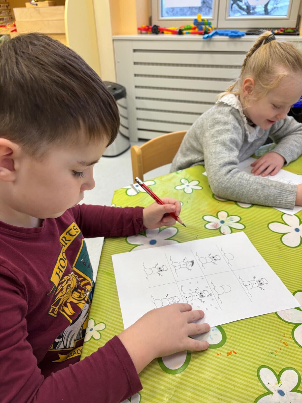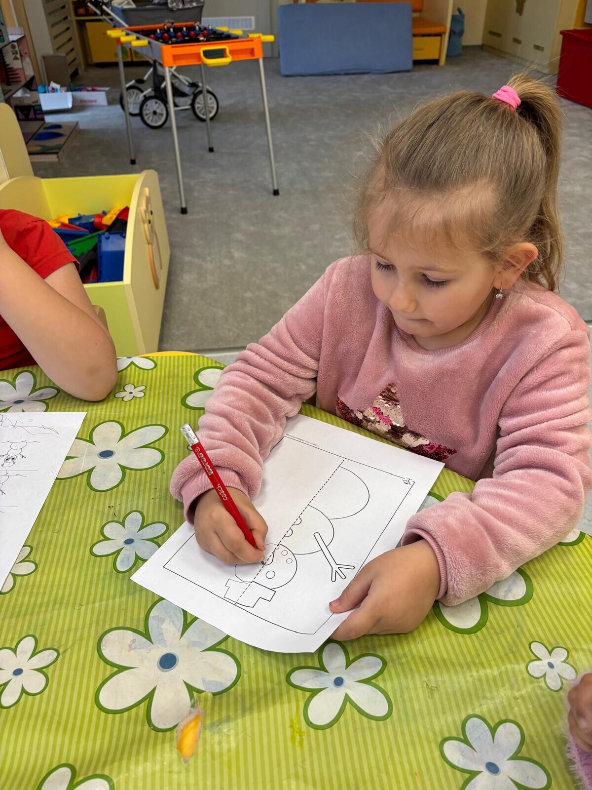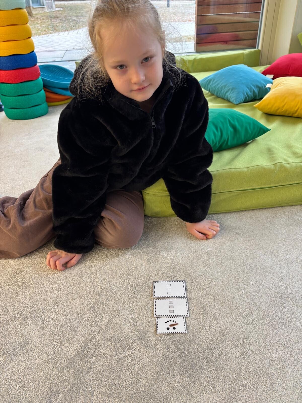 Tento týden si děti povídaly o tom, jaká máme roční období a proč se vlastně střídají. Dozvěděly se něco málo o rotaci Zeměkoule kolem Slunce a na planetu Zemi si i zahrály. Procvičily si osovou souměrnost, dech nebo i geometrické tvary, při navlékání korálků pak třeba jemnou motoriku. Pomocí obtisku pak namalovaly krásné sněhuláky. Naučily se i básničku a písničku k danému tématu.