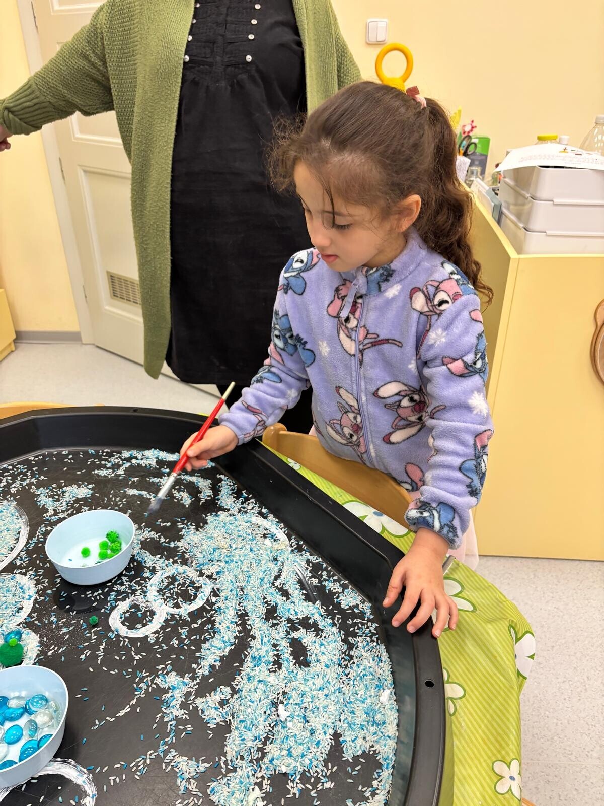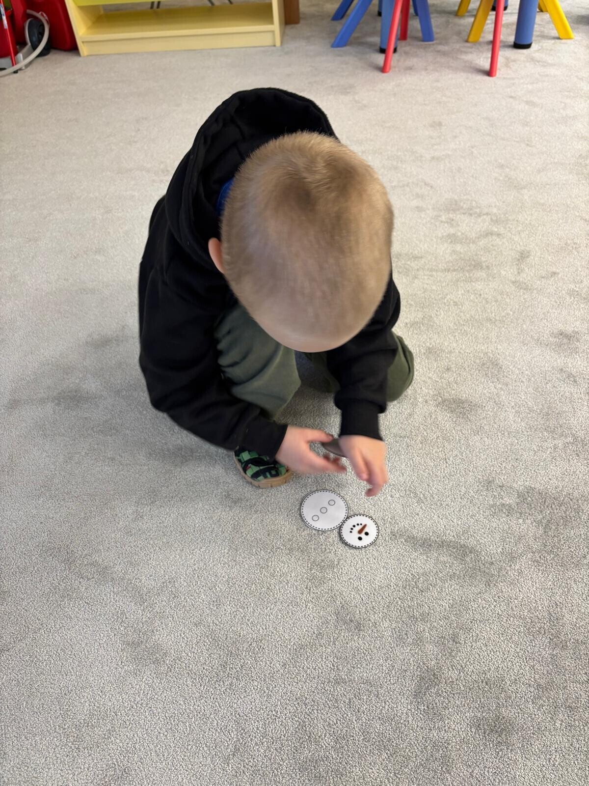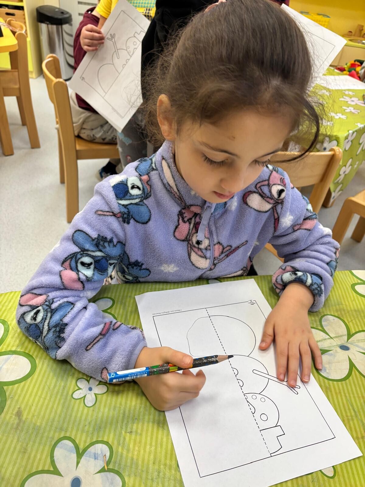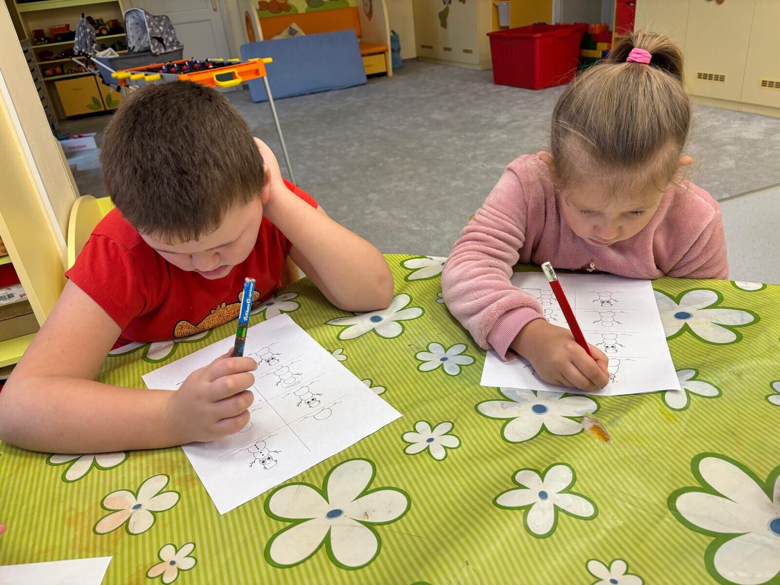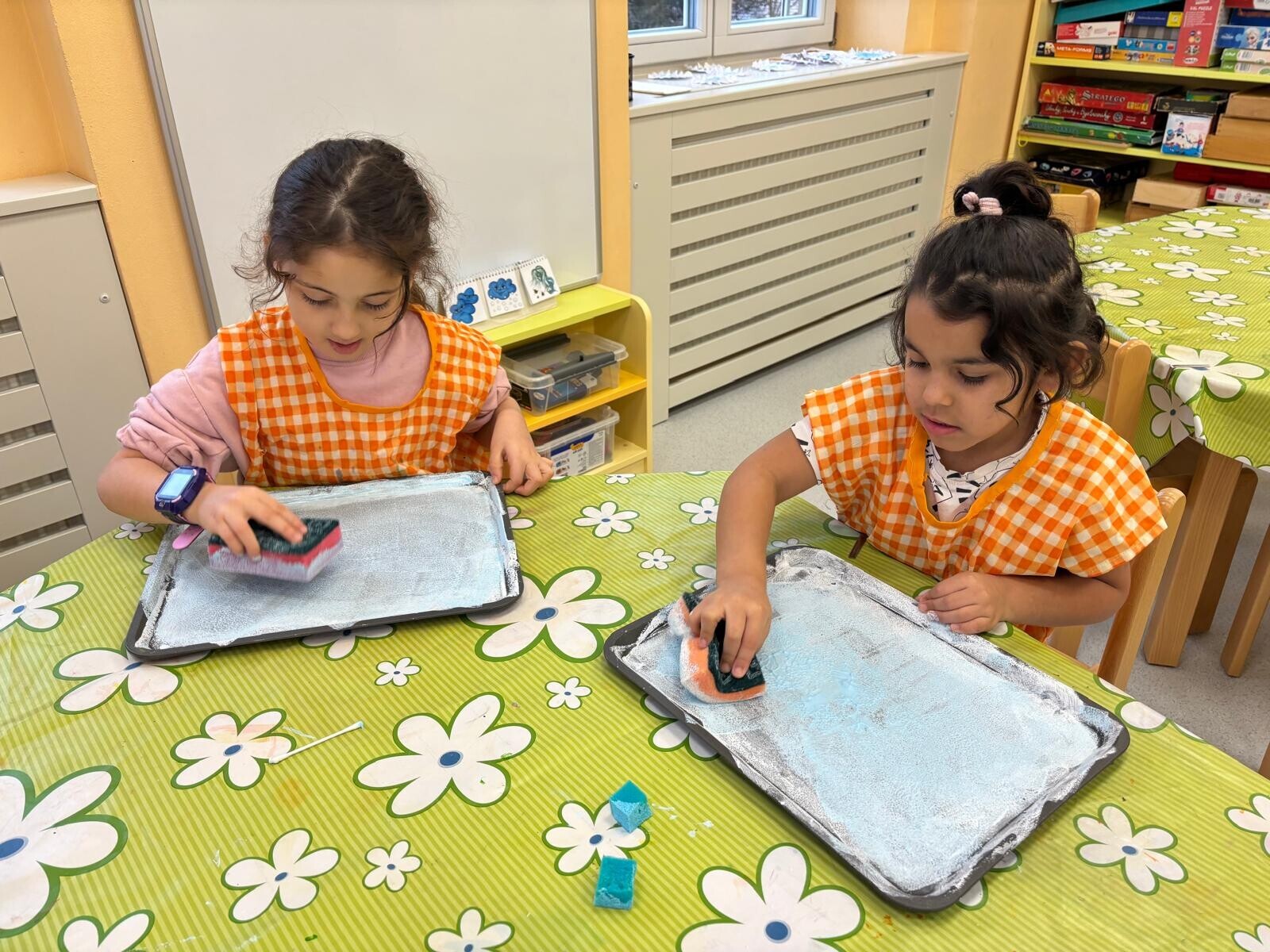 Tento týden si děti povídaly o tom, jaká máme roční období a proč se vlastně střídají. Dozvěděly se něco málo o rotaci Zeměkoule kolem Slunce a na planetu Zemi si i zahrály. Procvičily si osovou souměrnost, dech nebo i geometrické tvary, při navlékání korálků pak třeba jemnou motoriku. Pomocí obtisku pak namalovaly krásné sněhuláky. Naučily se i básničku a písničku k danému tématu.