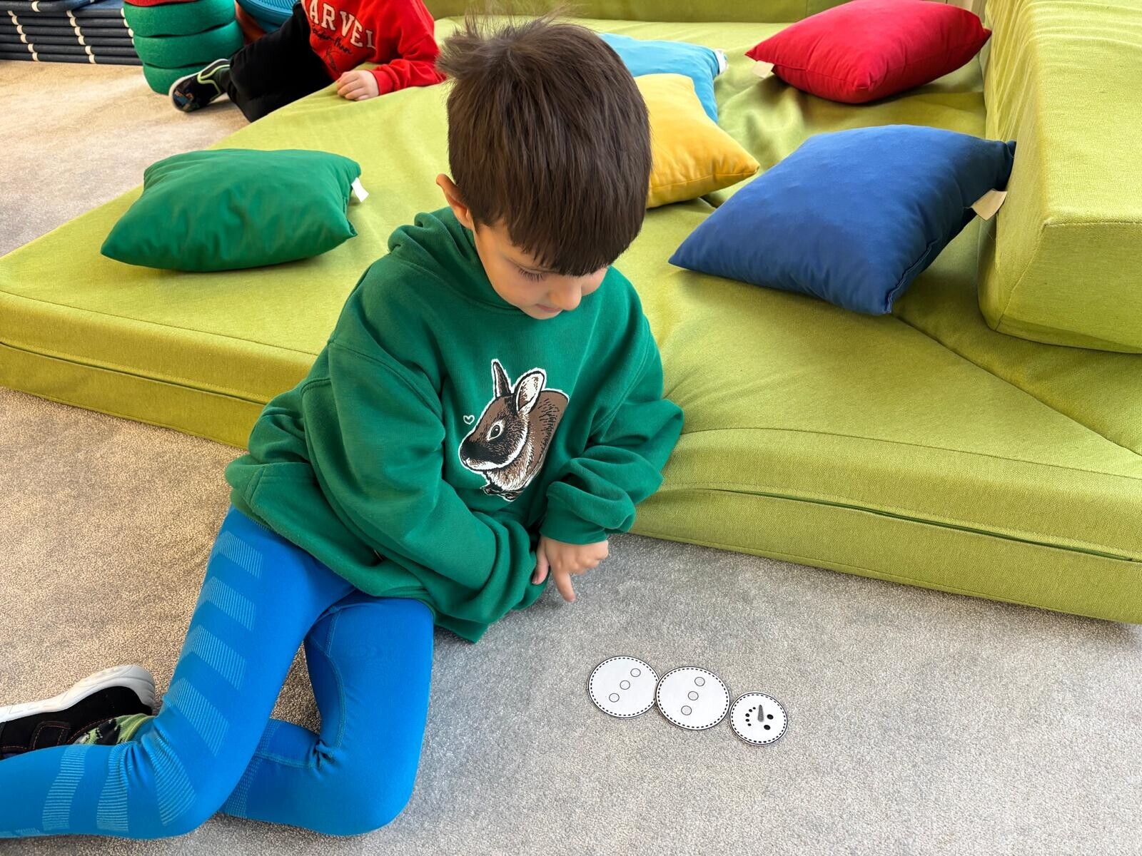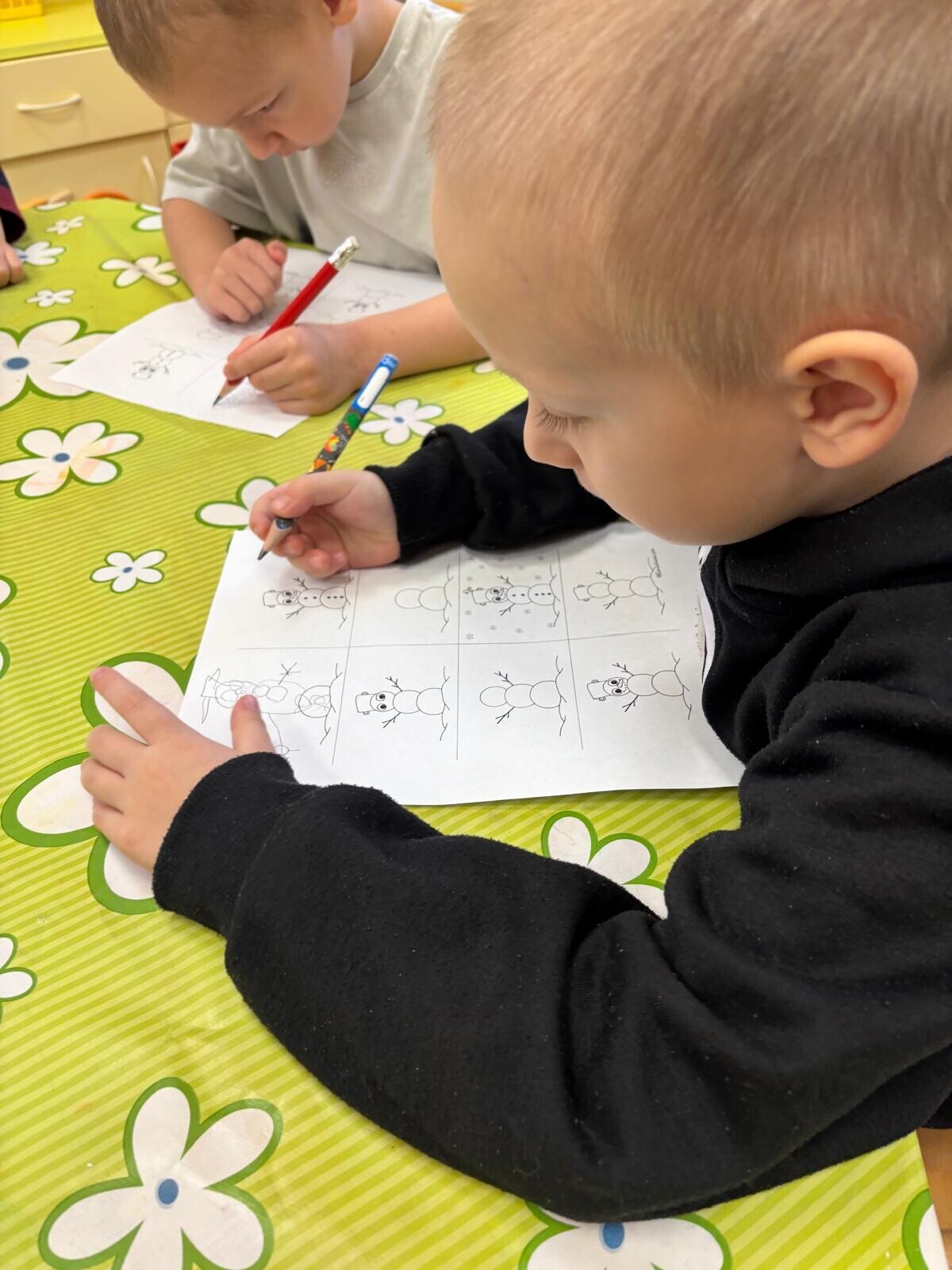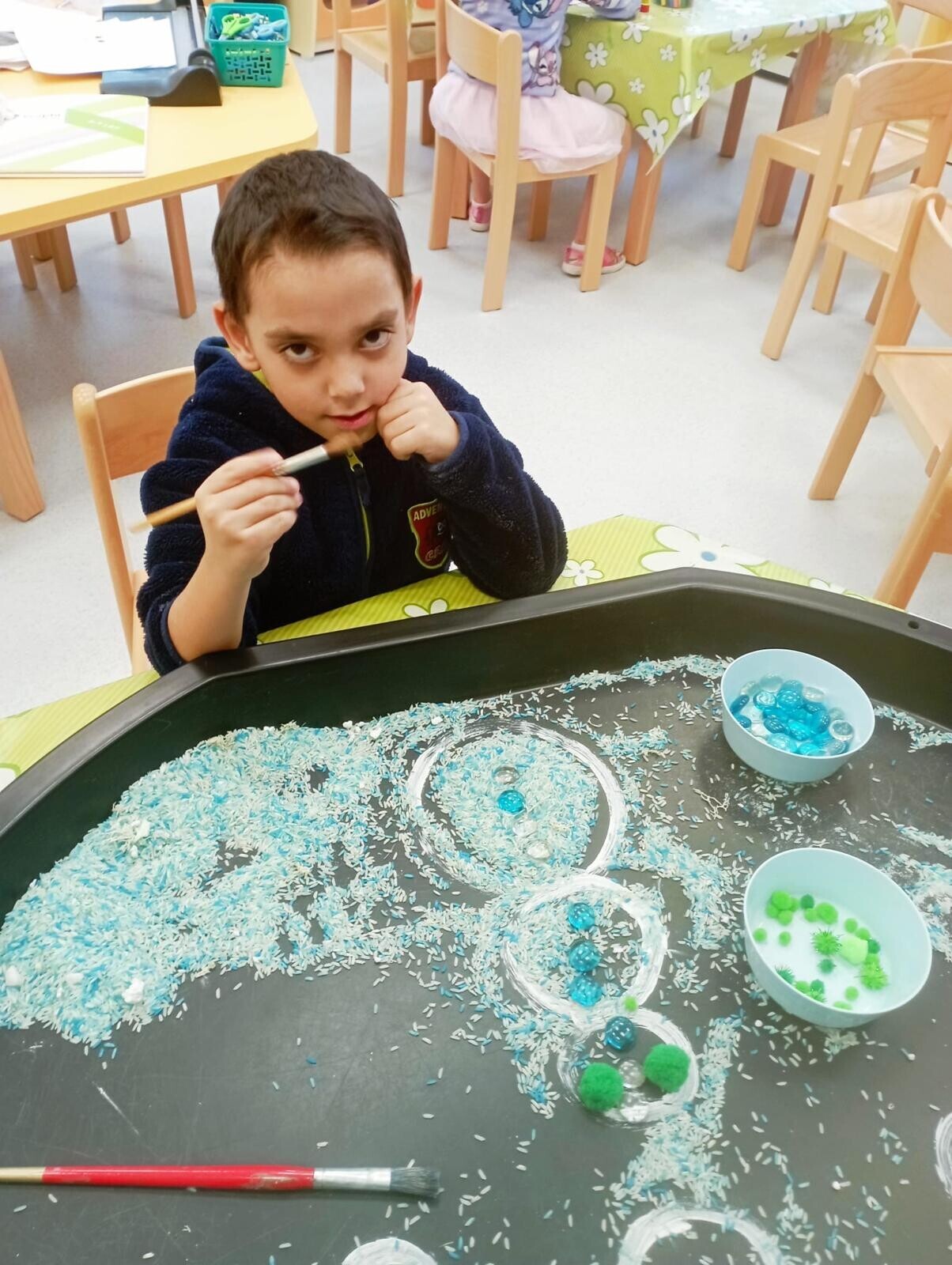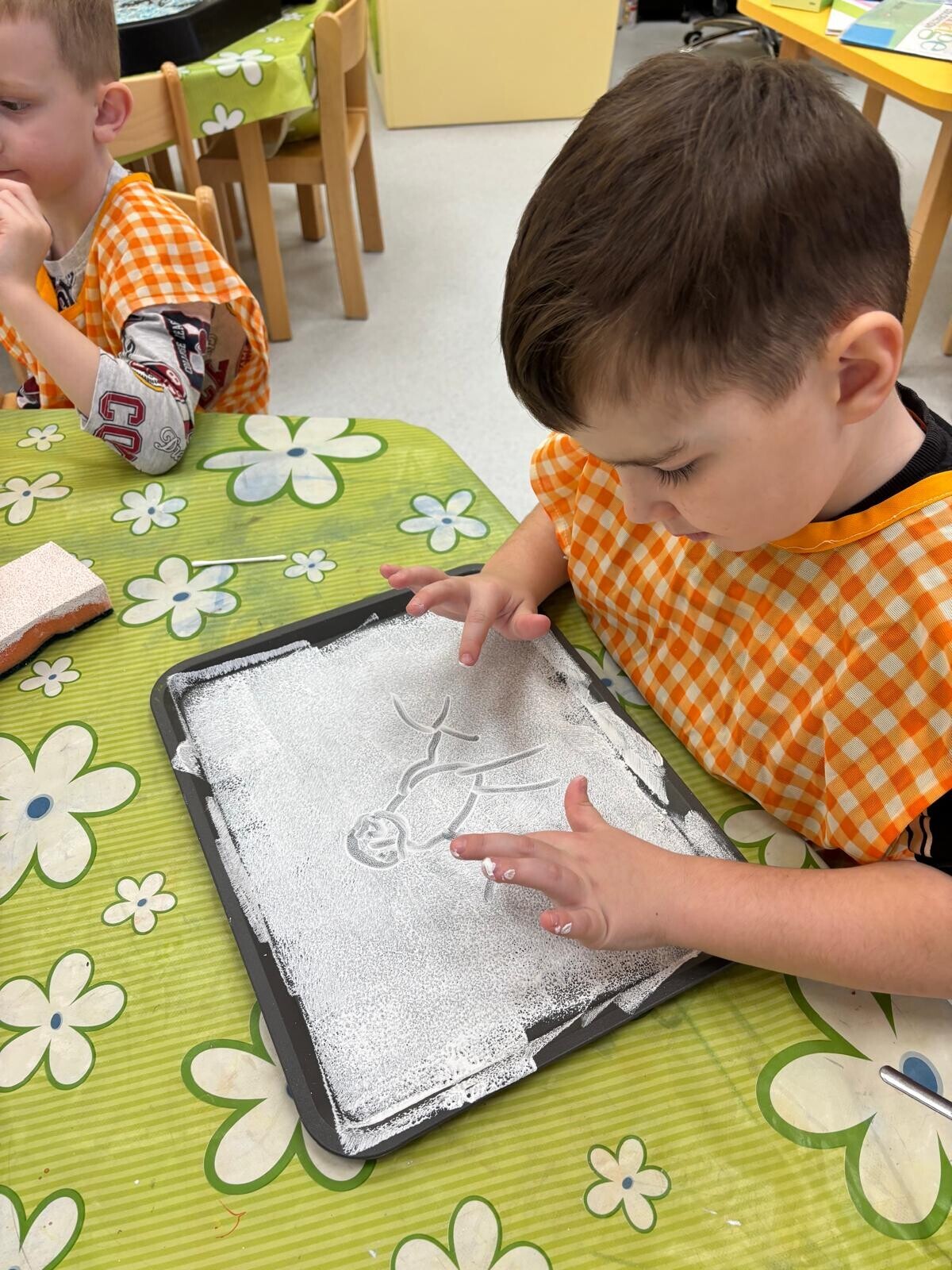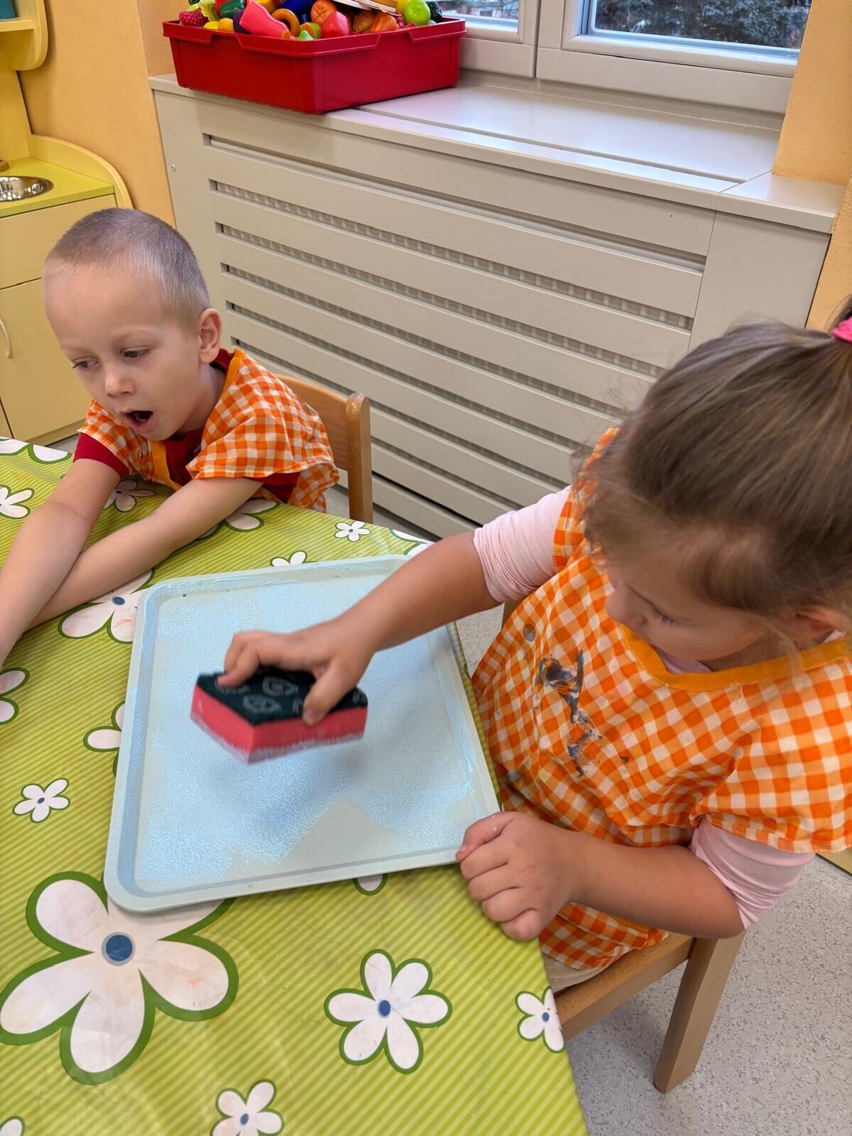 Tento týden si děti povídaly o tom, jaká máme roční období a proč se vlastně střídají. Dozvěděly se něco málo o rotaci Zeměkoule kolem Slunce a na planetu Zemi si i zahrály. Procvičily si osovou souměrnost, dech nebo i geometrické tvary, při navlékání korálků pak třeba jemnou motoriku. Pomocí obtisku pak namalovaly krásné sněhuláky. Naučily se i básničku a písničku k danému tématu.