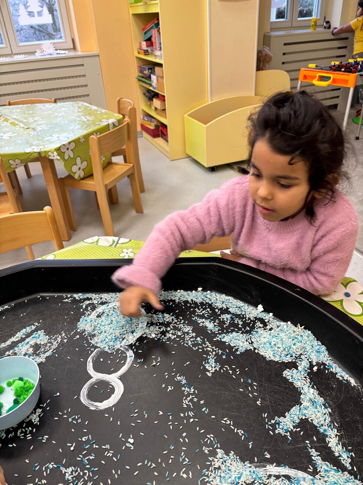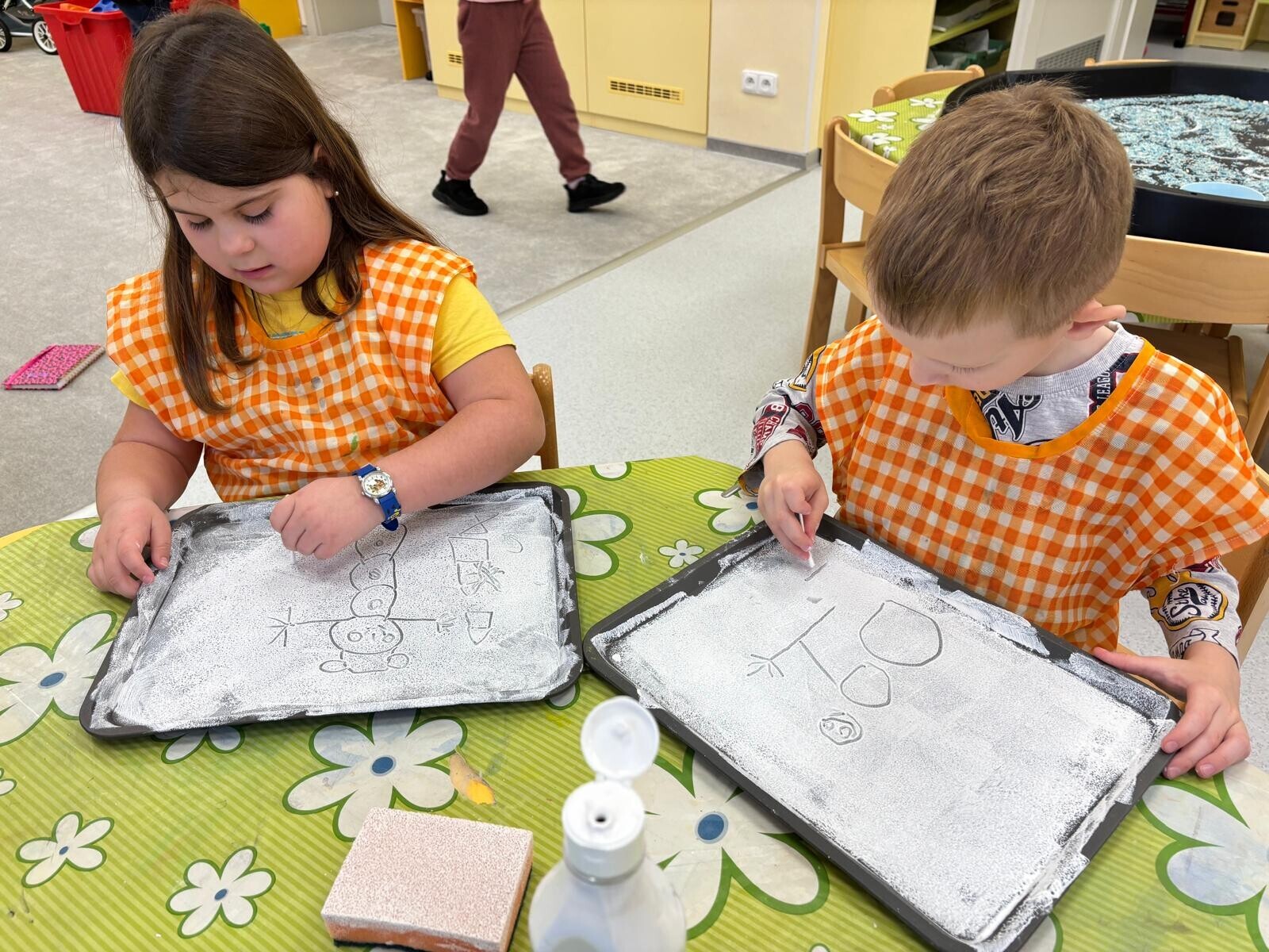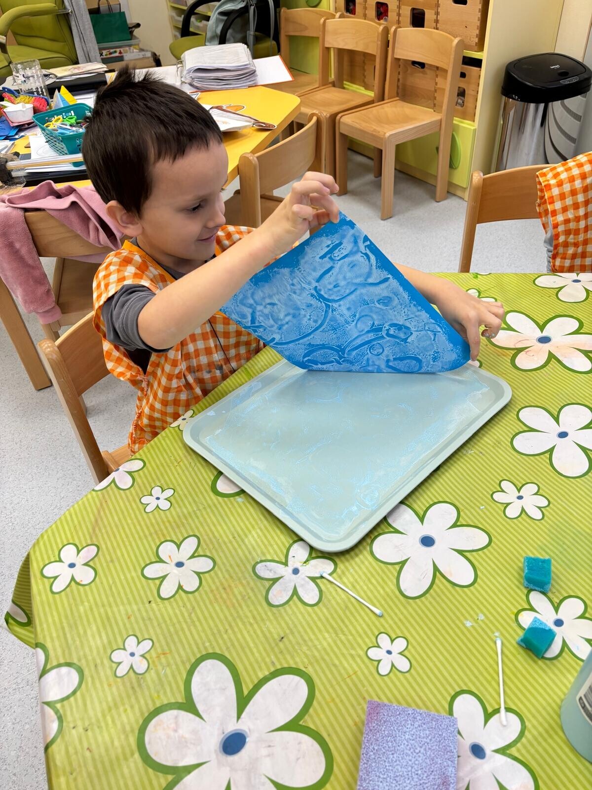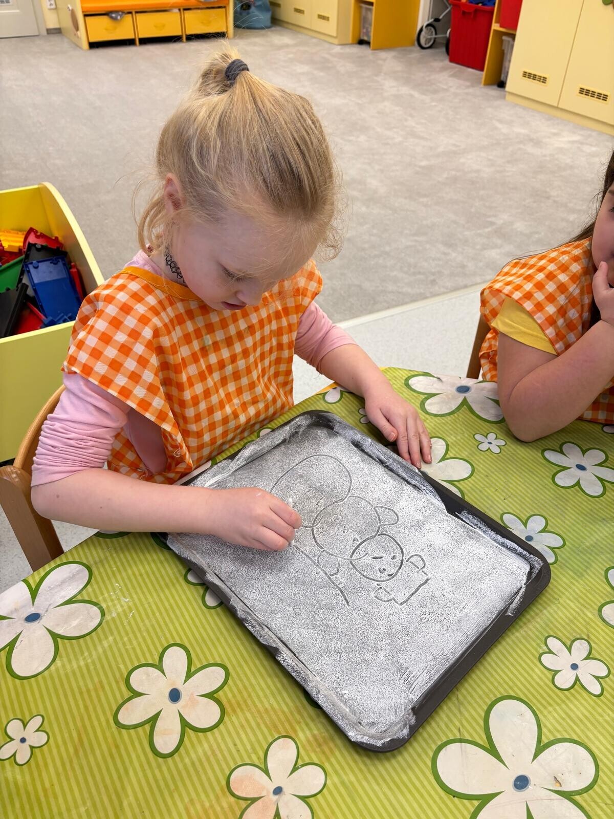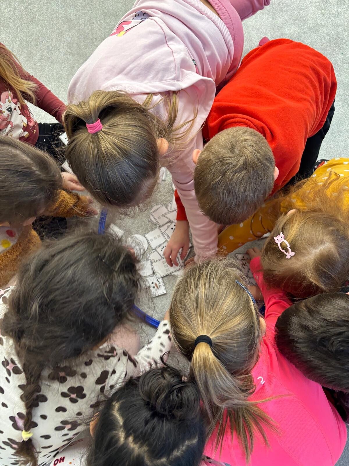 Tento týden si děti povídaly o tom, jaká máme roční období a proč se vlastně střídají. Dozvěděly se něco málo o rotaci Zeměkoule kolem Slunce a na planetu Zemi si i zahrály. Procvičily si osovou souměrnost, dech nebo i geometrické tvary, při navlékání korálků pak třeba jemnou motoriku. Pomocí obtisku pak namalovaly krásné sněhuláky. Naučily se i básničku a písničku k danému tématu.