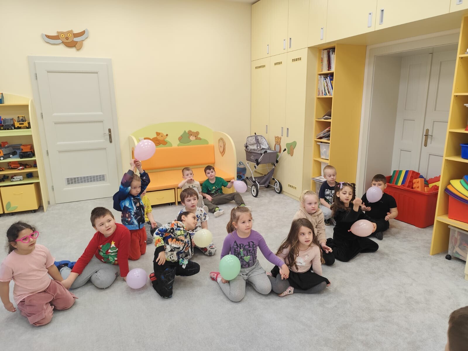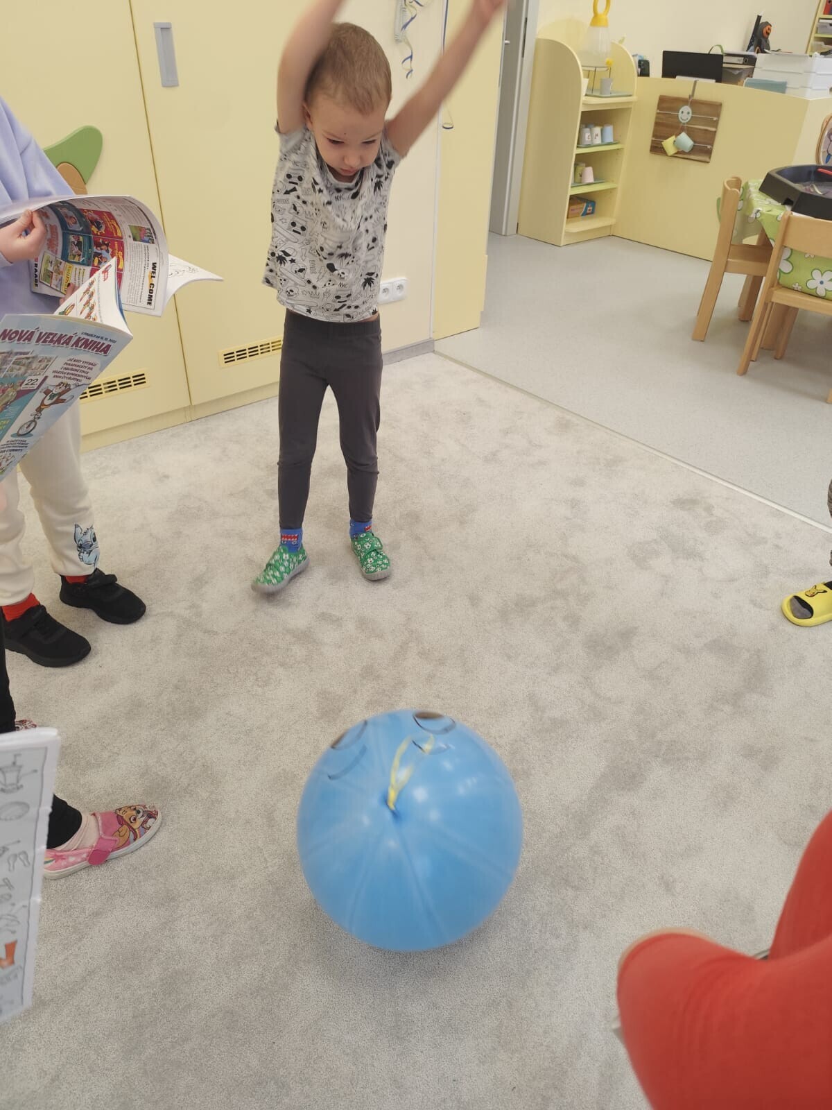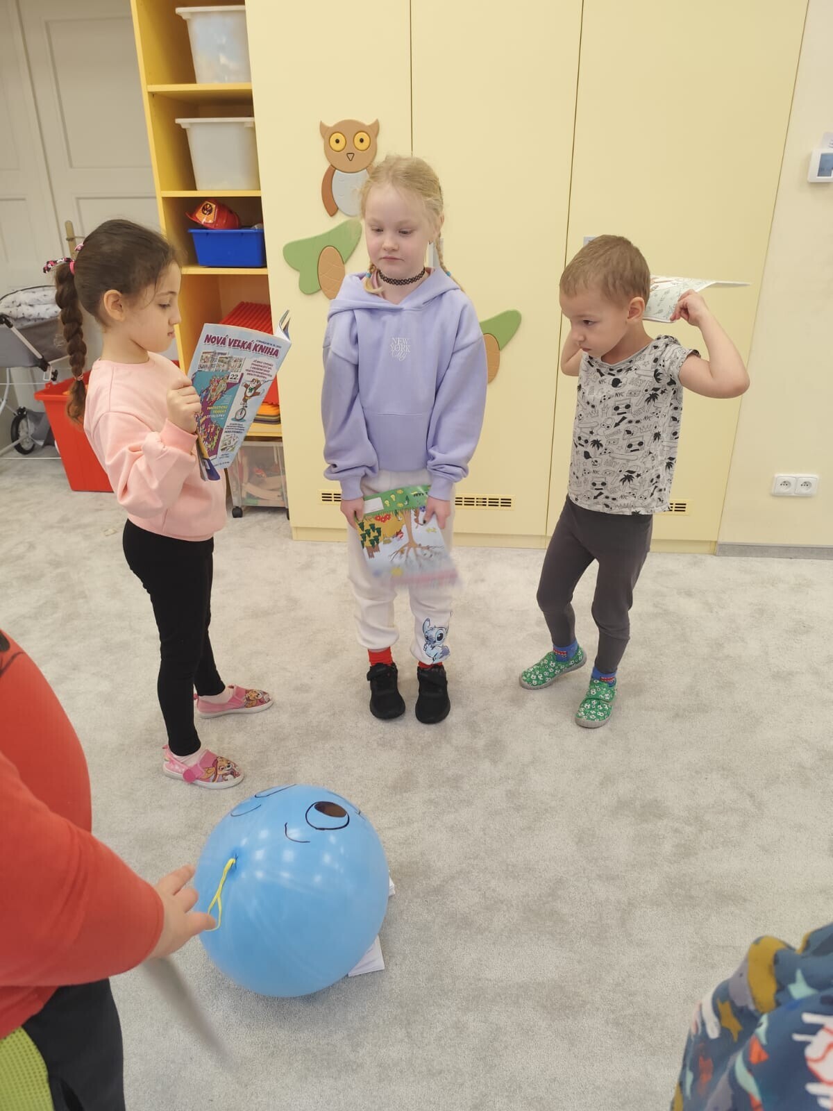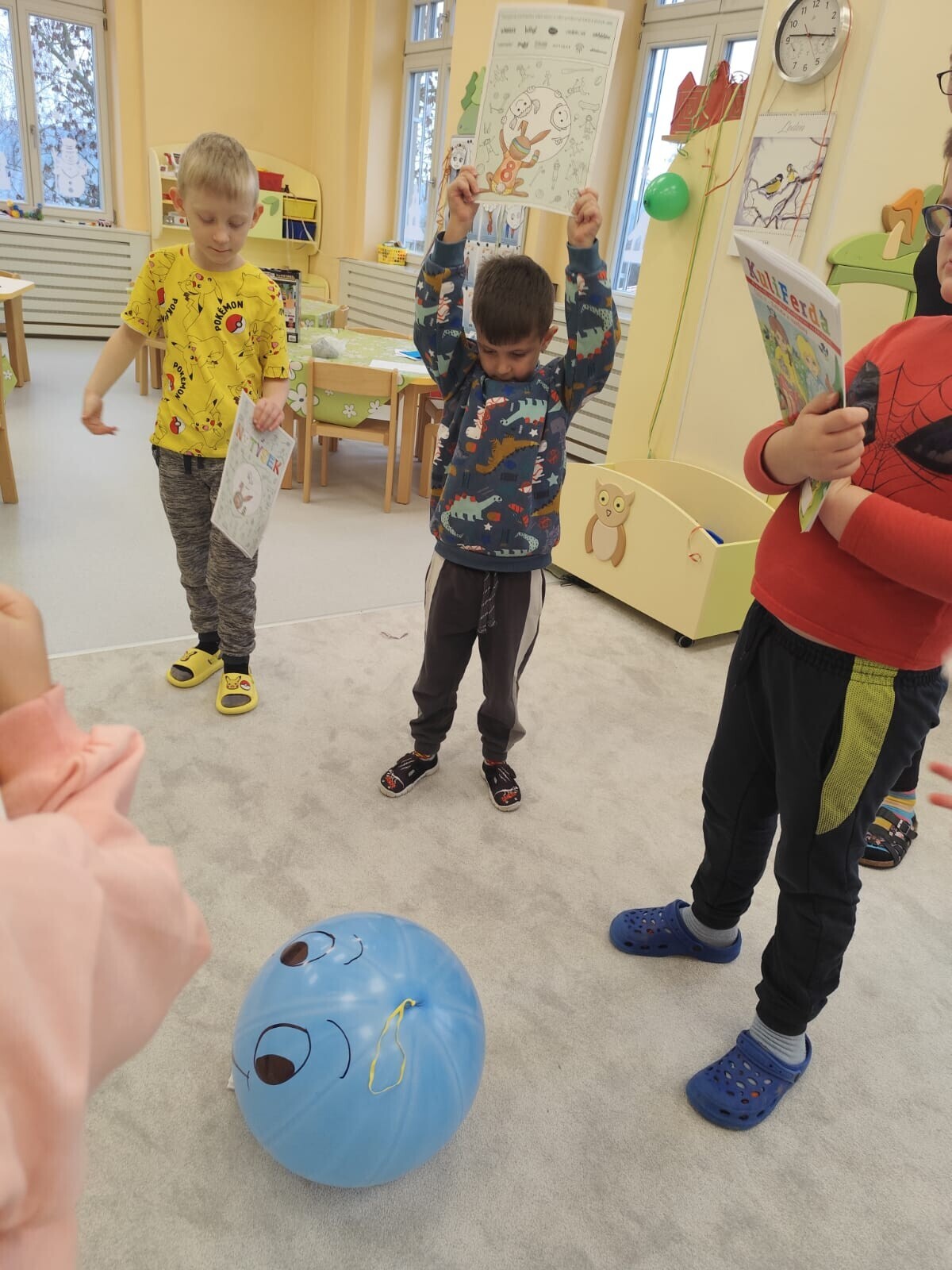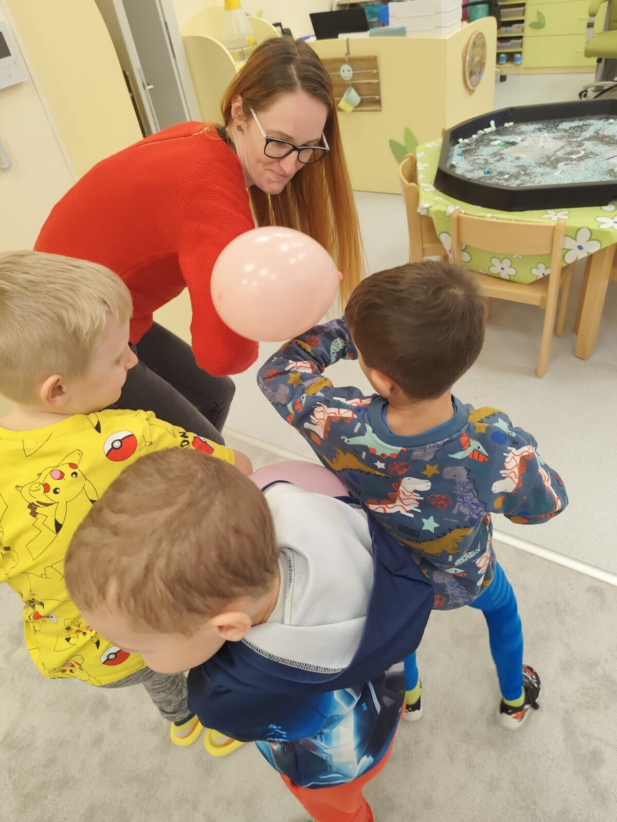Také jsme si procvičili oromotoriku nebo díky několika jazykolamům i jazýček. Opět jsme si rozšiřovali vlastní kapacitu plic dechovými cvičeními, zahráli si hru Na medvěda nebo si zacvičili s padákem. Určitě jsme nemohli zapomenout na novou písničku či básničku, cviky na uvolnění ruky, procvičení jemné motoriky, hrubé motoriky, oka x ruky. Pokoušeli jsme se pomocí větru rozpohybovat pana Balónka nebo "koblížka" a spoustu dalších zajímavých a zábavných činností.