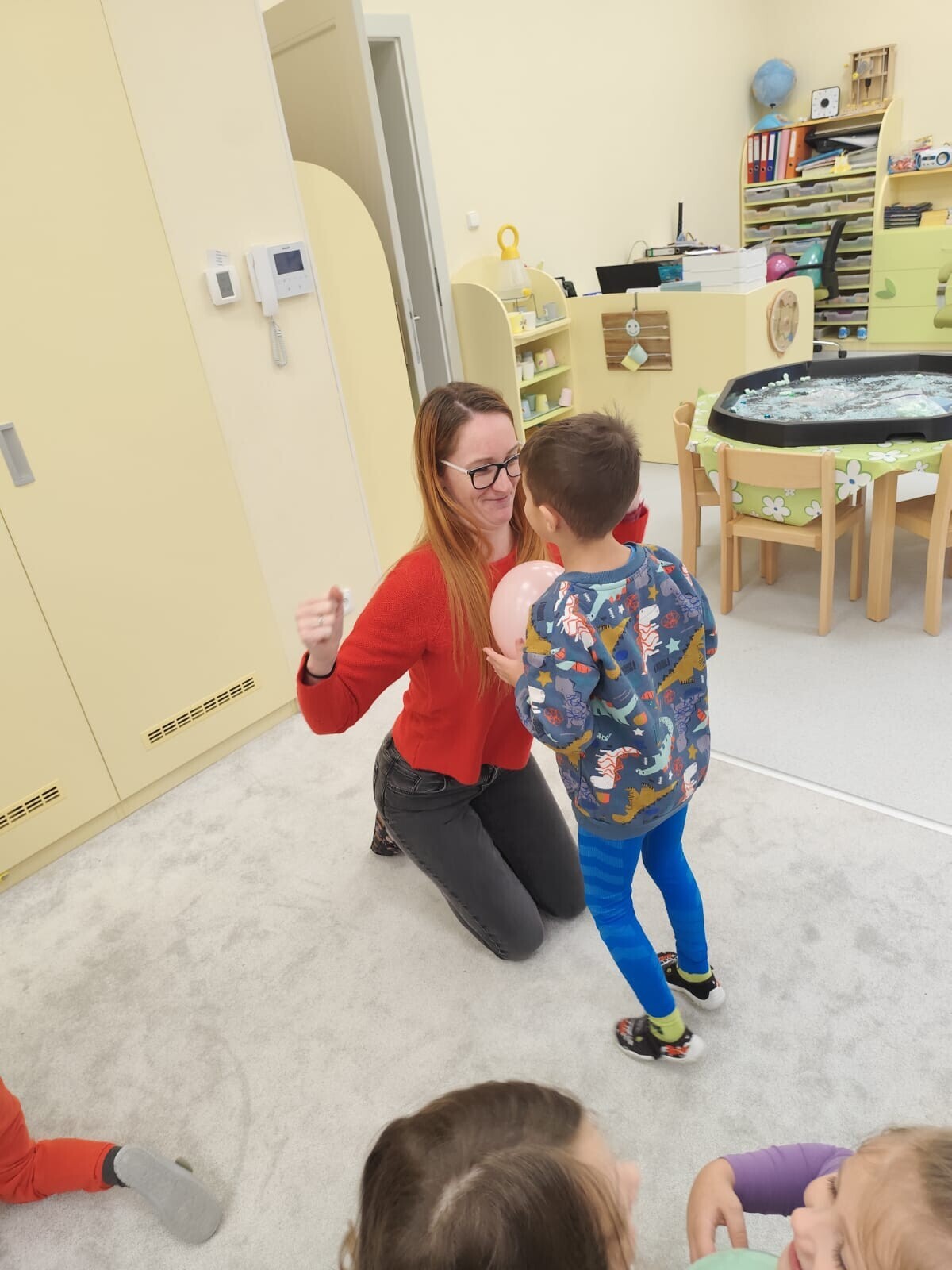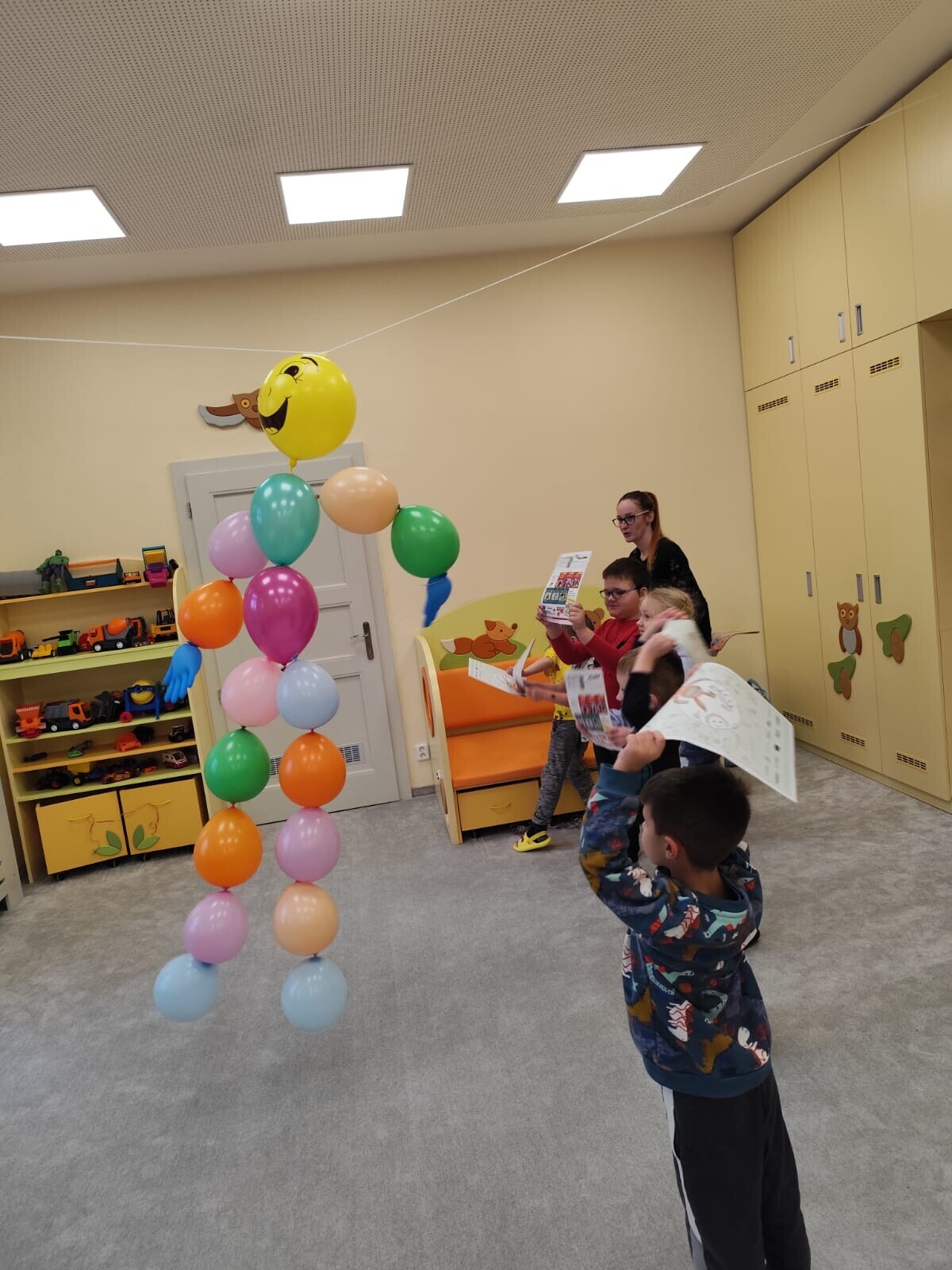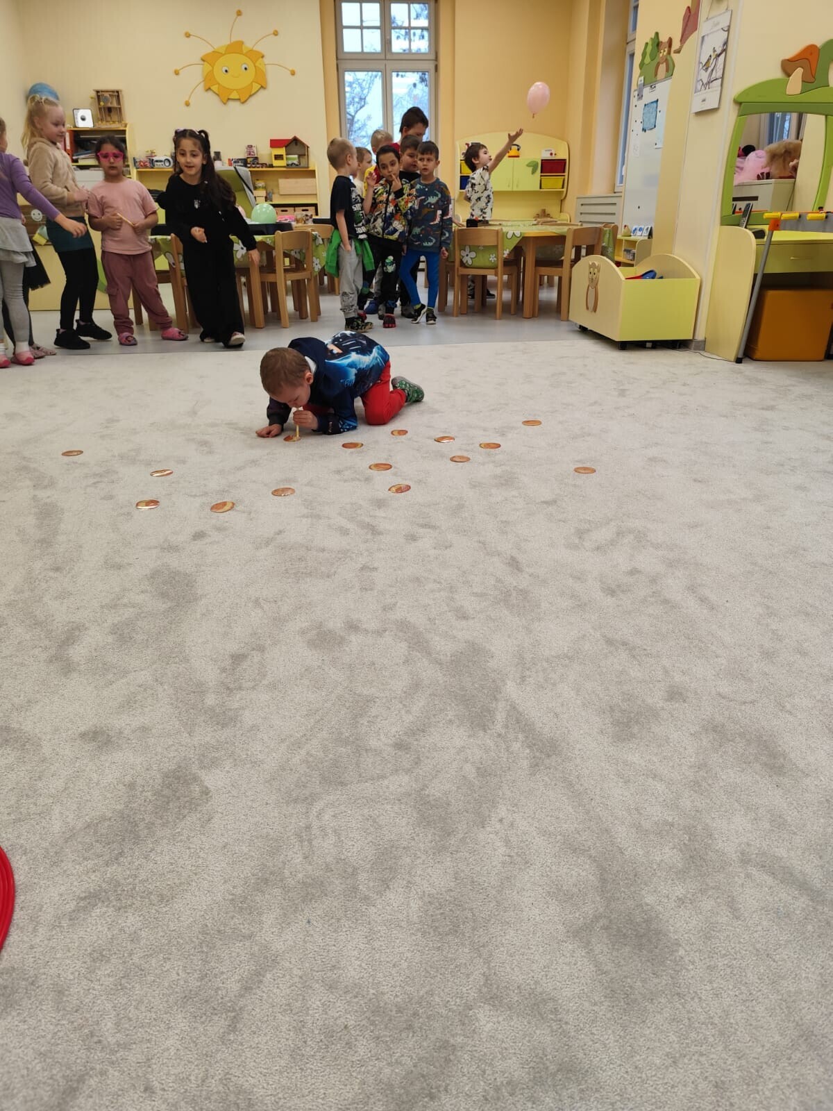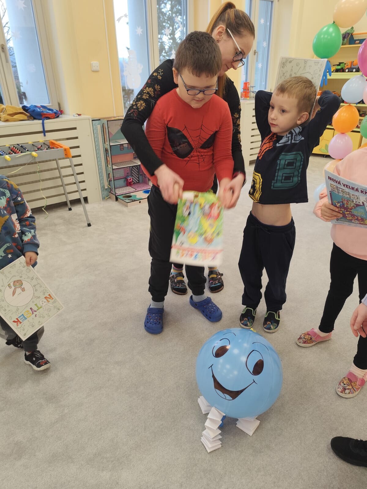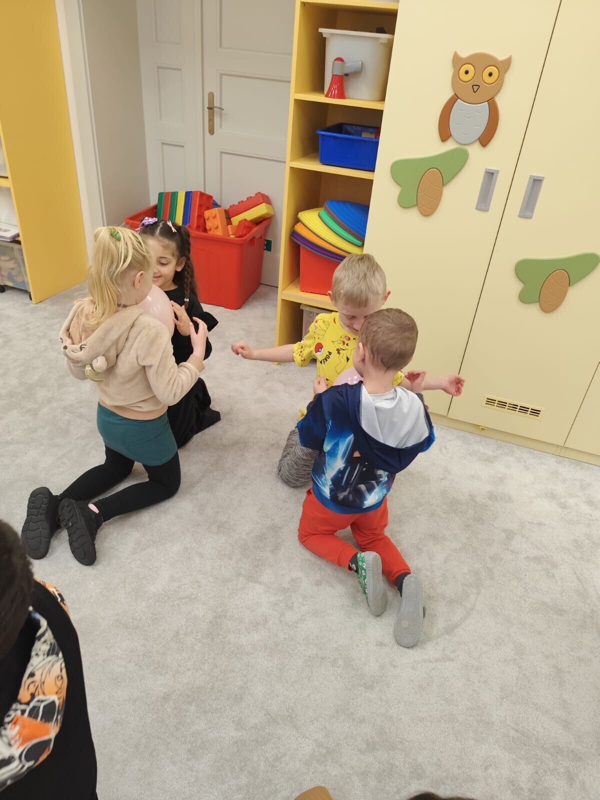 Také jsme si procvičili oromotoriku nebo díky několika jazykolamům i jazýček. Opět jsme si rozšiřovali vlastní kapacitu plic dechovými cvičeními, zahráli si hru Na medvěda nebo si zacvičili s padákem. Určitě jsme nemohli zapomenout na novou písničku či básničku, cviky na uvolnění ruky, procvičení jemné motoriky, hrubé motoriky, oka x ruky. Pokoušeli jsme se pomocí větru rozpohybovat pana Balónka nebo "koblížka" a spoustu dalších zajímavých a zábavných činností.