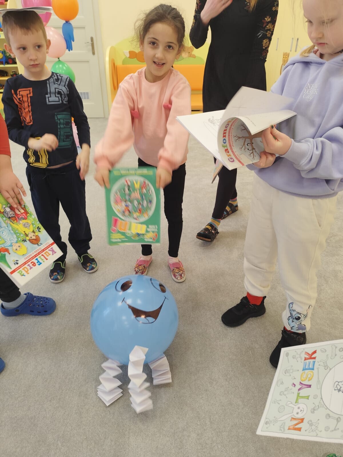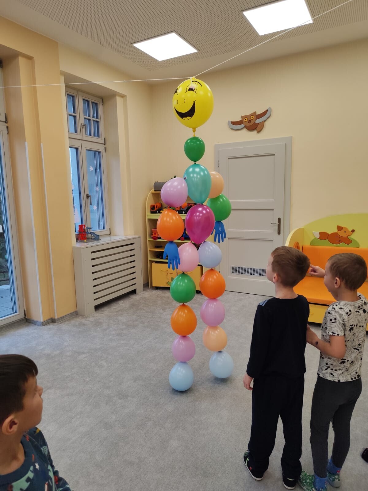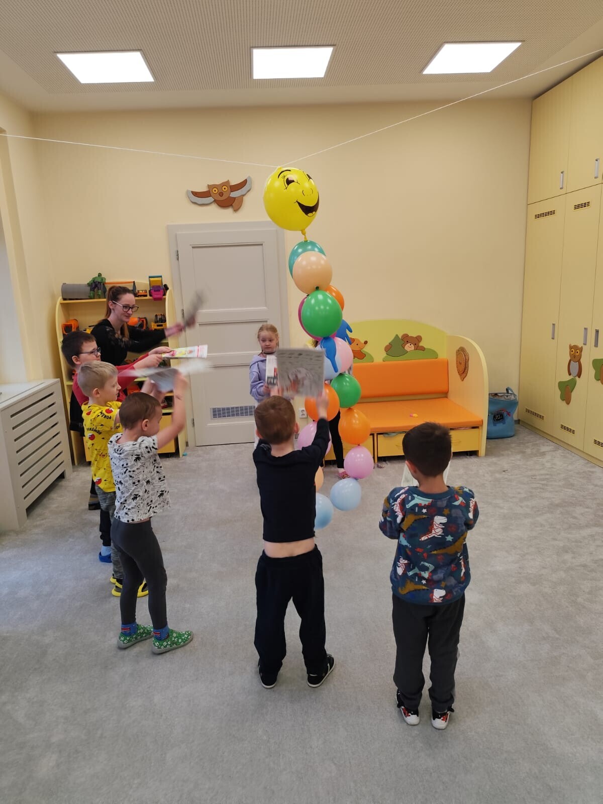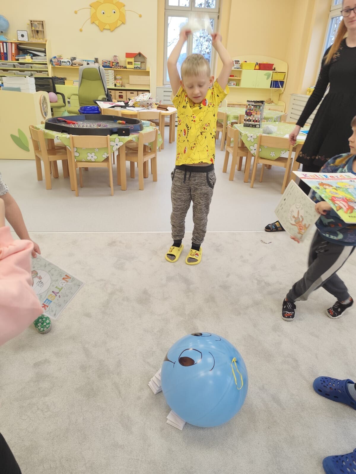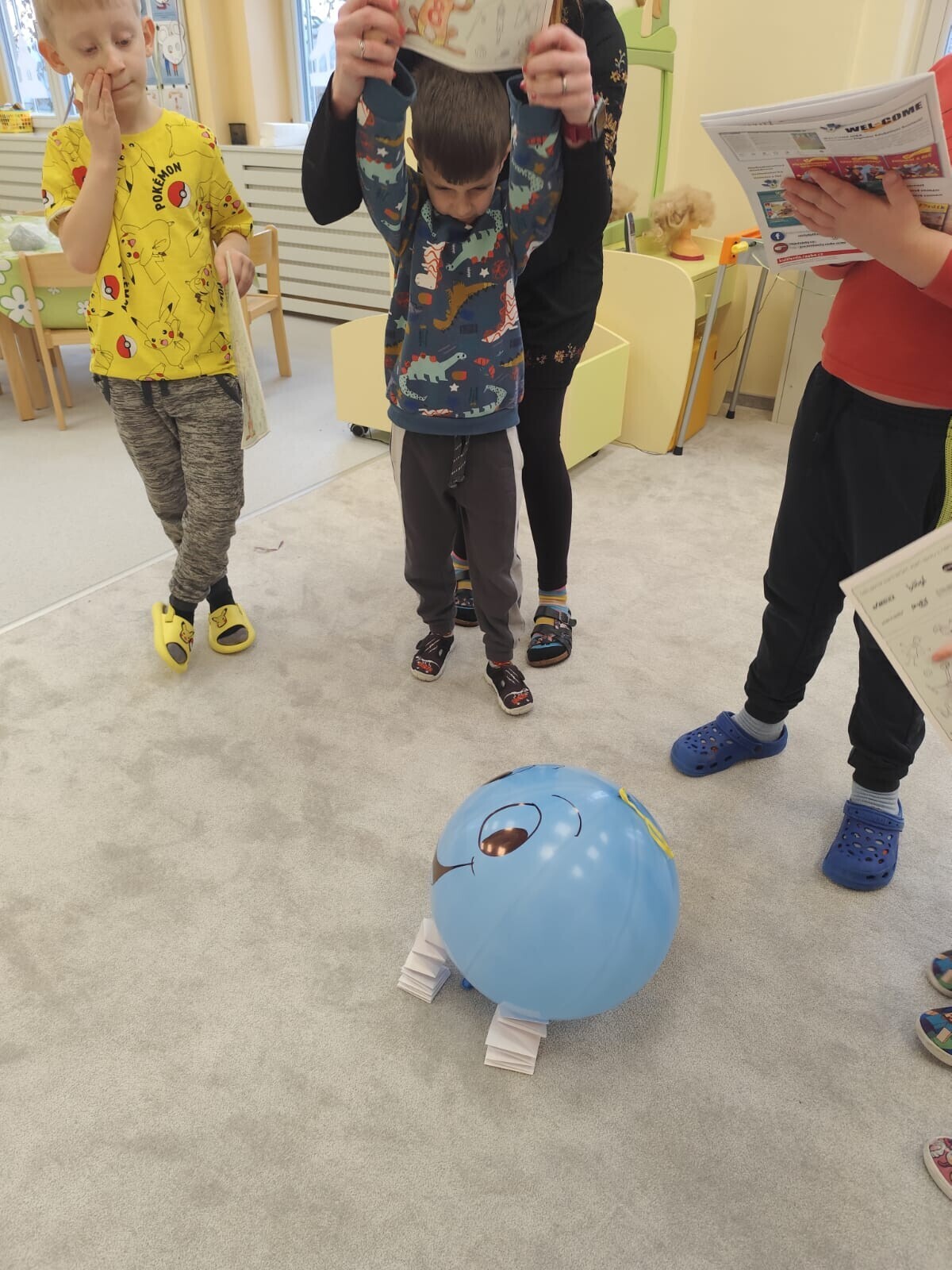 Také jsme si procvičili oromotoriku nebo díky několika jazykolamům i jazýček. Opět jsme si rozšiřovali vlastní kapacitu plic dechovými cvičeními, zahráli si hru Na medvěda nebo si zacvičili s padákem. Určitě jsme nemohli zapomenout na novou písničku či básničku, cviky na uvolnění ruky, procvičení jemné motoriky, hrubé motoriky, oka x ruky. Pokoušeli jsme se pomocí větru rozpohybovat pana Balónka nebo "koblížka" a spoustu dalších zajímavých a zábavných činností.