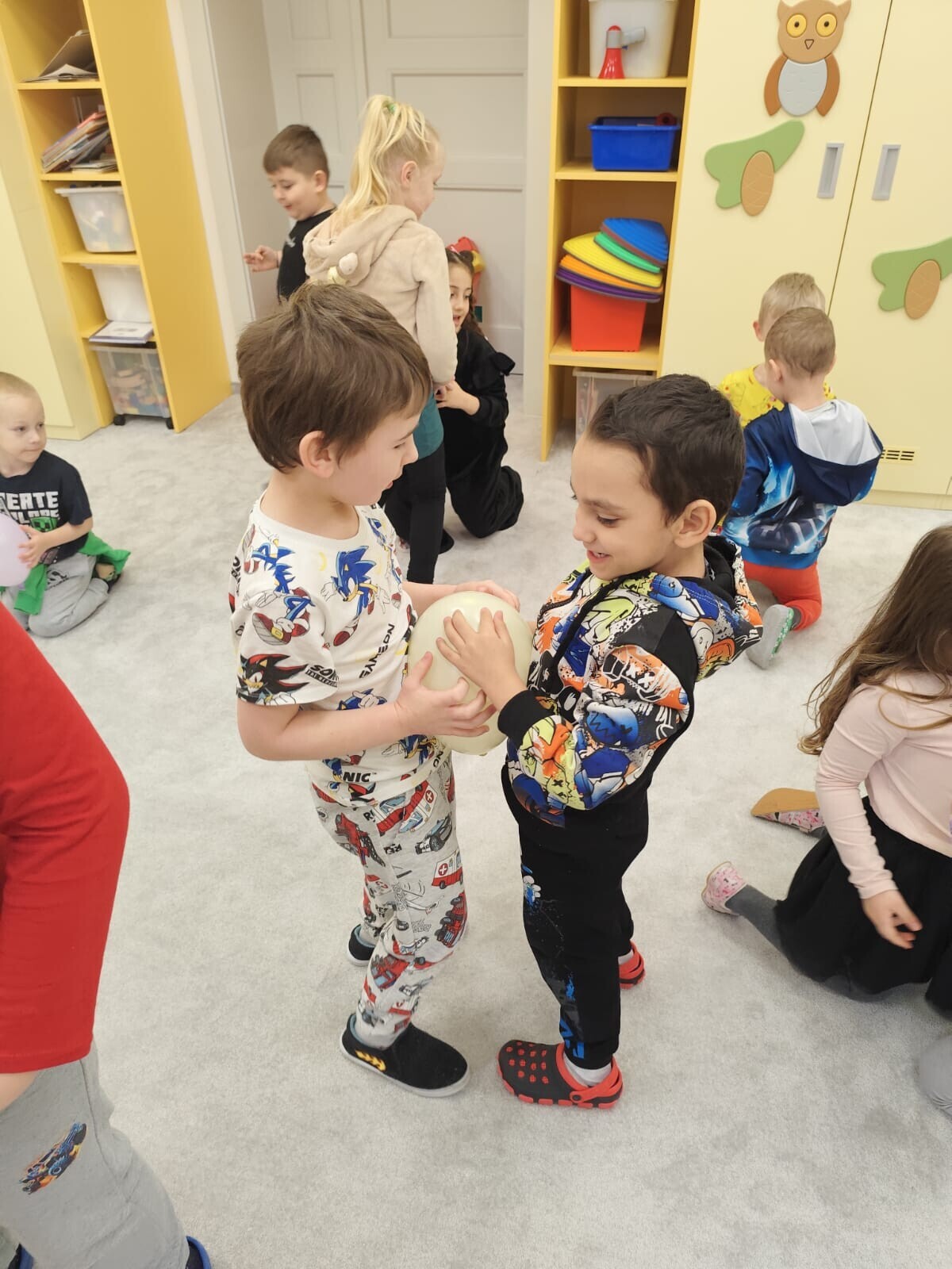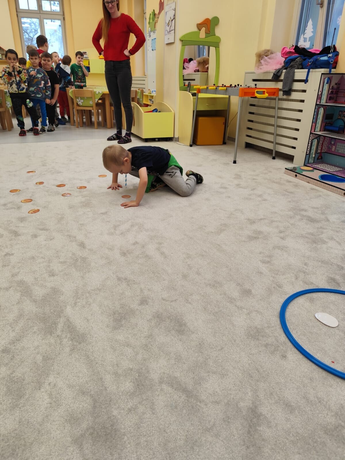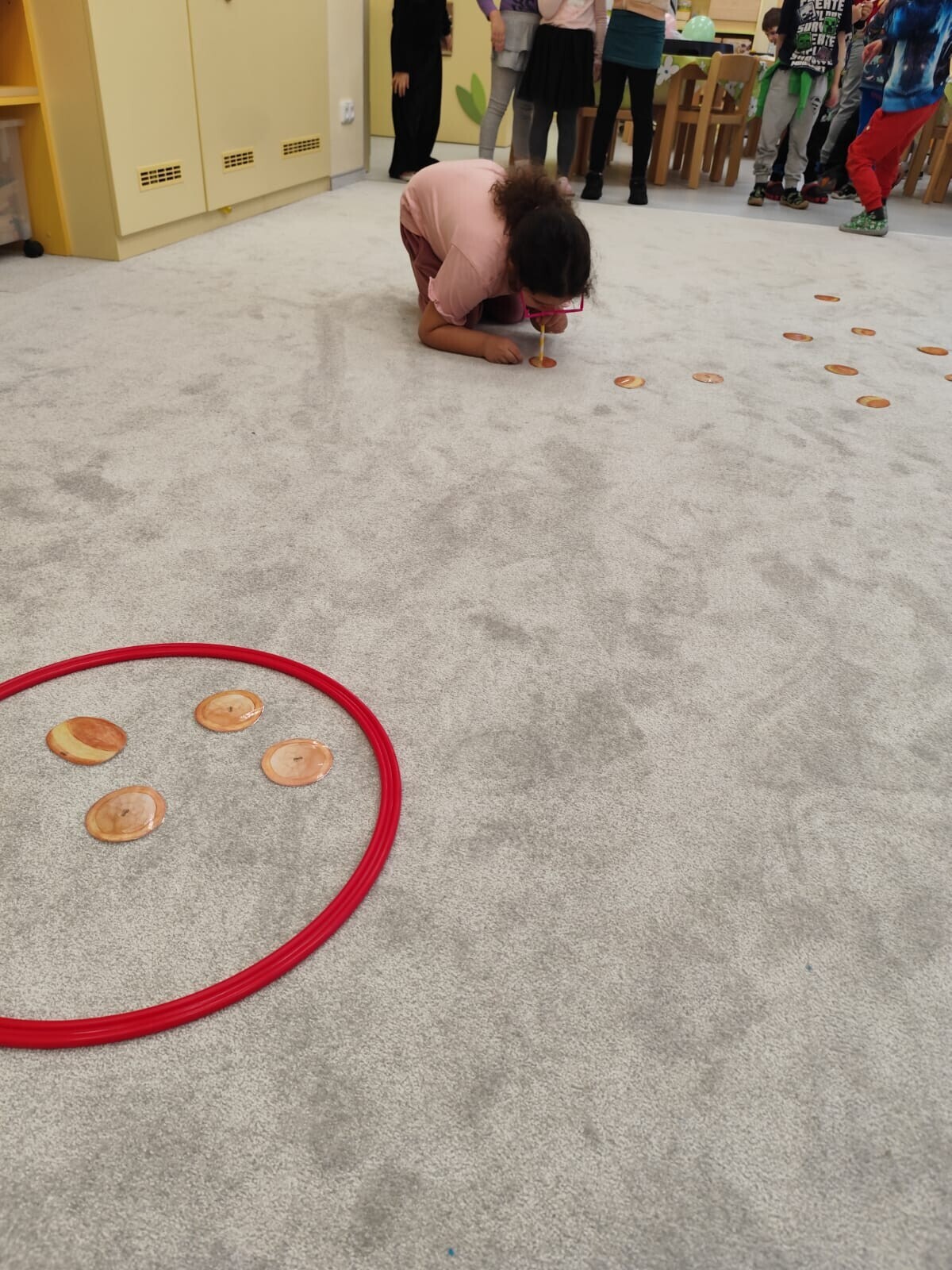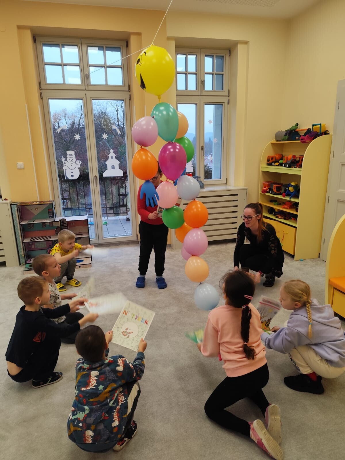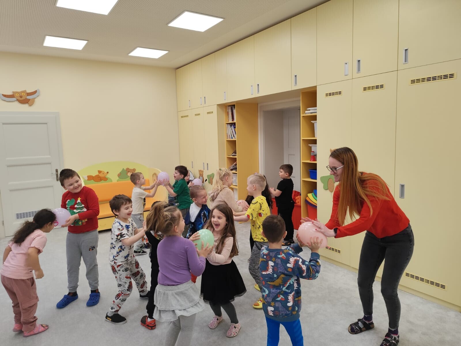 Také jsme si procvičili oromotoriku nebo díky několika jazykolamům i jazýček. Opět jsme si rozšiřovali vlastní kapacitu plic dechovými cvičeními, zahráli si hru Na medvěda nebo si zacvičili s padákem. Určitě jsme nemohli zapomenout na novou písničku či básničku, cviky na uvolnění ruky, procvičení jemné motoriky, hrubé motoriky, oka x ruky. Pokoušeli jsme se pomocí větru rozpohybovat pana Balónka nebo "koblížka" a spoustu dalších zajímavých a zábavných činností.