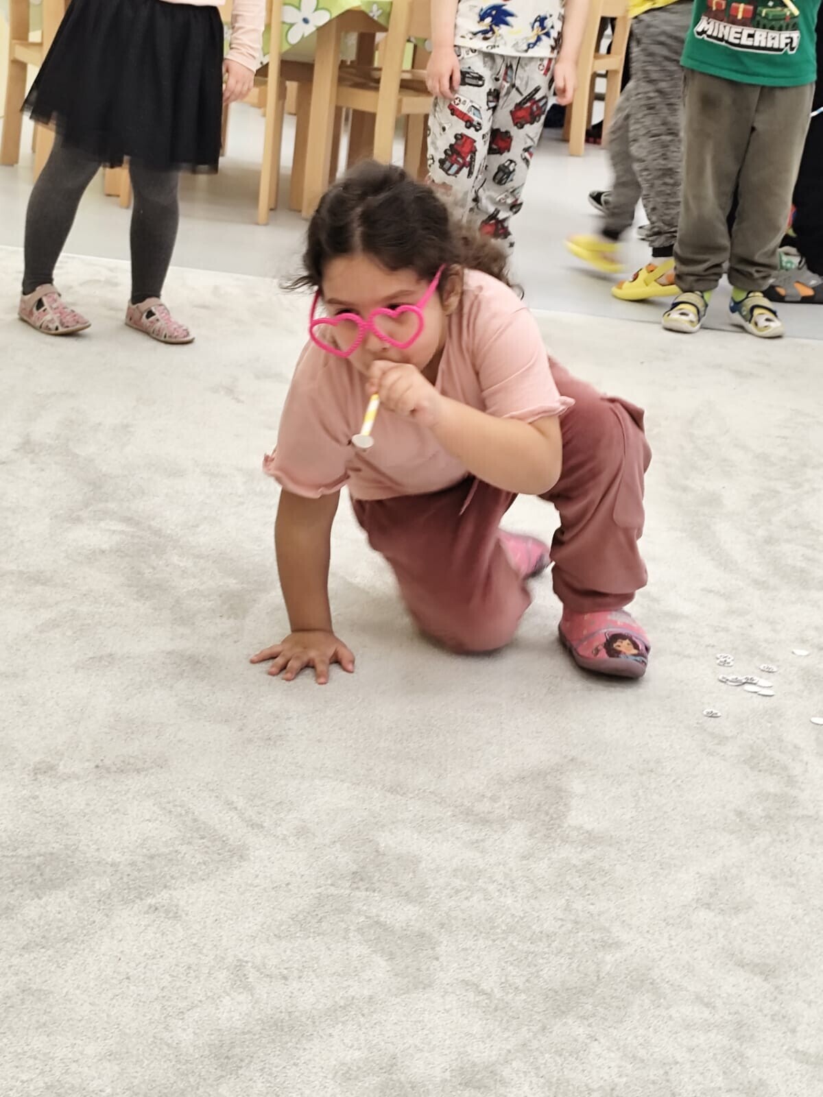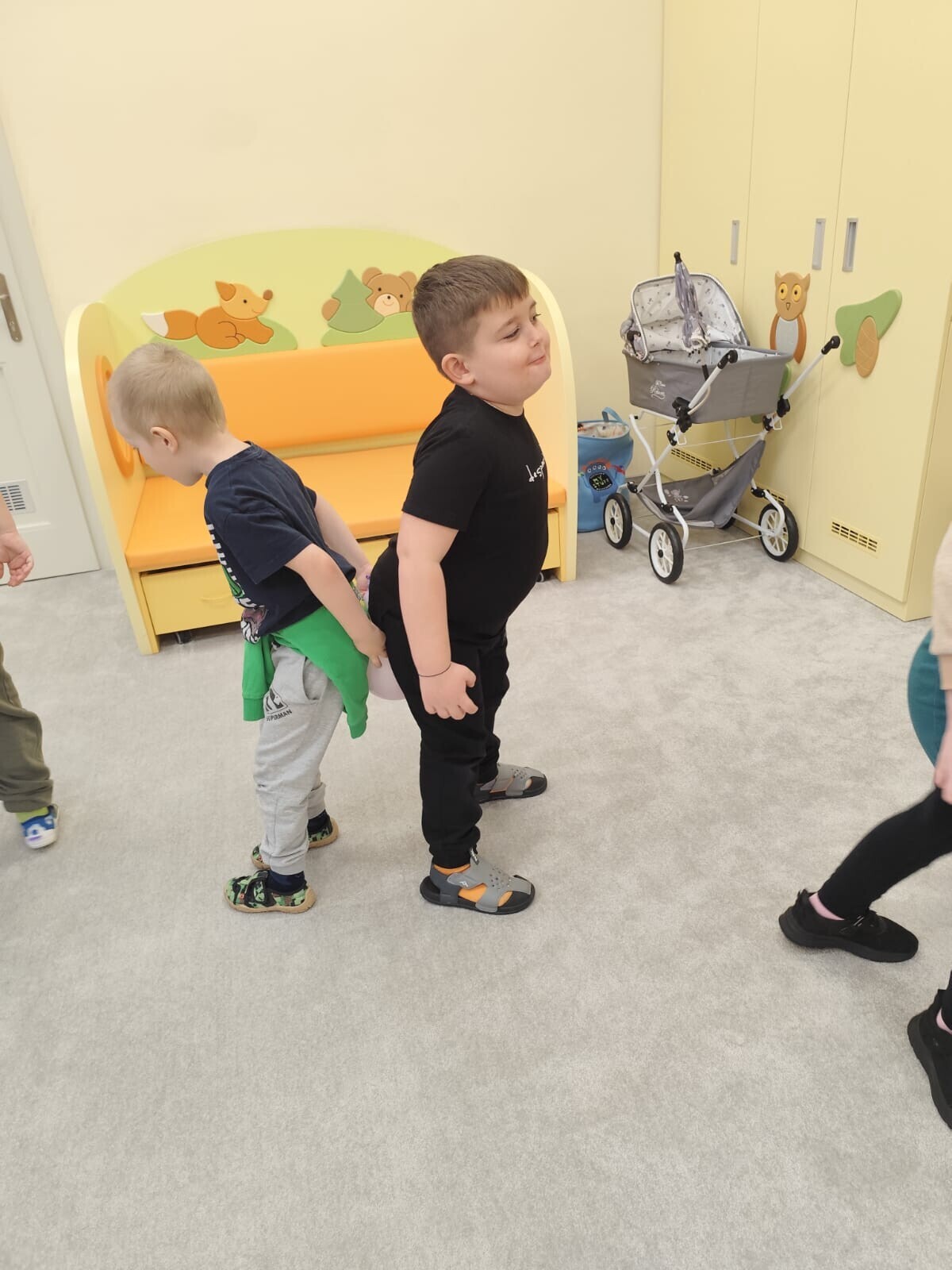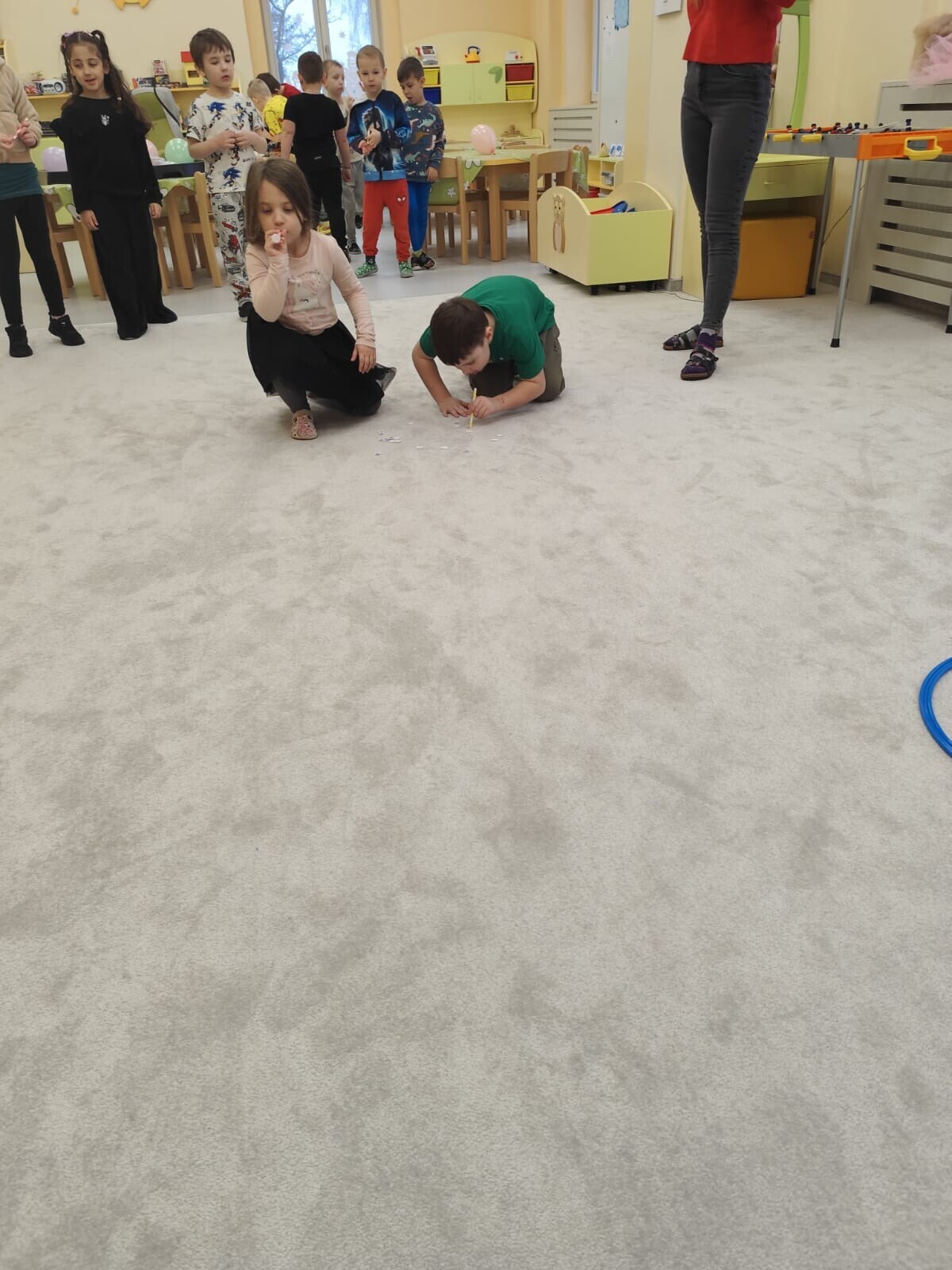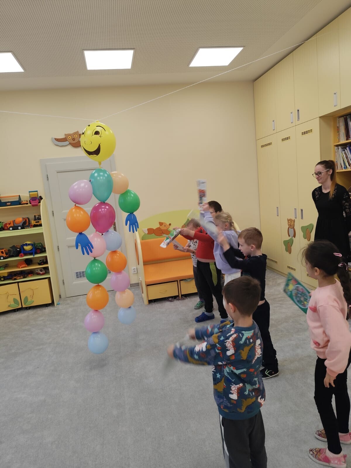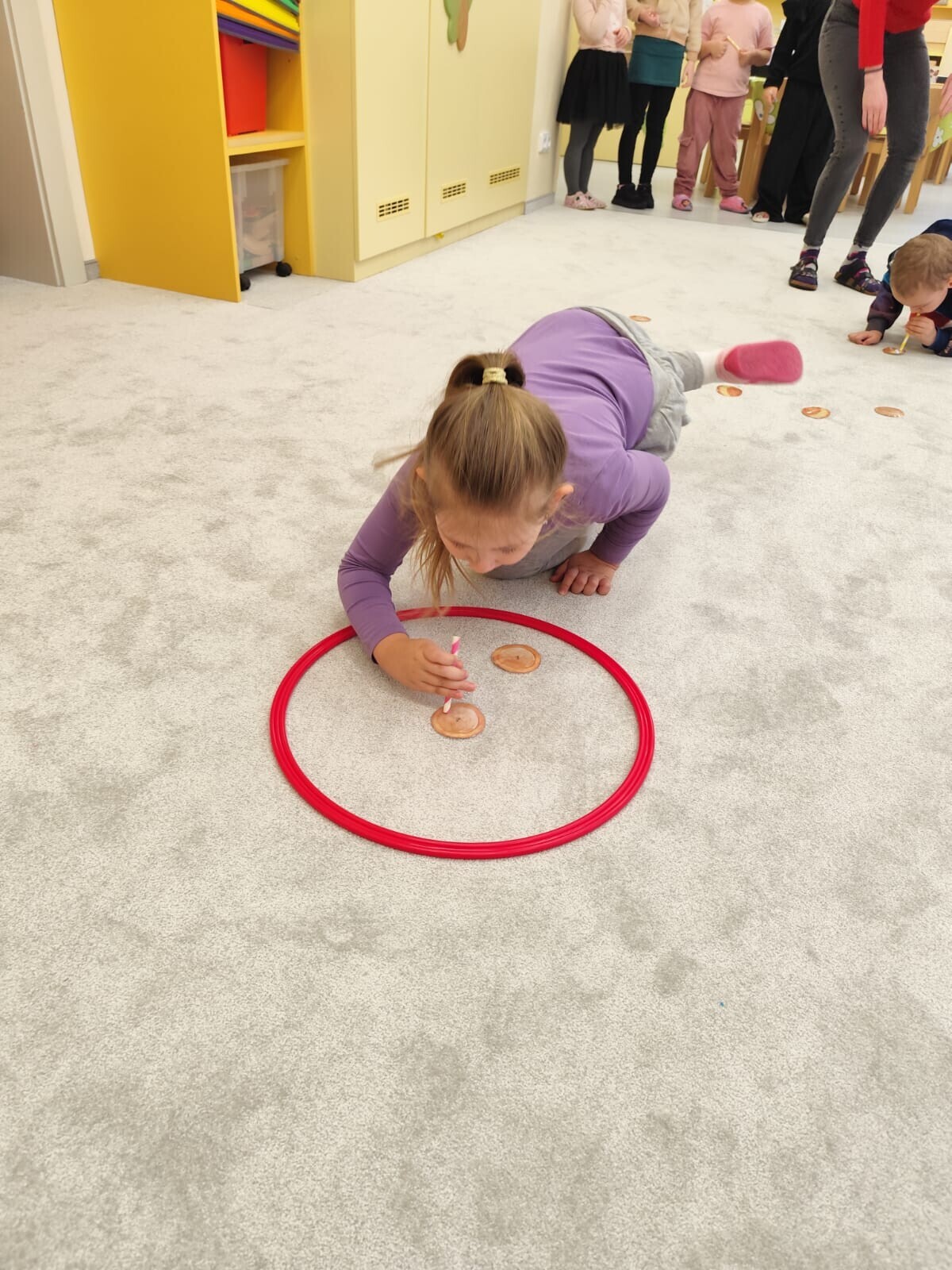 Také jsme si procvičili oromotoriku nebo díky několika jazykolamům i jazýček. Opět jsme si rozšiřovali vlastní kapacitu plic dechovými cvičeními, zahráli si hru Na medvěda nebo si zacvičili s padákem. Určitě jsme nemohli zapomenout na novou písničku či básničku, cviky na uvolnění ruky, procvičení jemné motoriky, hrubé motoriky, oka x ruky. Pokoušeli jsme se pomocí větru rozpohybovat pana Balónka nebo "koblížka" a spoustu dalších zajímavých a zábavných činností.