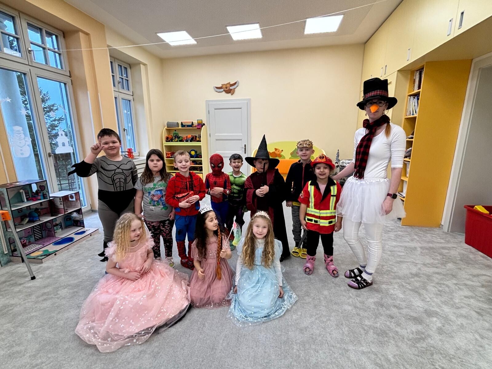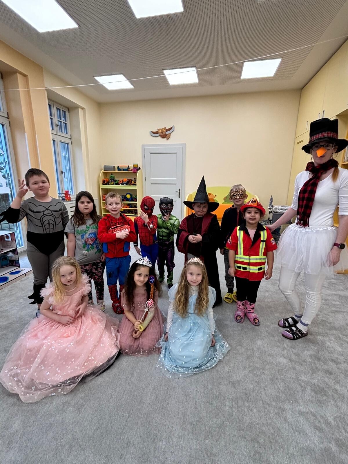 Ve čtvrtek 12. 2. 2026 jsme měli ve školce karneval. Děti ze třídy Soviček si karneval moc užily, před svačinou si hrály děti ve své třídě, každý se všem představil a po svačině jsme se všichni vydali do třídy Ježečků, kde na děti čekala diskotéka a plnění tří úkolů, za které pak děti dostaly medaile.